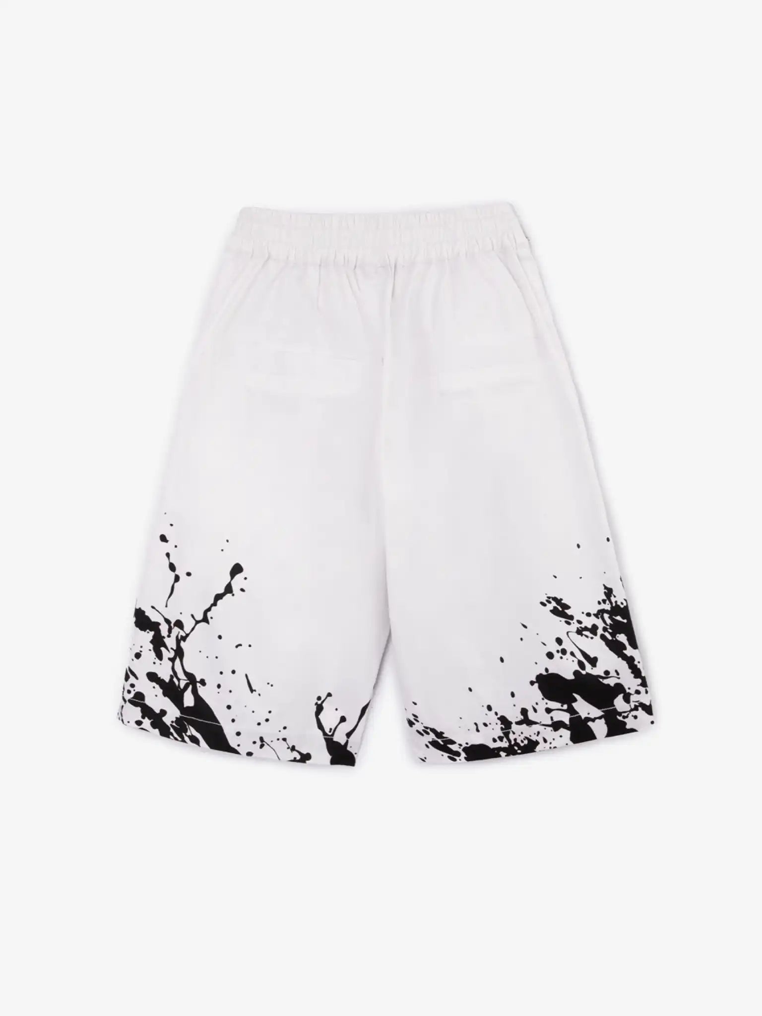 Șorturile albe din poplin sunt o alegere îndrăzneață și interesantă, perfectă pentru un băiat care adoră să fie în centrul atenției! Designul modelului reflectă cele mai noi tendințe ale sezonului: asimetrie și elemente suspendate. Un astfel de detaliu este panglica lungă, neagră, poziționată diagonal de la betelie până la gaica curelei din partea dreaptă a șorturilor, fixată cu o cataramă din plastic. Contrastul de culoare dintre materialul principal și finisaje conferă modelului un aer robust și grafic. Imprimeul stilizat, care imită stropii de vopsea, completează perfect modelul, făcându-l în același timp foarte practic, un aspect esențial pentru un adolescent cu o abordare rațională asupra garderobei sale.