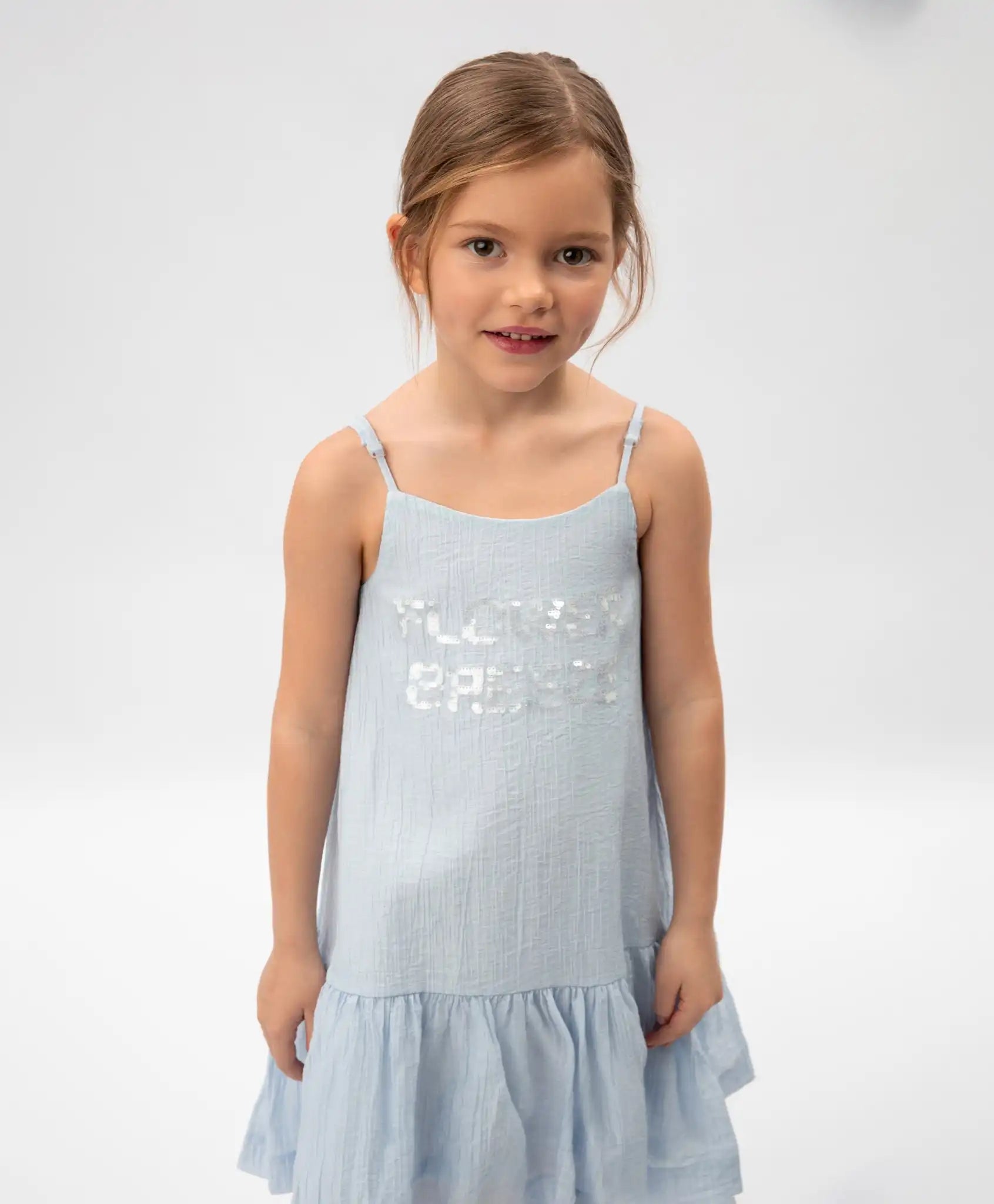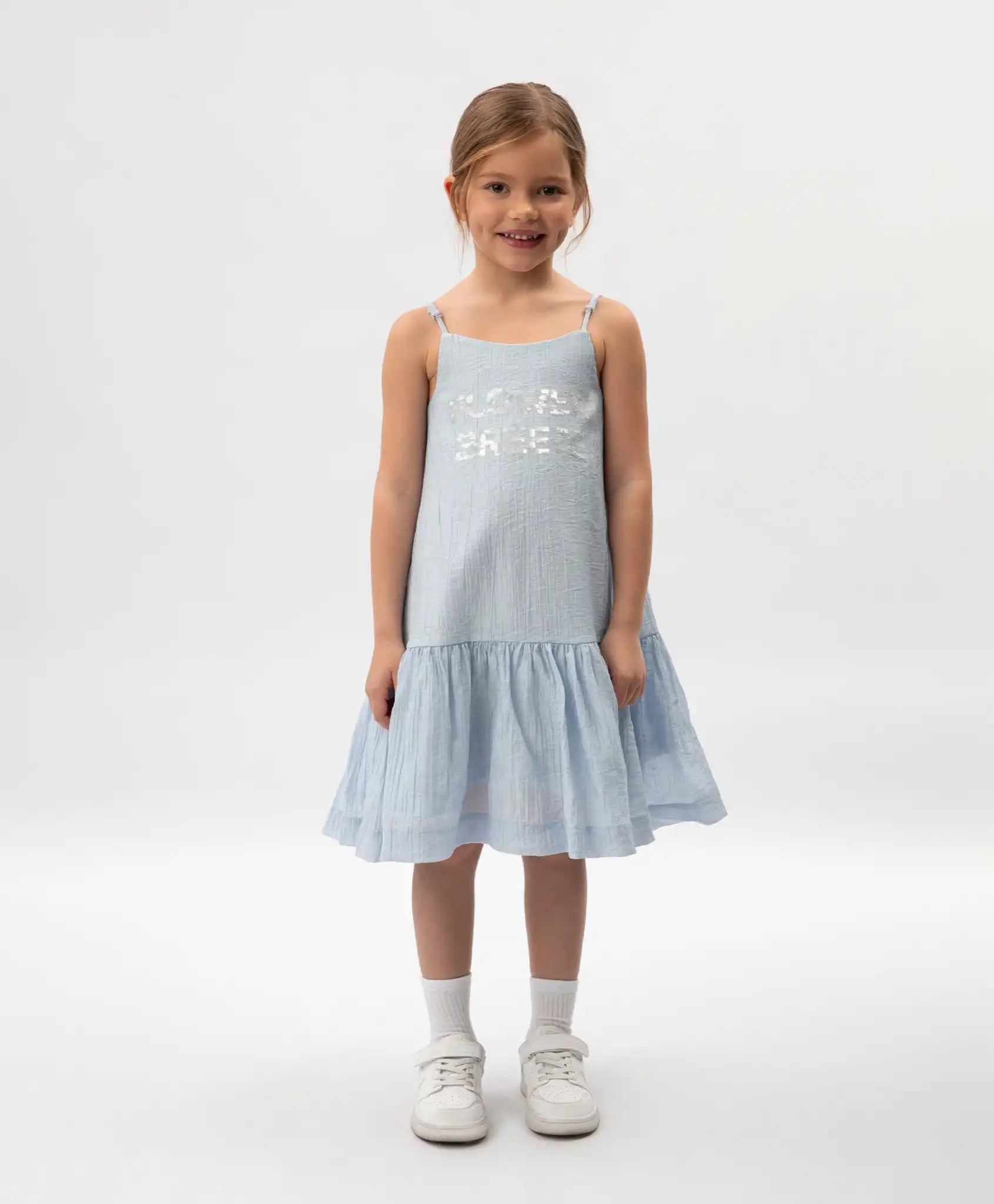 Rochie-sărafan pentru copii, albastră, din viscoză subțire și semi-transparentă, Gulliver.
