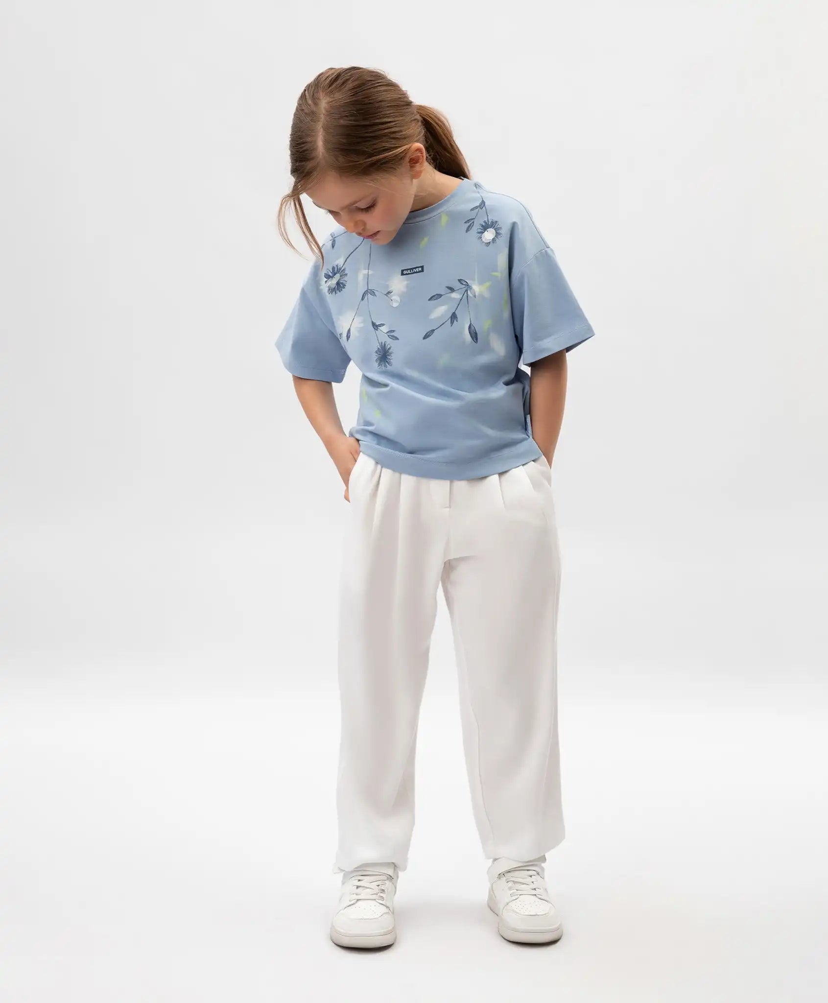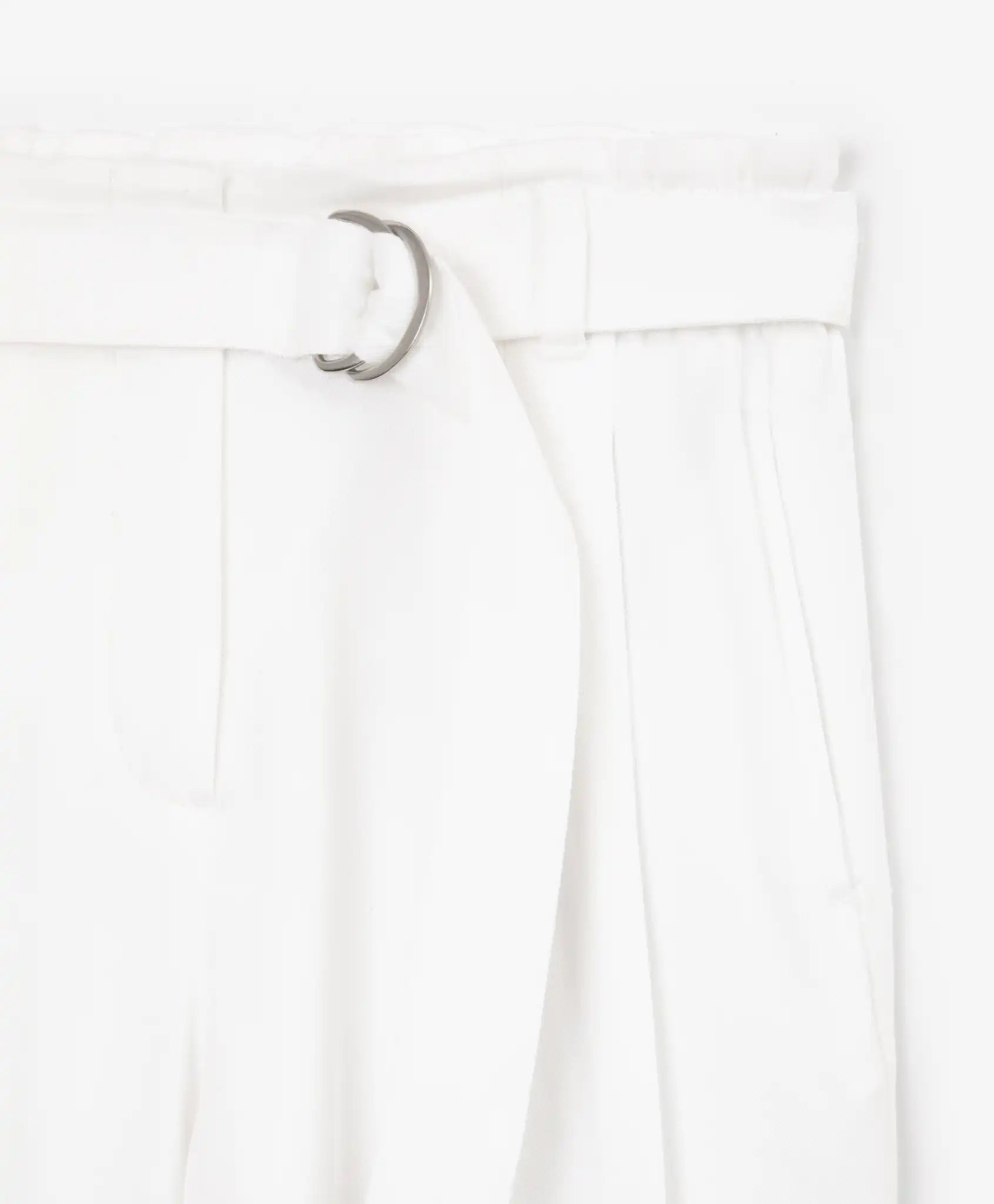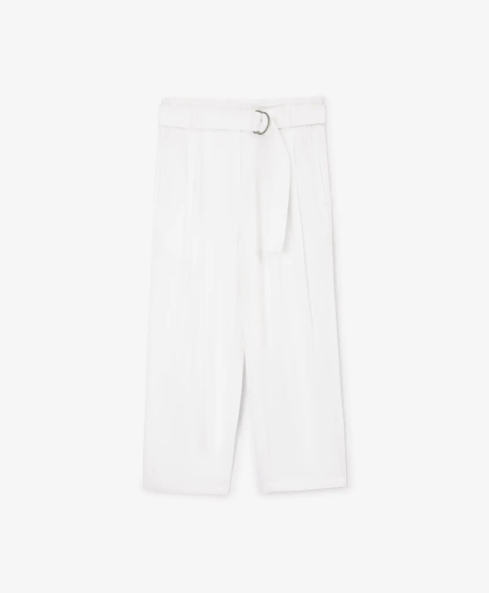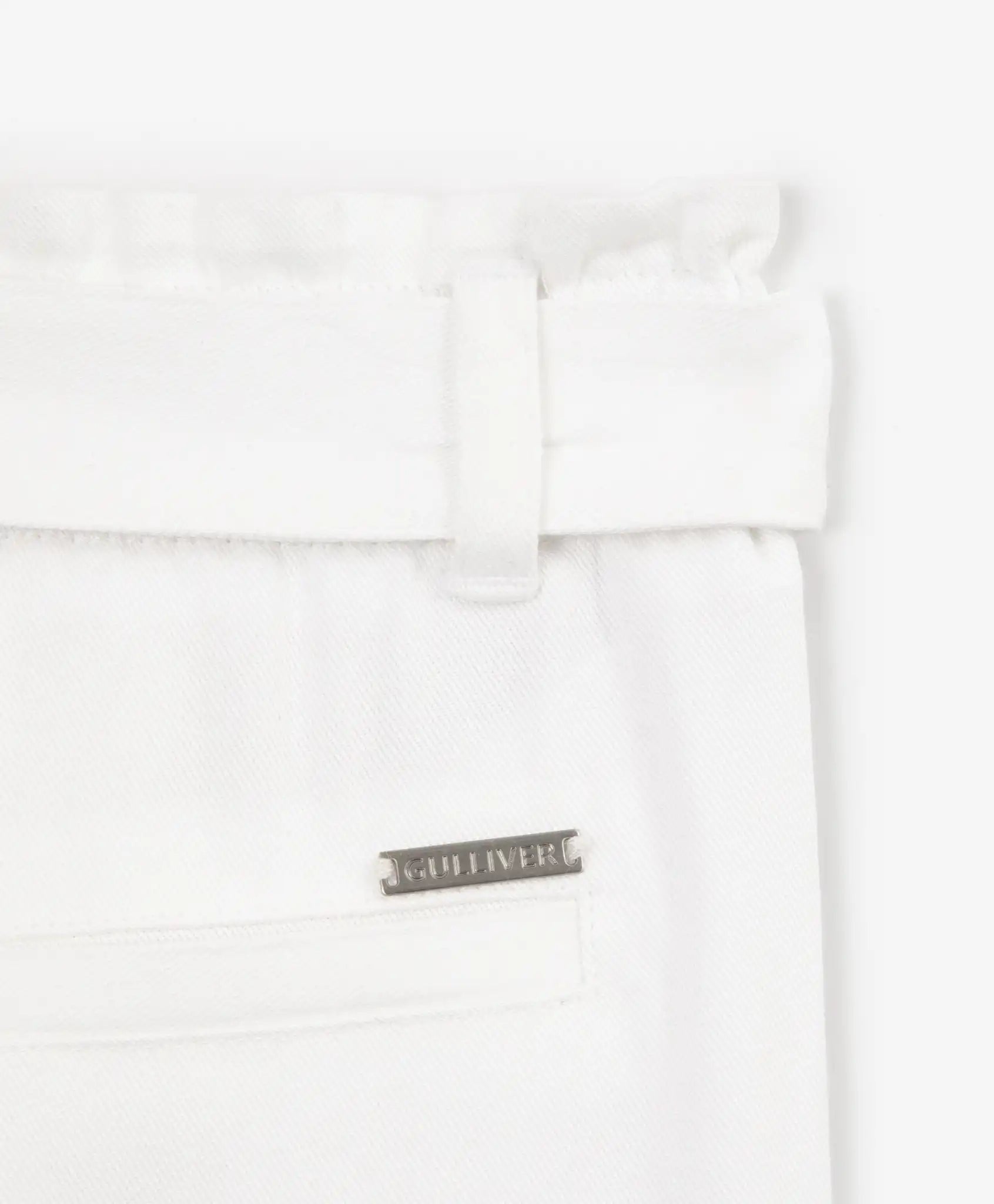 Pantaloni textili pentru fată, cu curea și croială conică, albi, Gulliver