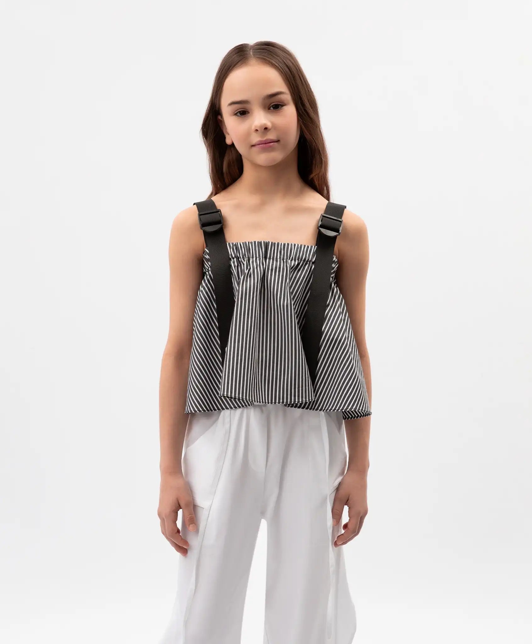 Top pentru copii în formă de trapez cu dungi din textil subțire și bretele ajustabile largi Gulliver