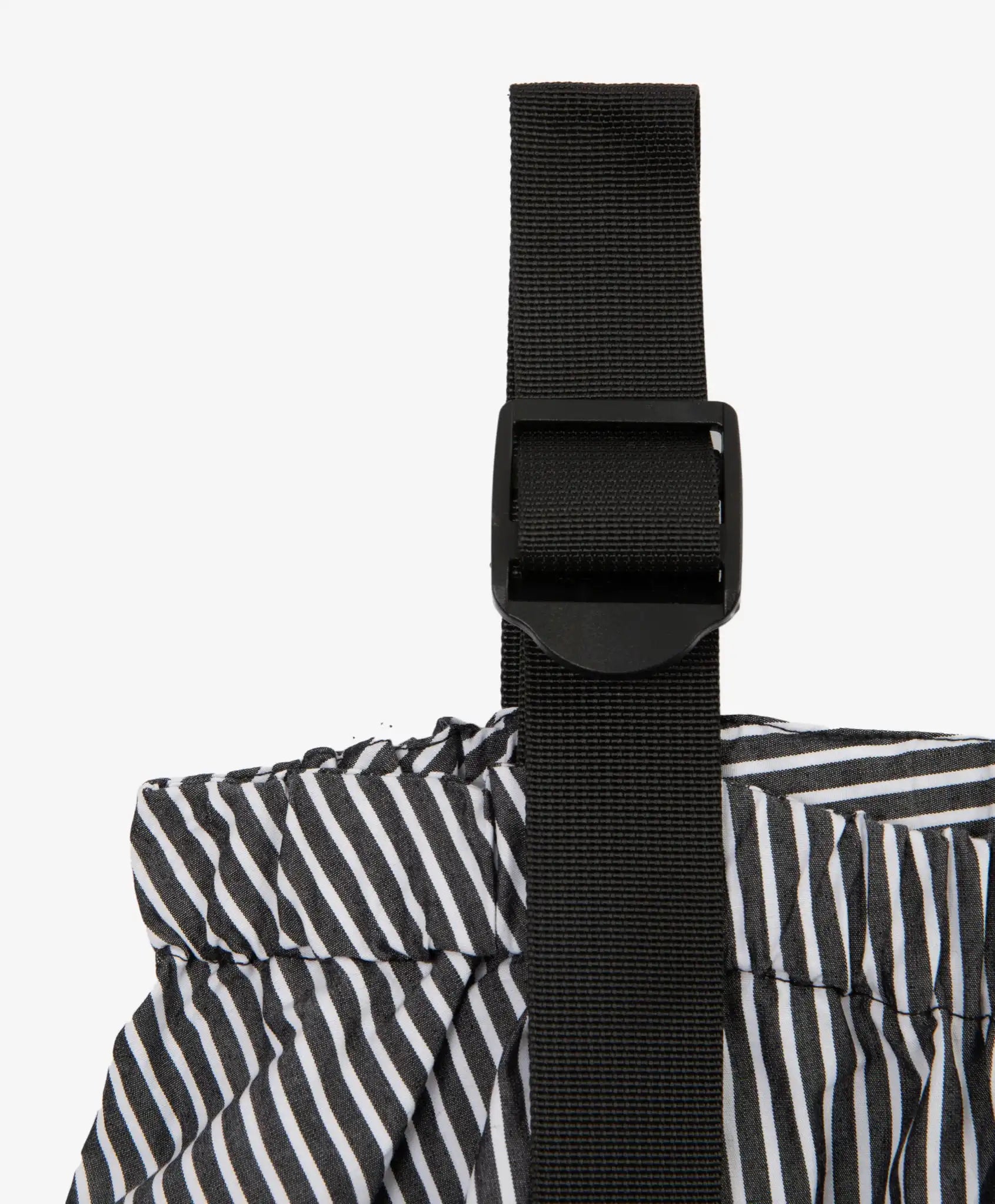 Topul în dungi alb-negru oferă un contrast puternic și interesant între silueta feminină în formă de trapez și detaliile brute, caracteristice stilului sport! Confecționat dintr-un bumbac ușor, ideal pentru vremea caldă, acest model se remarcă prin bretele reglabile late, care amintesc de curele. Acestea pot fi purtate liber, oferind un aer modern și cool. Una dintre bretele este decorată cu elemente tipografice. Partea superioară a topului are un elastic pentru o fixare confortabilă.