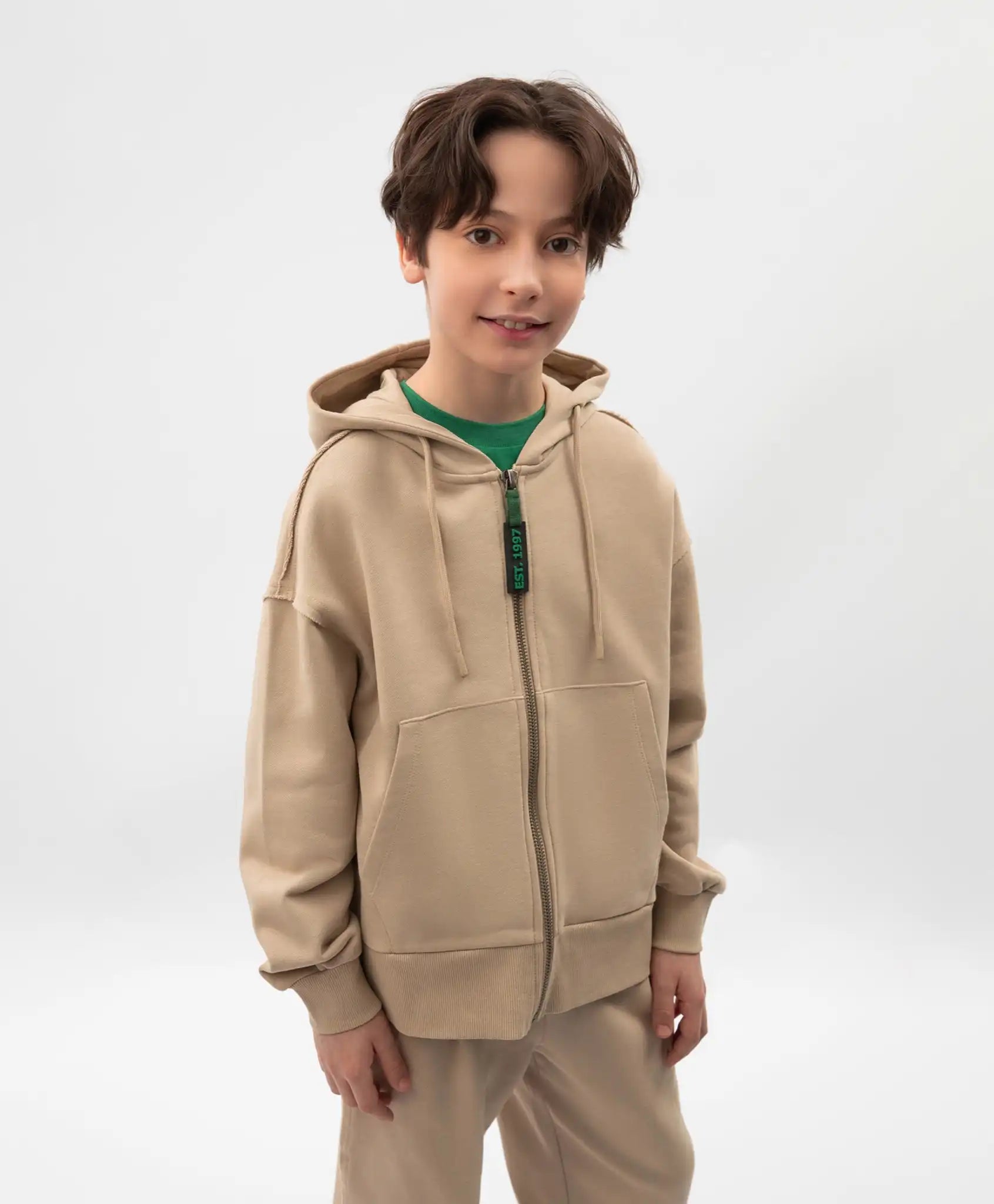 Hanorac deschis cu glugă pentru băieți din material de bumbac bej Gulliver