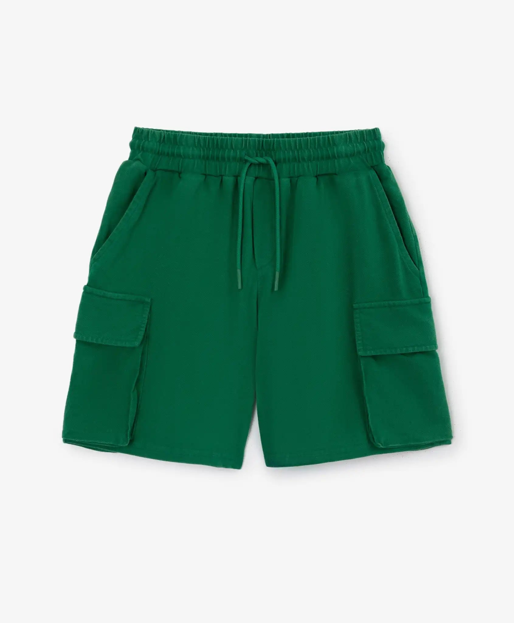Șorturile largi și colorate cu talie elastică sunt o alegere ideală pentru vară. Confecționate din bumbac pique moale, cu o textură plăcută la atingere, acestea asigură confort și funcționalitate. Modelul se remarcă prin buzunarele cargo voluminoase, care adaugă un aspect modern și ușor robust. În plus, dispun de buzunare laterale înclinate și un buzunar fals la spate cu clapetă, oferind un aspect finalizat.