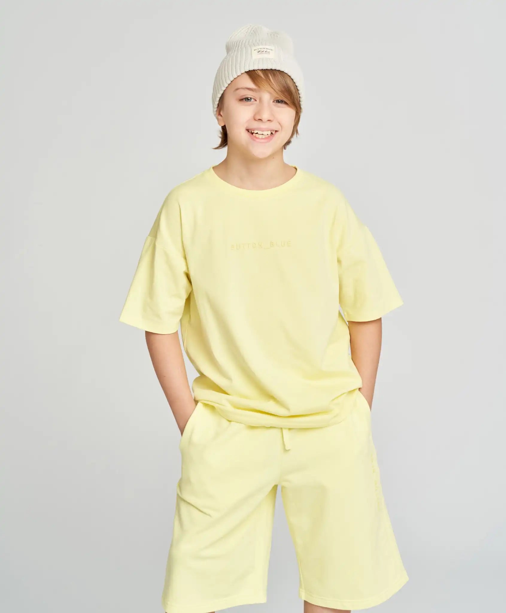 Tricou de bază pentru copii, galben, cu mânecă scurtă, Button Blue