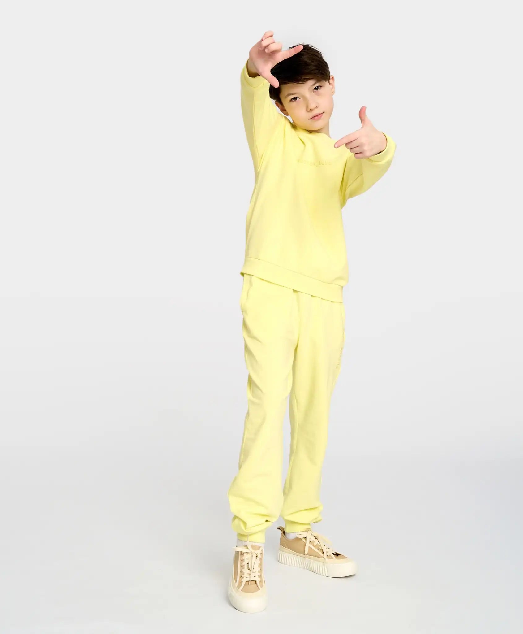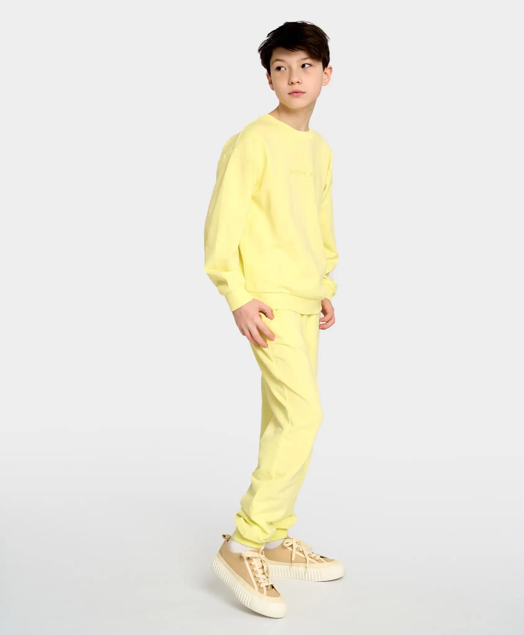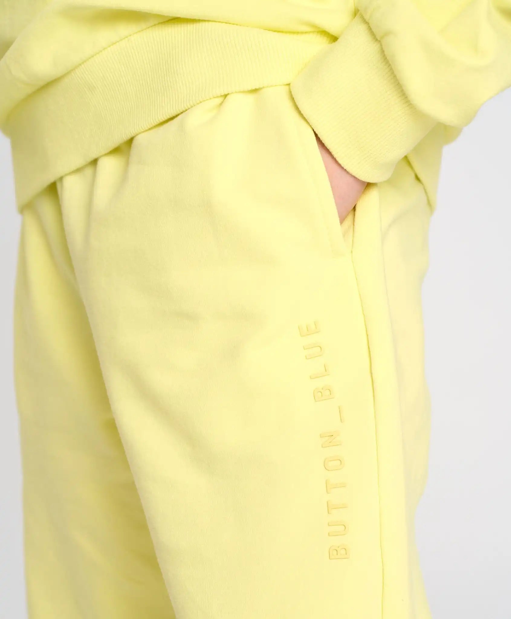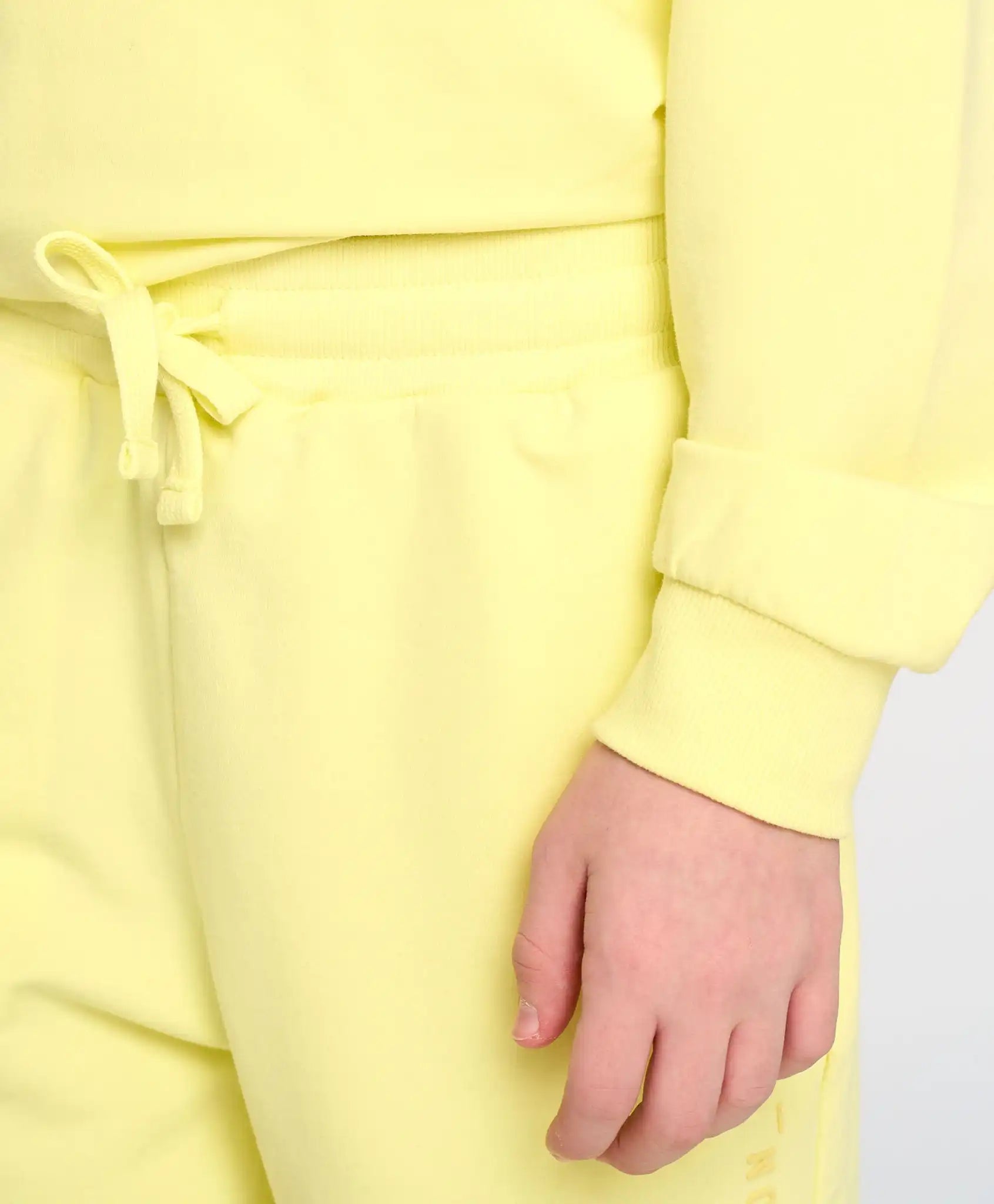 Joggerii din fleece cu buclă sunt universali – potriviți atât pentru băieți, cât și pentru fete. Modelul din material French Terry este extrem de neted, plăcut și respirabil. Croiala lejeră și conică spre glezne asigură libertate de mișcare și confort maxim. Centura elastică și manșetele se potrivesc perfect, fixându-se fără a strânge. Au două buzunare laterale. Pantalonii tricot pentru băieți și fete, într-o nuanță intensă de citrin, sunt perfecți pentru activitățile zilnice, plimbări, vizite, școală, călătorii sau purtare acasă.