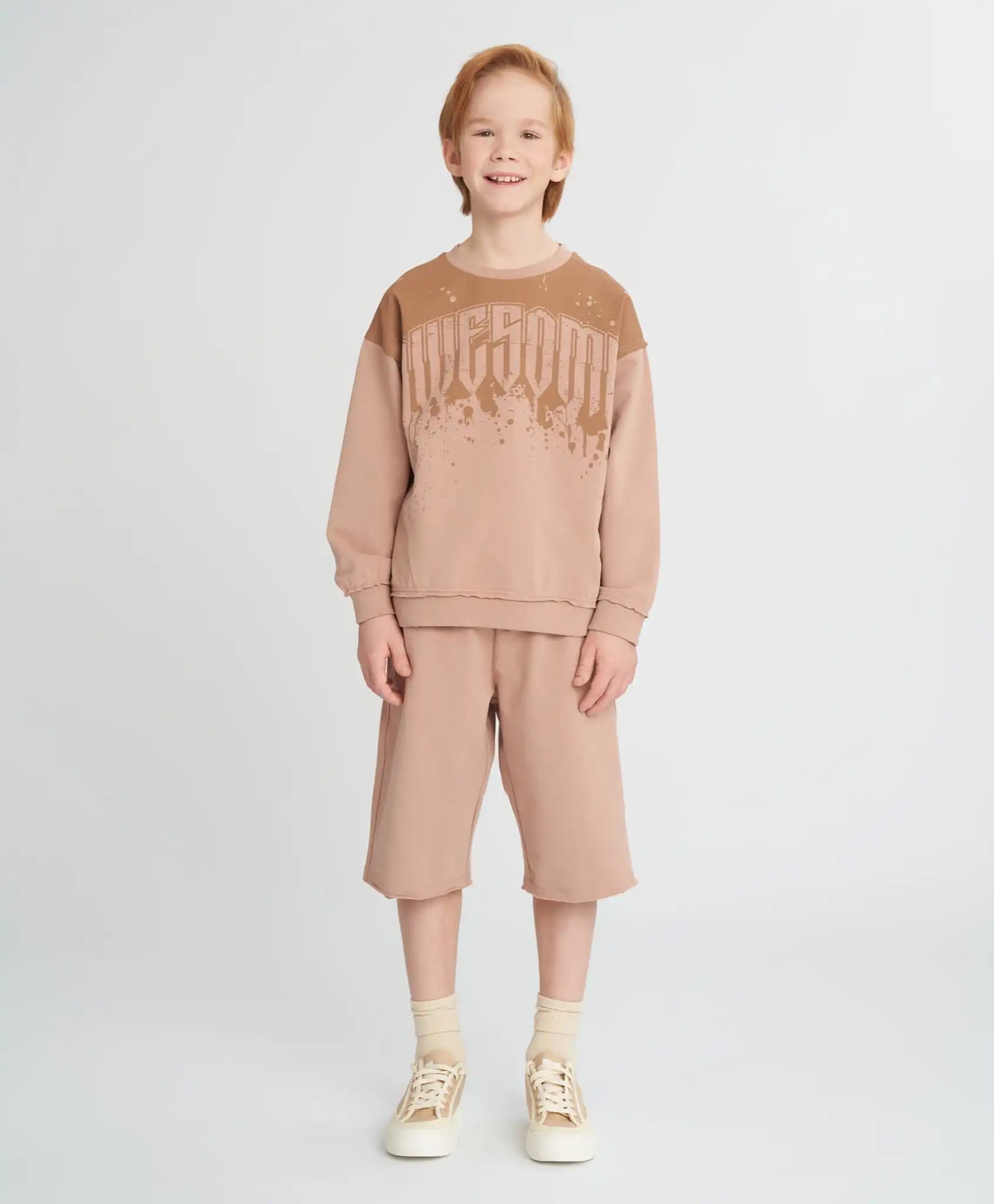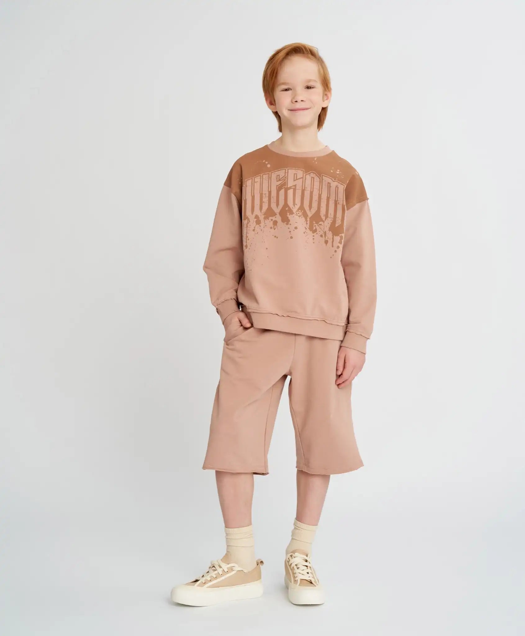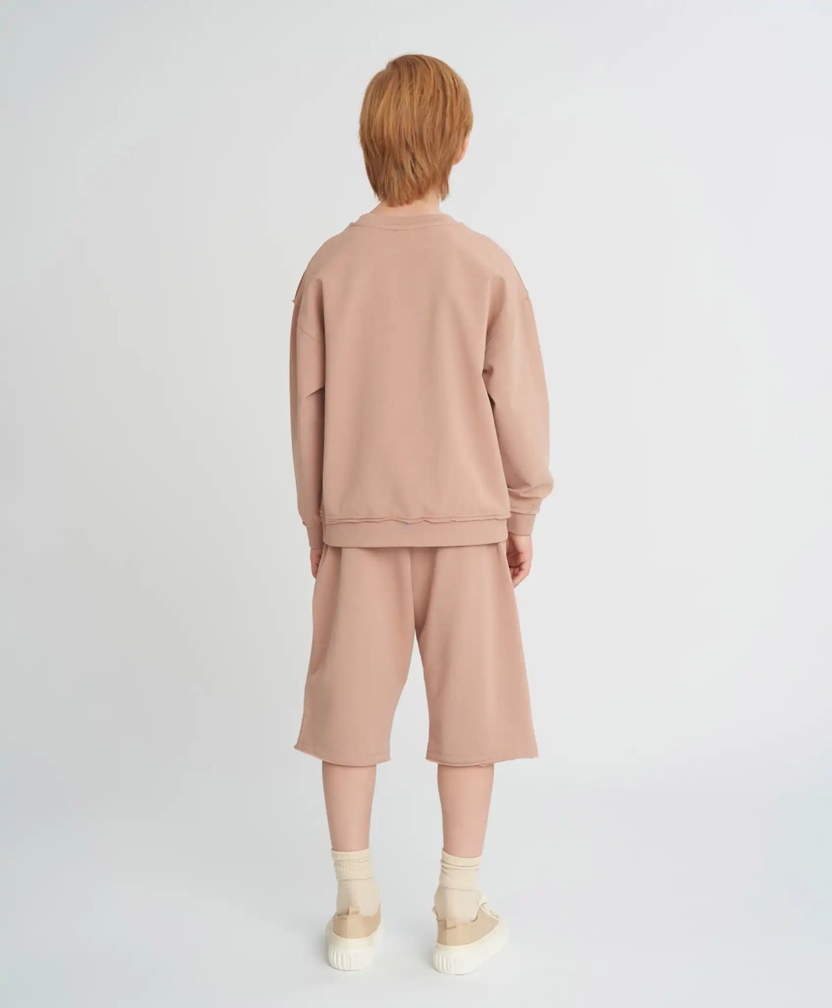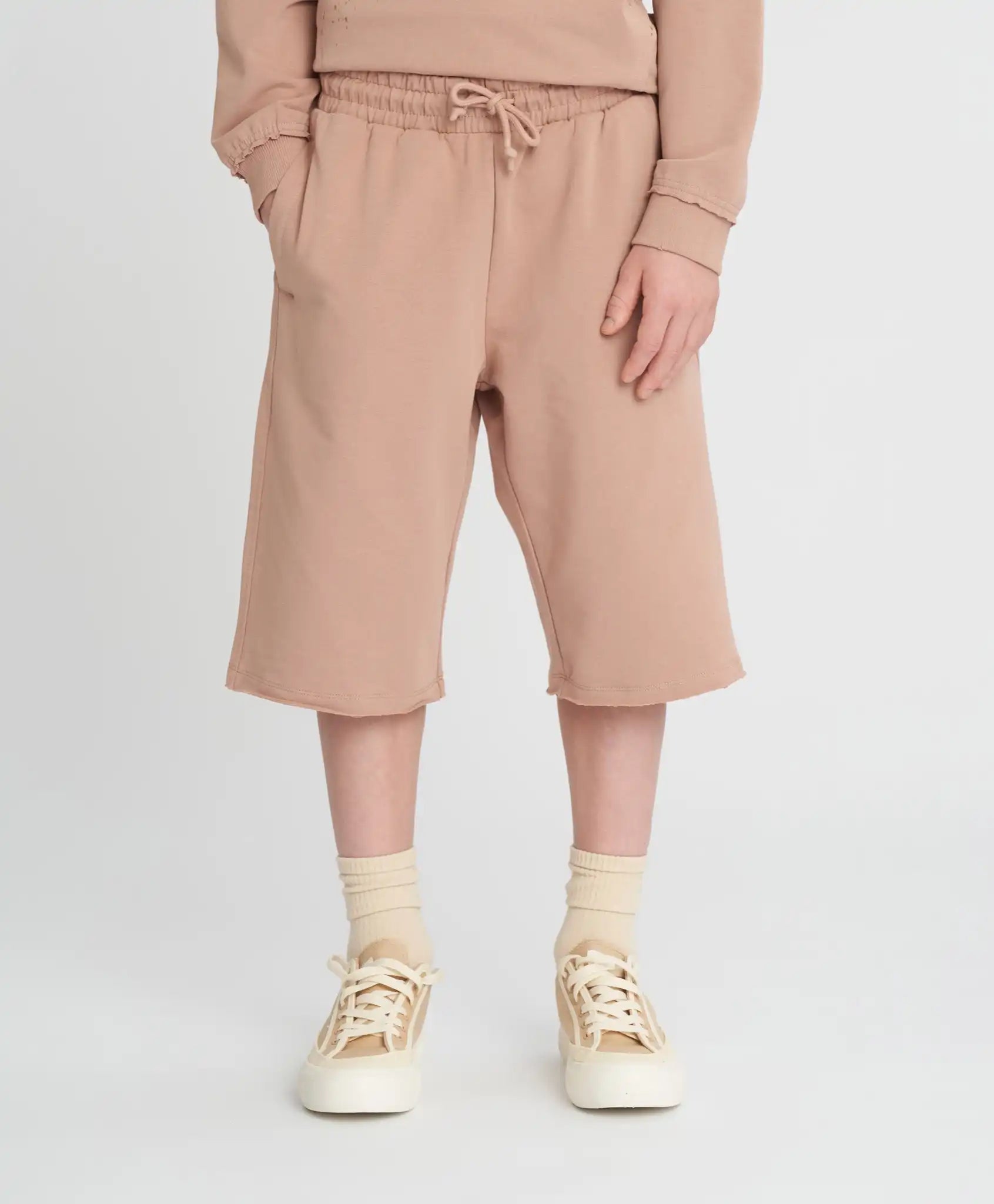 Șorturile bej pentru băieți și fete sunt universale – potrivite pentru orice copil, indiferent de conformație. Modelul este rezistent, neted, plăcut la atingere și respirabil – confecționat din cea mai fină țesătură mixtă French Terry cu bază din bumbac. Talia elastică cu șnur asigură o potrivire perfectă, iar croiala dreaptă oferă libertate de mișcare. Pentru funcționalitate, modelul dispune de două buzunare și o croială alungită. Șorturile bej pentru copii sunt ideale pentru plimbări, călătorii, jocuri și purtare zilnică. Modelul este monocromatic și se combină ușor cu diverse culori și stiluri.