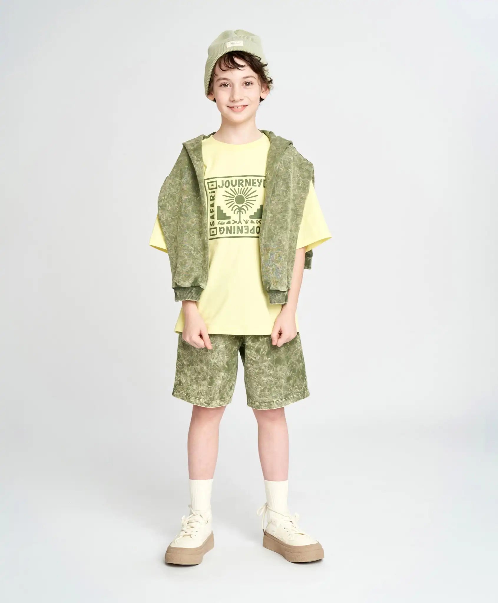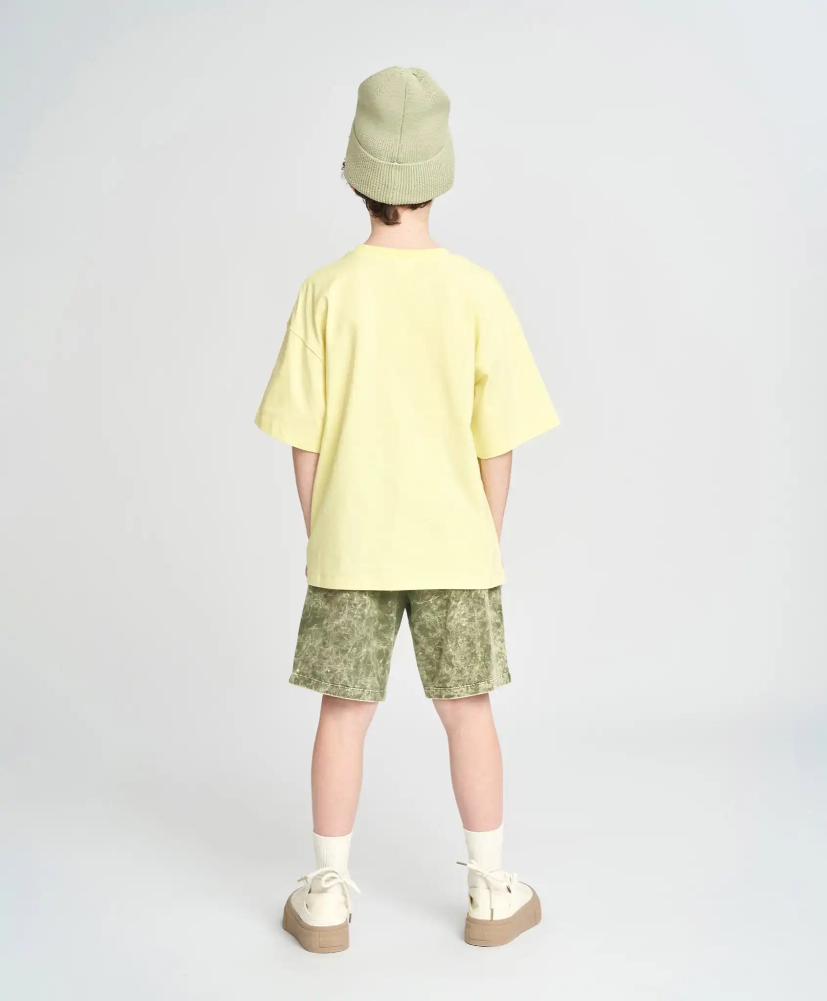 Tricoul galben cu mânecă scurtă pentru băieți are un imprimeu volumetric din cauciuc. Efectul trendy este amplificat de nuanța vibrantă de „citrin”. Materialul moale din tricot jersey este ideal pentru pielea delicată a copiilor, iar croiala lejeră, cu linia umerilor căzută, este perfectă pentru copiii activi. Tricoul de vară este răcoros, dar dens – nu este transparent, este rezistent la uzură și permite pielii să respire. Decolteul rotund este finisat cu un guler elastic rib. Mâneca scurtă are o lungime optimă – până la cot. Tricoul în nuanță de lămâie poate fi purtat pe tot parcursul anului – singur pe vreme caldă sau ca prim strat în zilele mai reci.