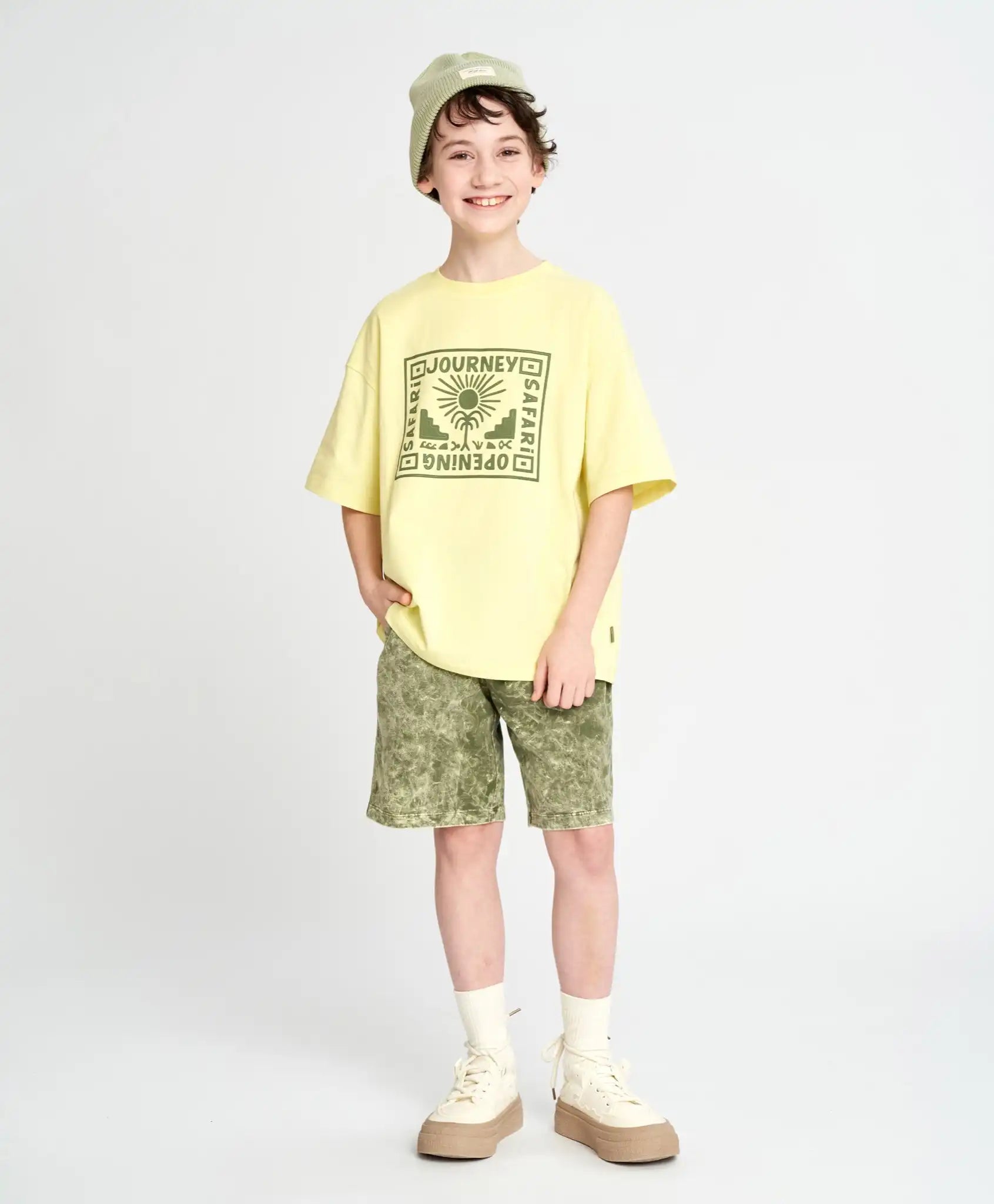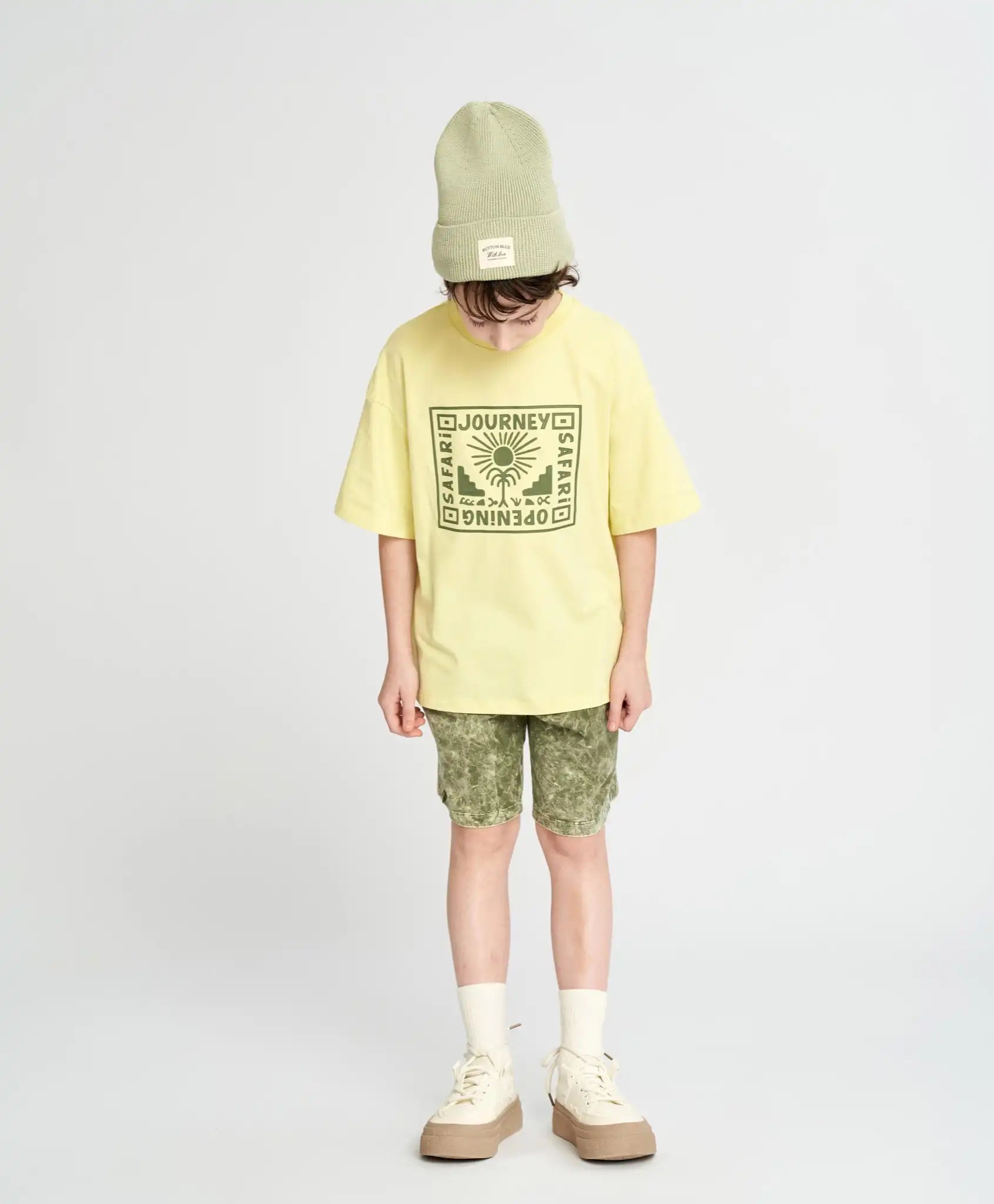 Tricou cu mânecă scurtă pentru băiat, galben, oversize, cu imprimeu, Button Blue