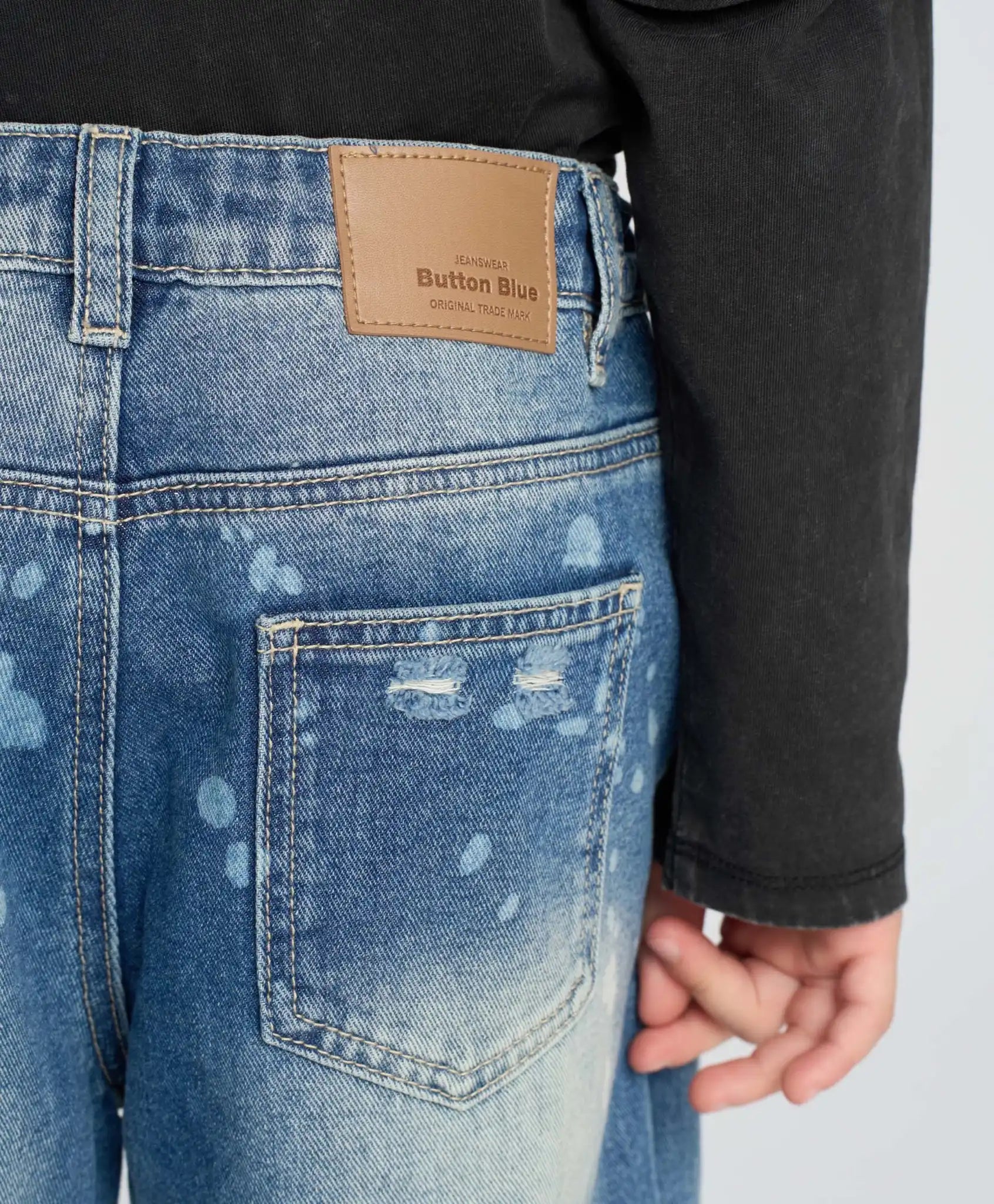 Blugi drepți pentru copii, albaștri, cu uzură, Button Blue
