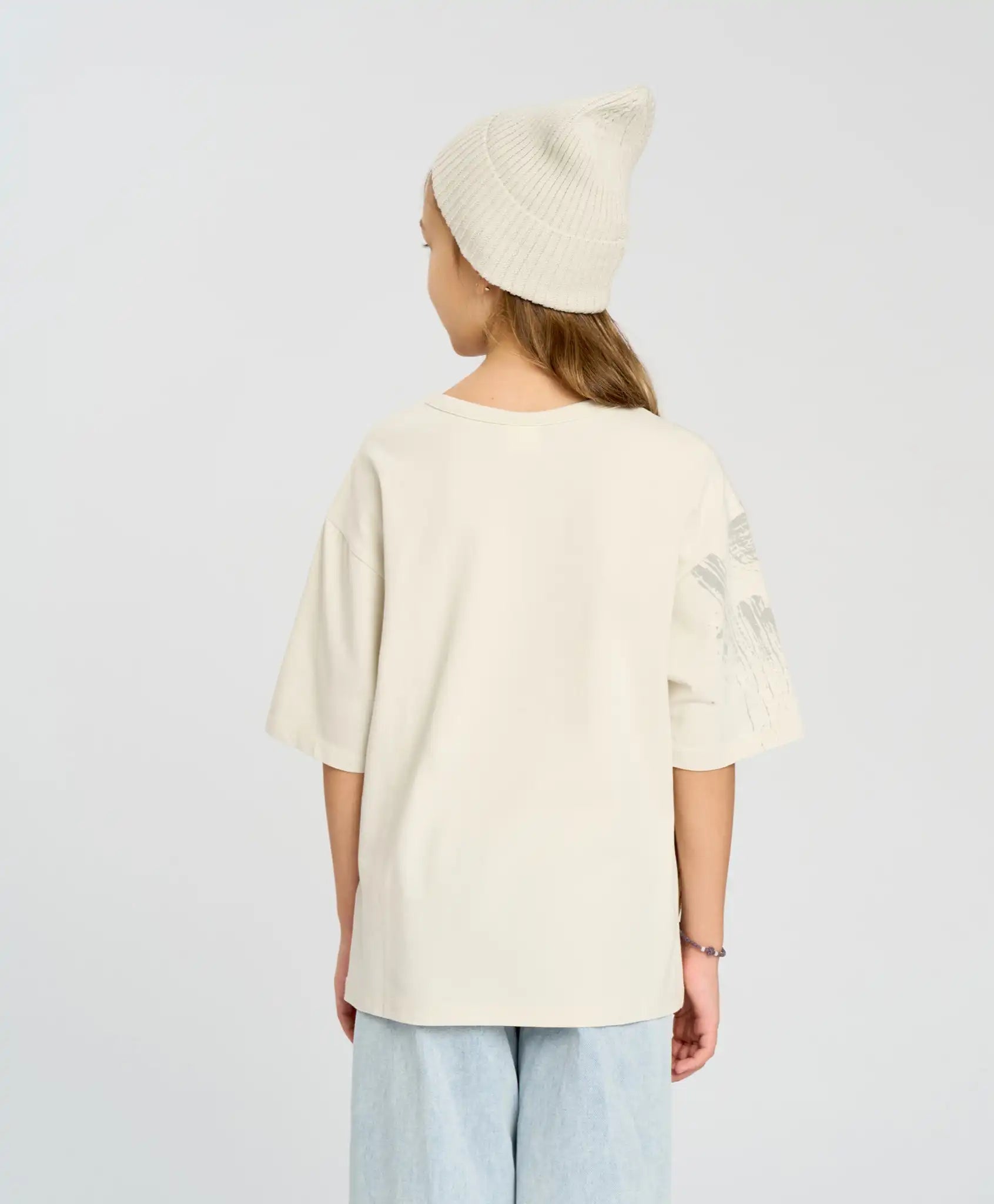 Tricou cu mânecă scurtă pentru fată, alb, oversize, cu imprimeu, Button Blue