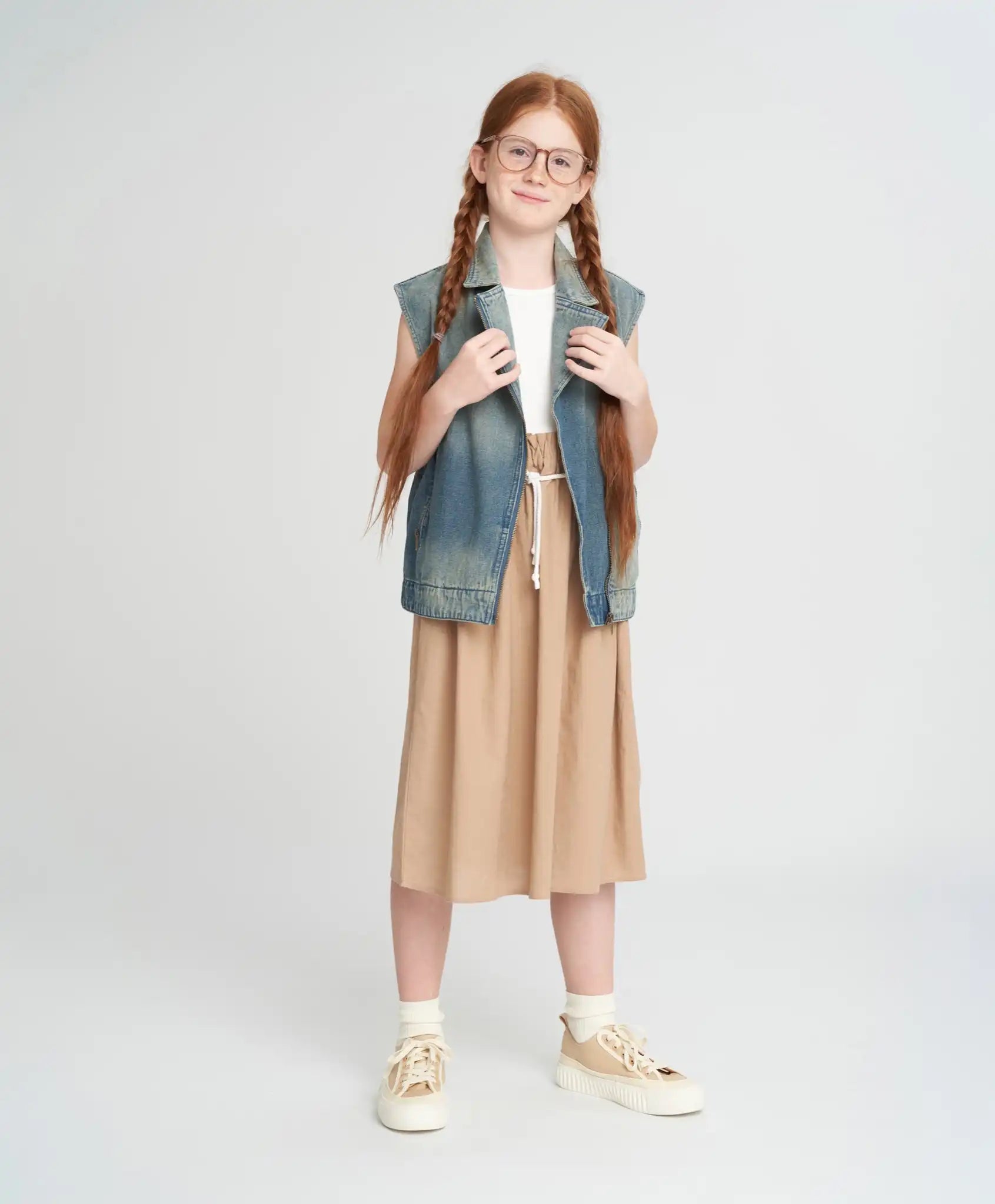 Vestă din denim cu fermoar pentru fată, cu trandafir albastru, Button Blue