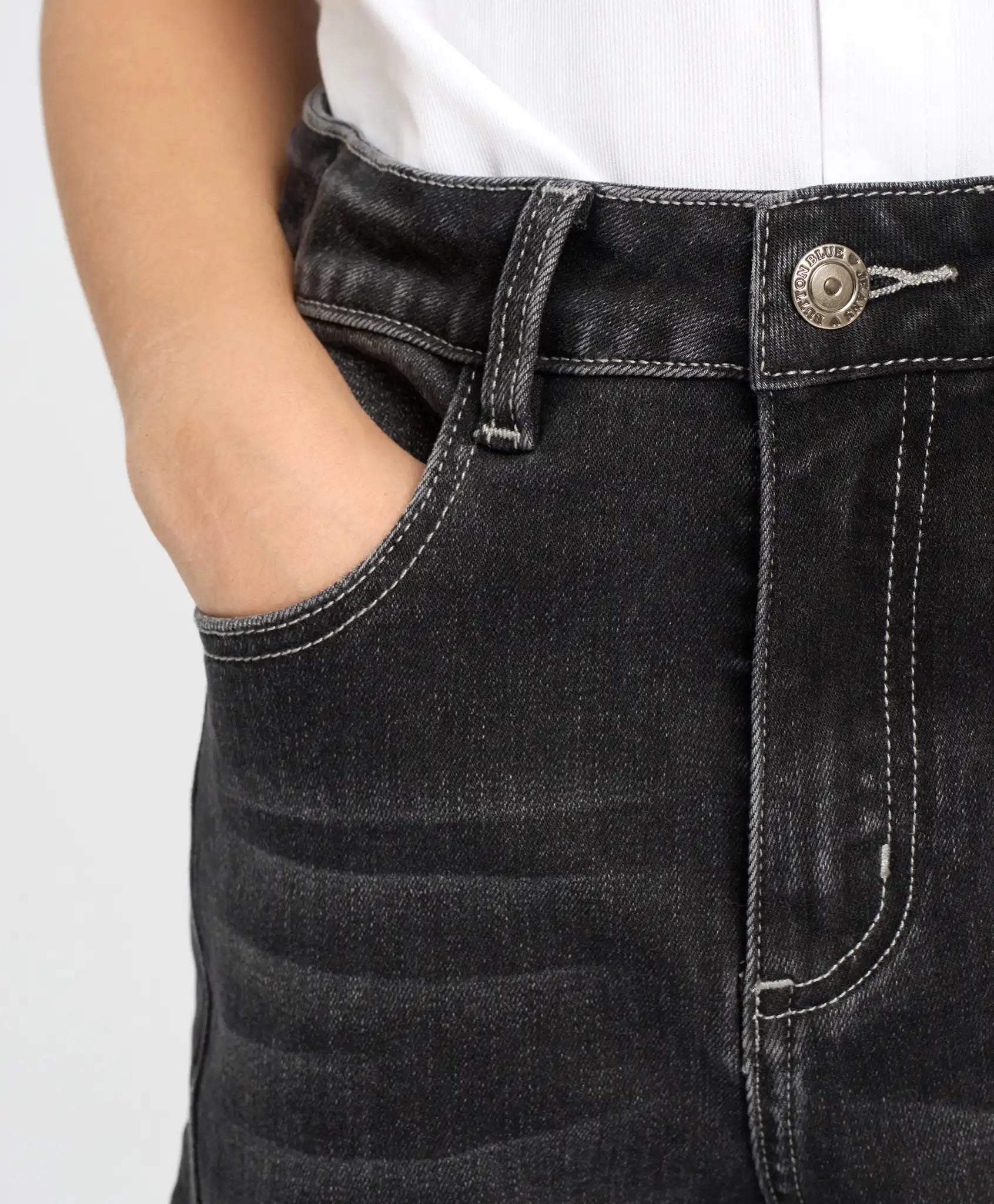 Blugi skinny pentru fată, gri, cu cusături laterale oblice, Button Blue