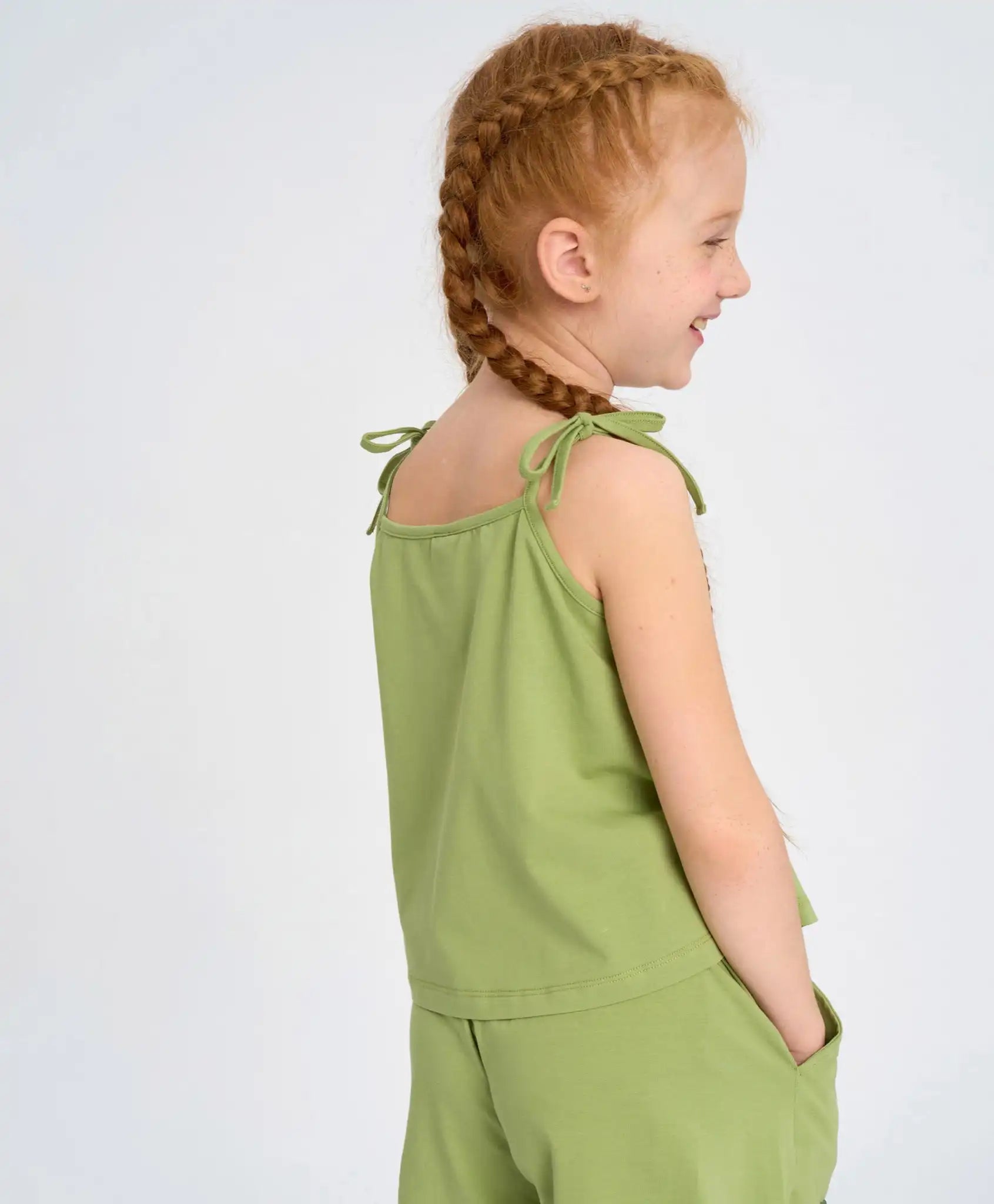 Top verde pentru fete cu șnururi și imprimeu Button Blue