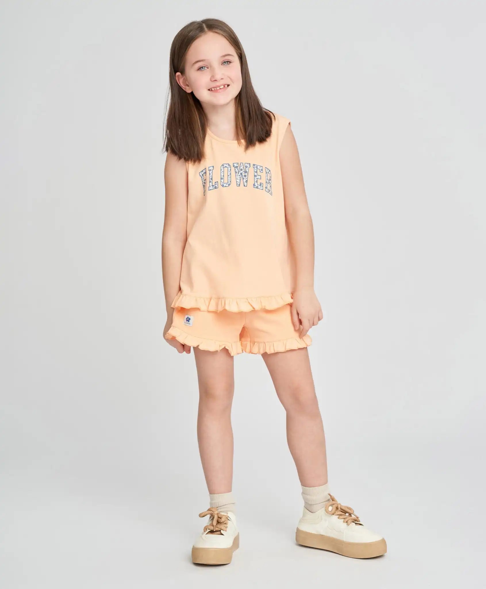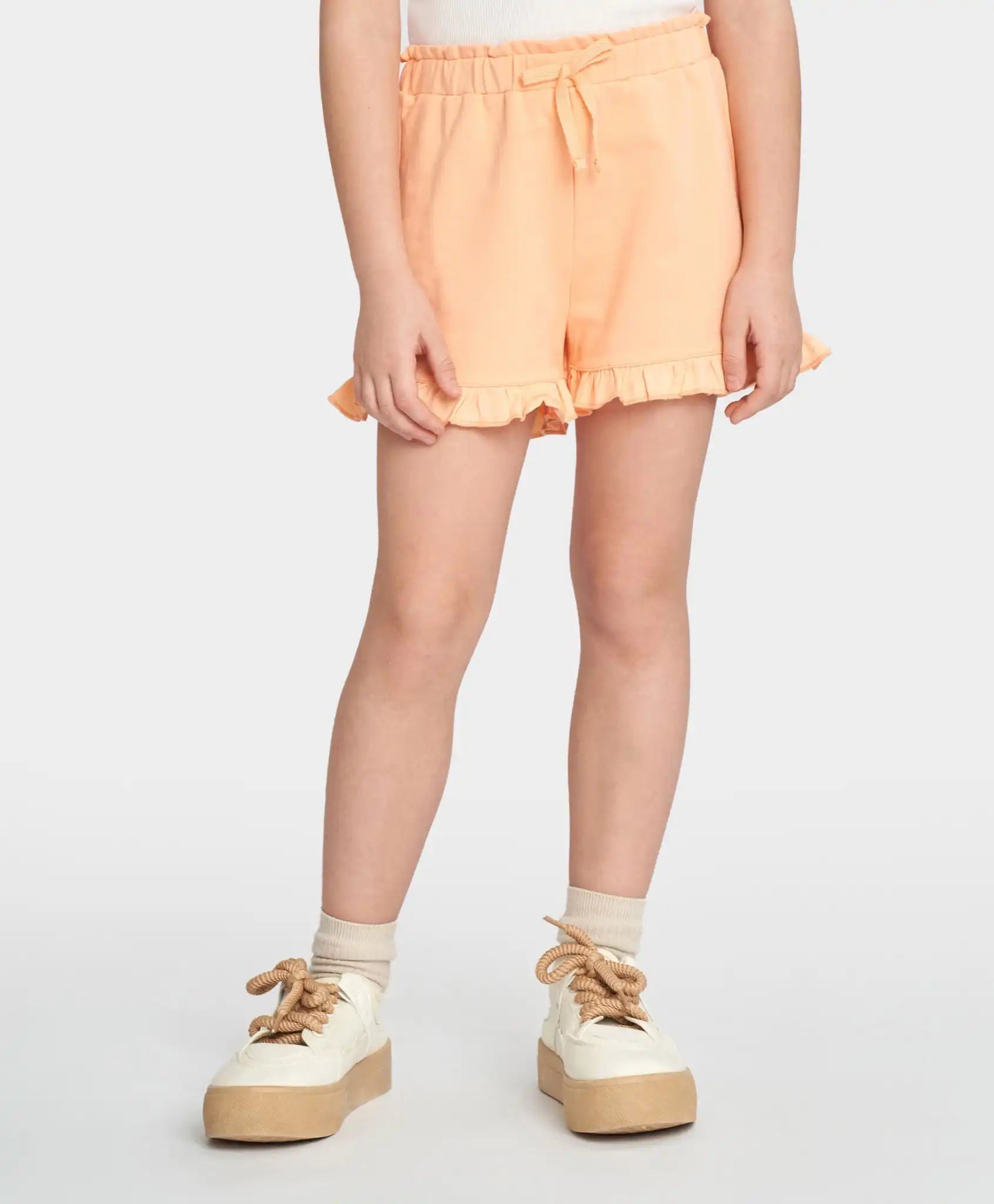 Pantaloni scurți pentru fată, portocalii, cu volane și imprimeu, Button Blue
