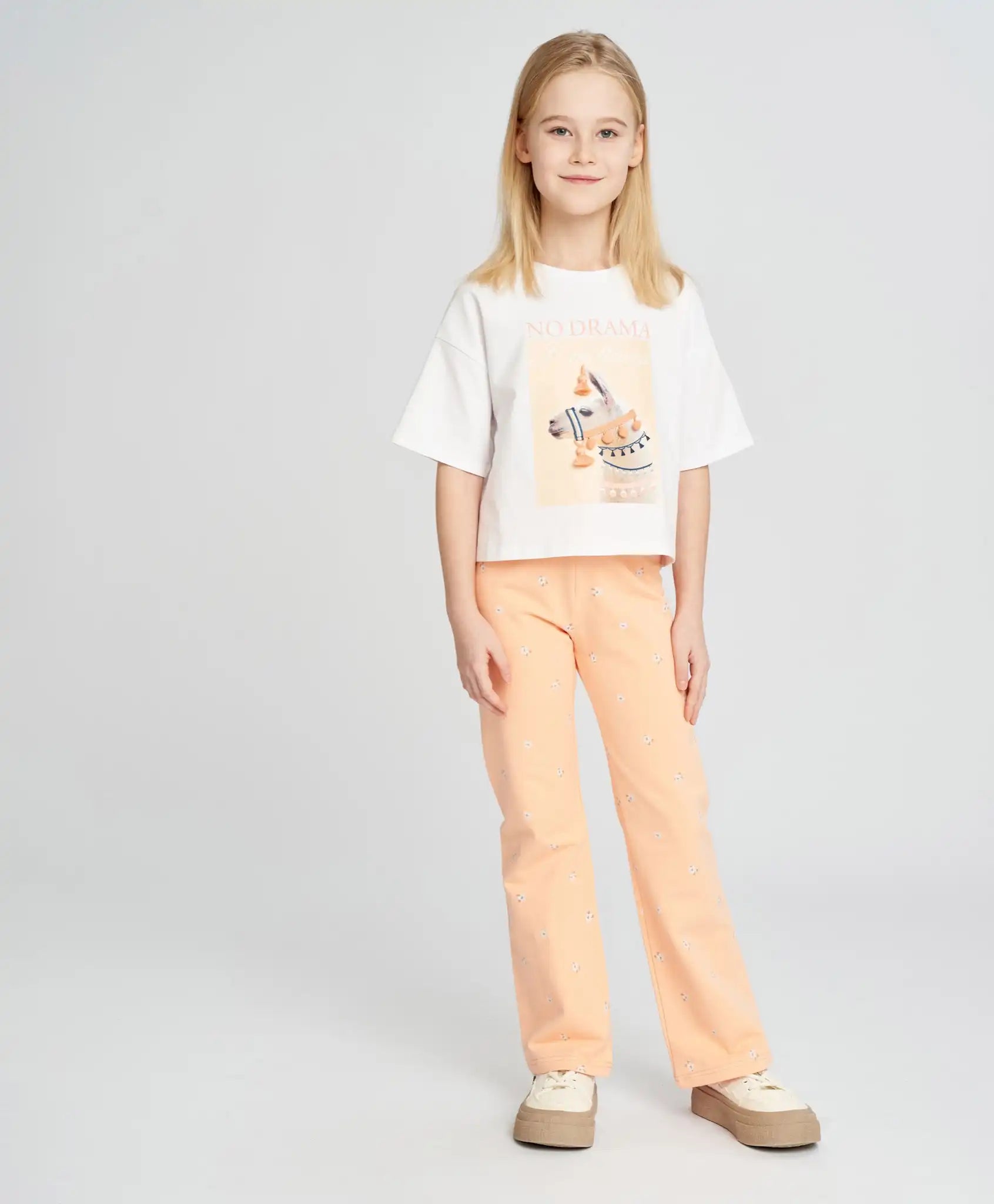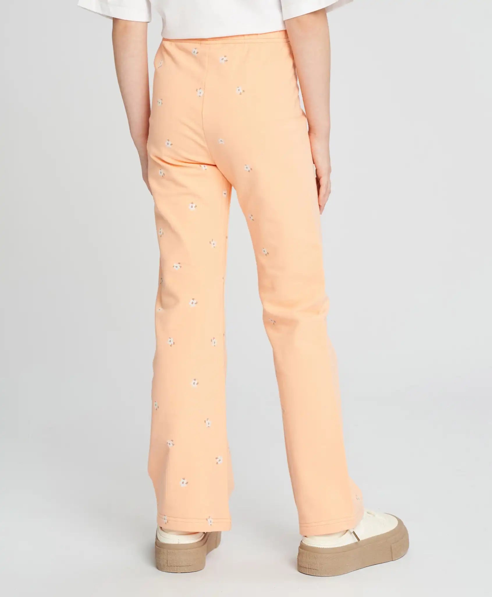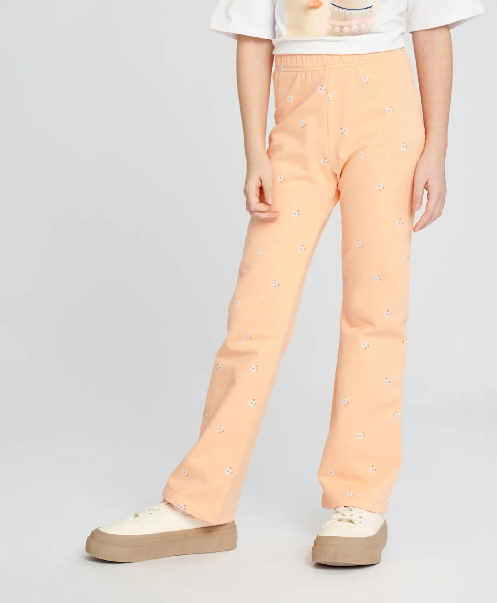 Vă prezentăm pantaloni evazați din fleece – alegerea ideală pentru fetele moderne. Confecționați din tricot de calitate, acești pantaloni oferă confort maxim și libertate de mișcare. Sunt o alegere excelentă pentru părinții care caută haine frumoase și confortabile pentru copiii lor. Culoarea piersică și imprimeul floral all-over conferă acestor pantaloni un aspect unic și jucăuș, făcându-i potriviți atât pentru viața de zi cu zi, cât și pentru ocazii speciale. Centura elastică facilitează îmbrăcarea și garantează o potrivire comodă, fără disconfort inutil. Sunt ideali atât pentru joacă activă în aer liber, cât și pentru plimbări relaxante de seară. Fiecare colecție ar trebui să includă pantaloni moderni care permit copilului să se remarce printre colegi. Acești pantaloni tricot sunt ușor de asortat cu diferite haine și încălțăminte, permițând crearea unor ținute variate și stilate.