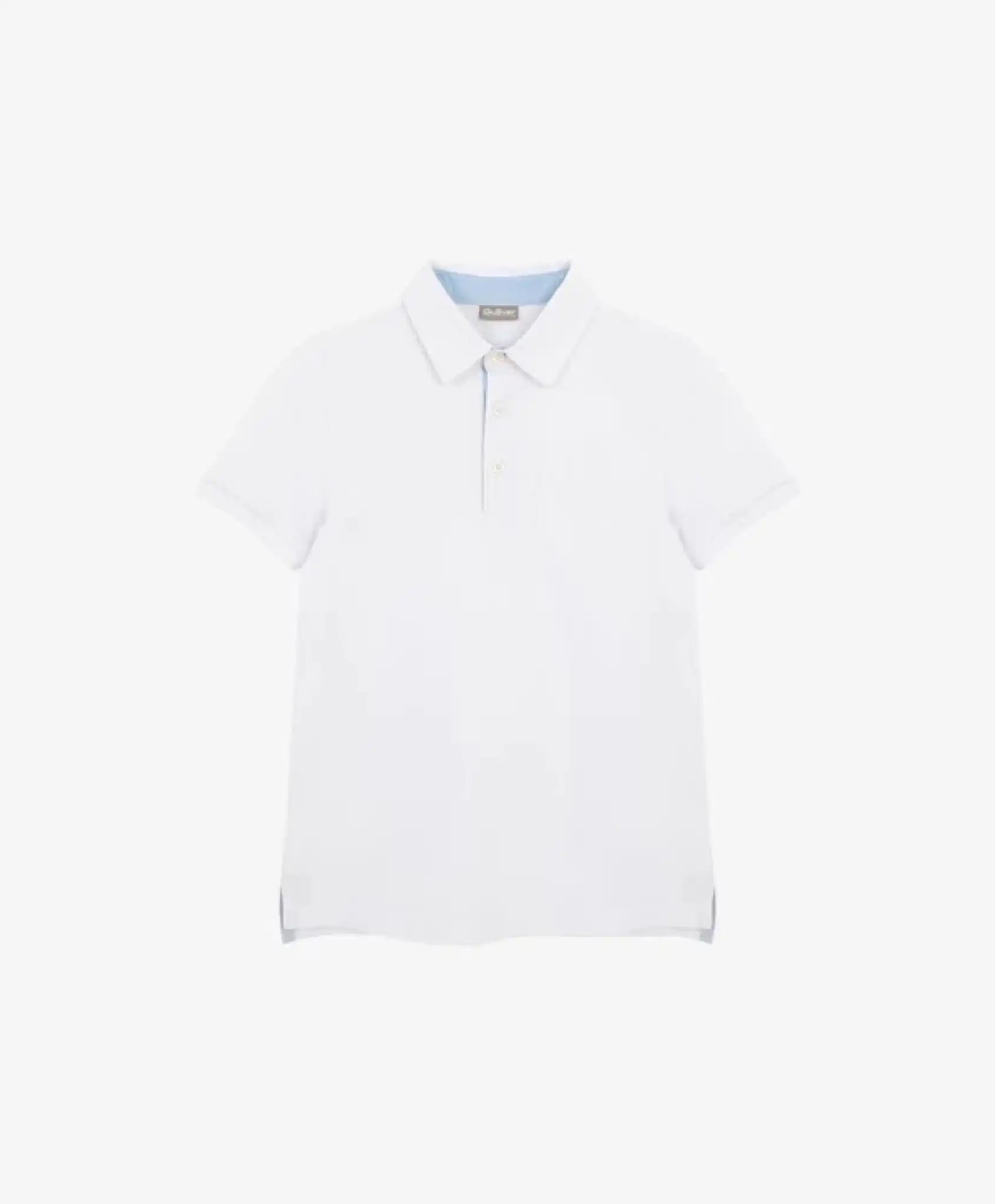 Polo cu mânecă scurtă din pique, alb, pentru băiat, Gulliver