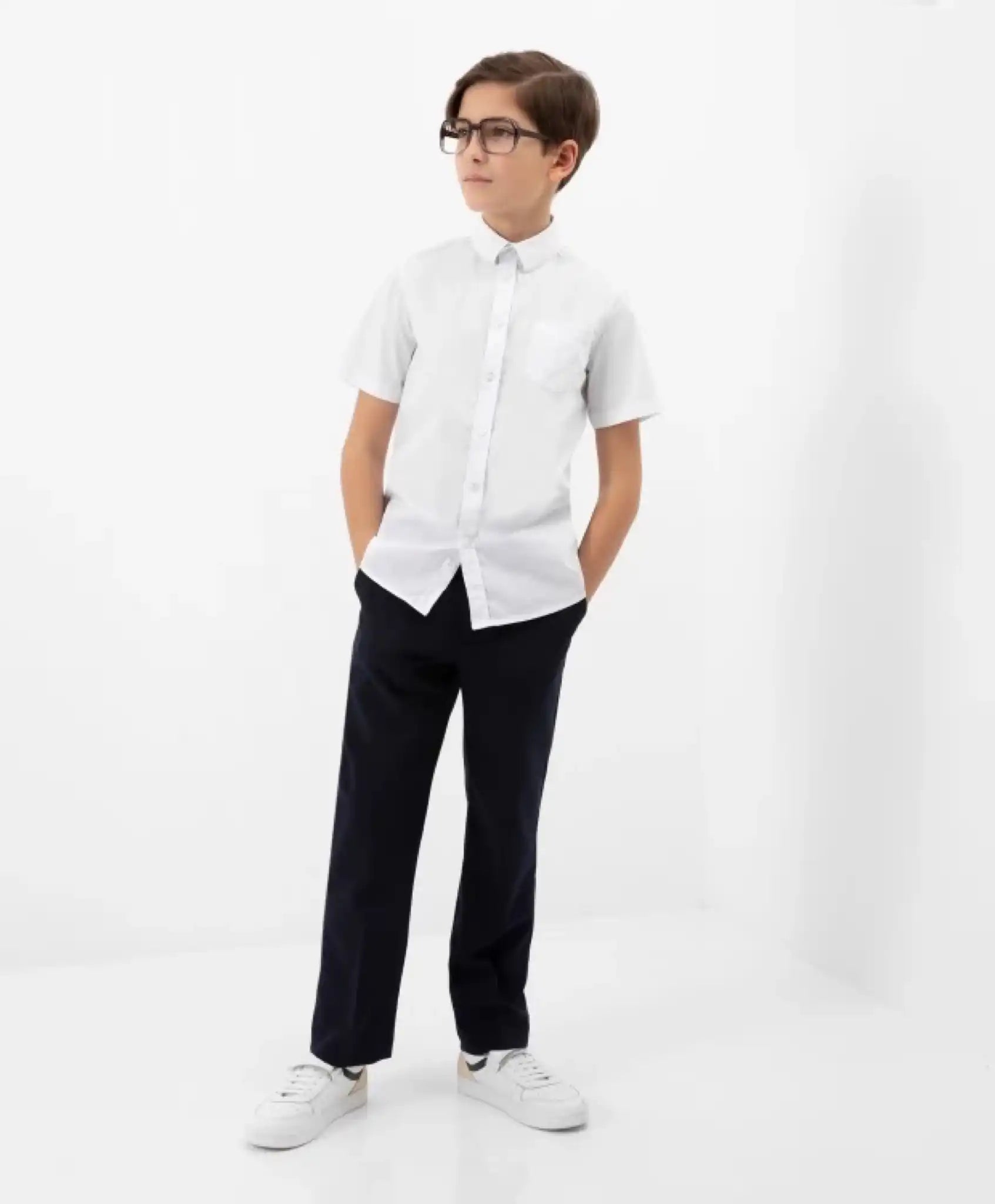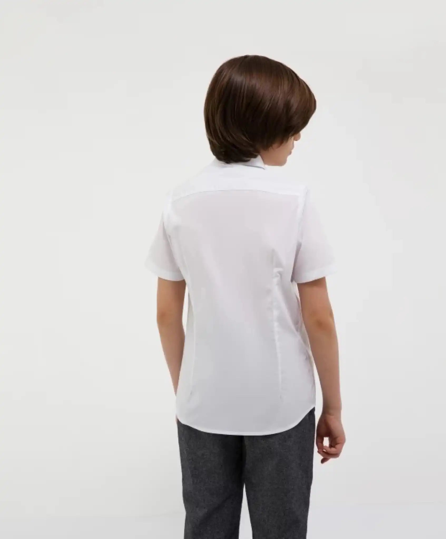 Cămașa albă clasică, cu siluetă semi-ajustată și mânecă scurtă, este un element esențial în garderoba școlară. Atât în zilele festive, cât și în cele obișnuite, această cămașă subliniază un look serios, responsabil și business pentru băiat. Compoziția materialului, cu predominanță de bumbac, face cămașa foarte confortabilă, atât la purtare, cât și la întreținere.