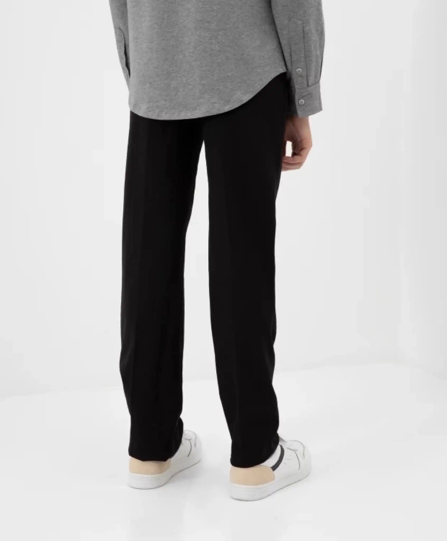 Pantalonii clasici negri, cu croială dreaptă, sunt baza garderobei școlare a copilului. Sobri, stilizați, eleganți, pantalonii negri sunt o opțiune zilnică de neînlocuit. Creează un ansamblu sofisticat cu un vest monocrom sau un sacou și pot forma un set elegant alături de un sacou și vestă. Confecționați dintr-un material de înaltă calitate, rezistent la uzură. O clemă specială reglează volumul centurii, ceea ce este foarte practic pentru copiii cu o constituție atipică. Lungimea lejeră permite ajustarea pantalonilor în funcție de înălțimea băiatului.