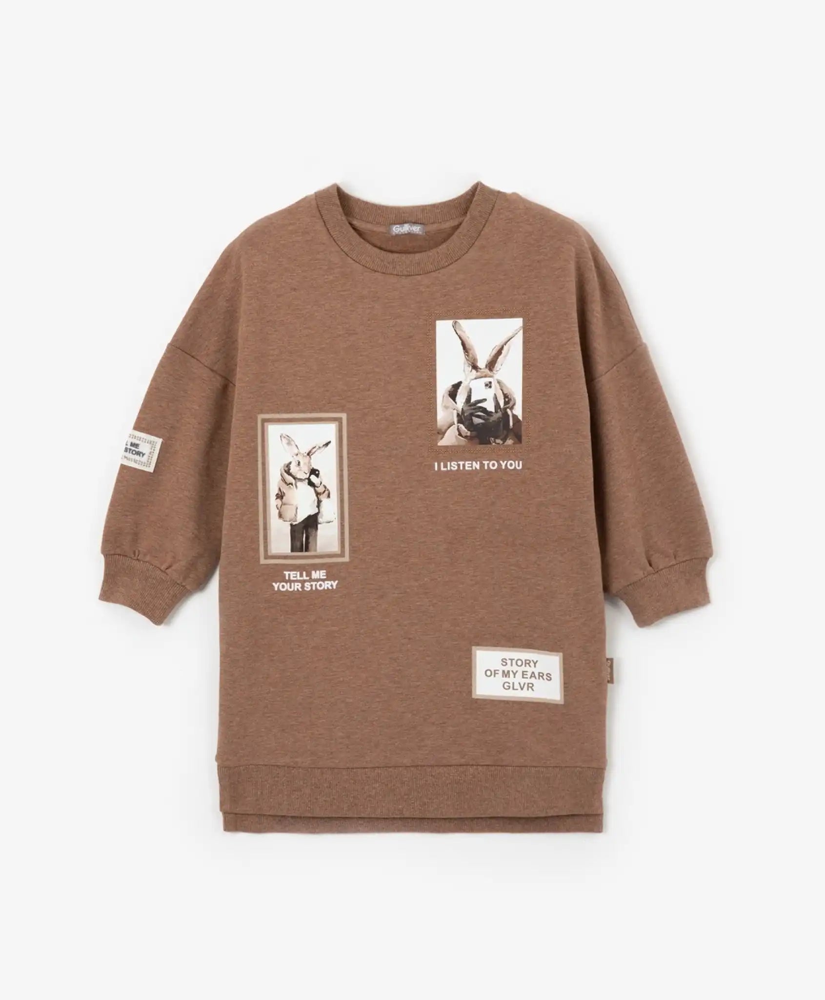 Rochie cu mâneci lungi și croială liberă, culoare maro, de la Gulliver