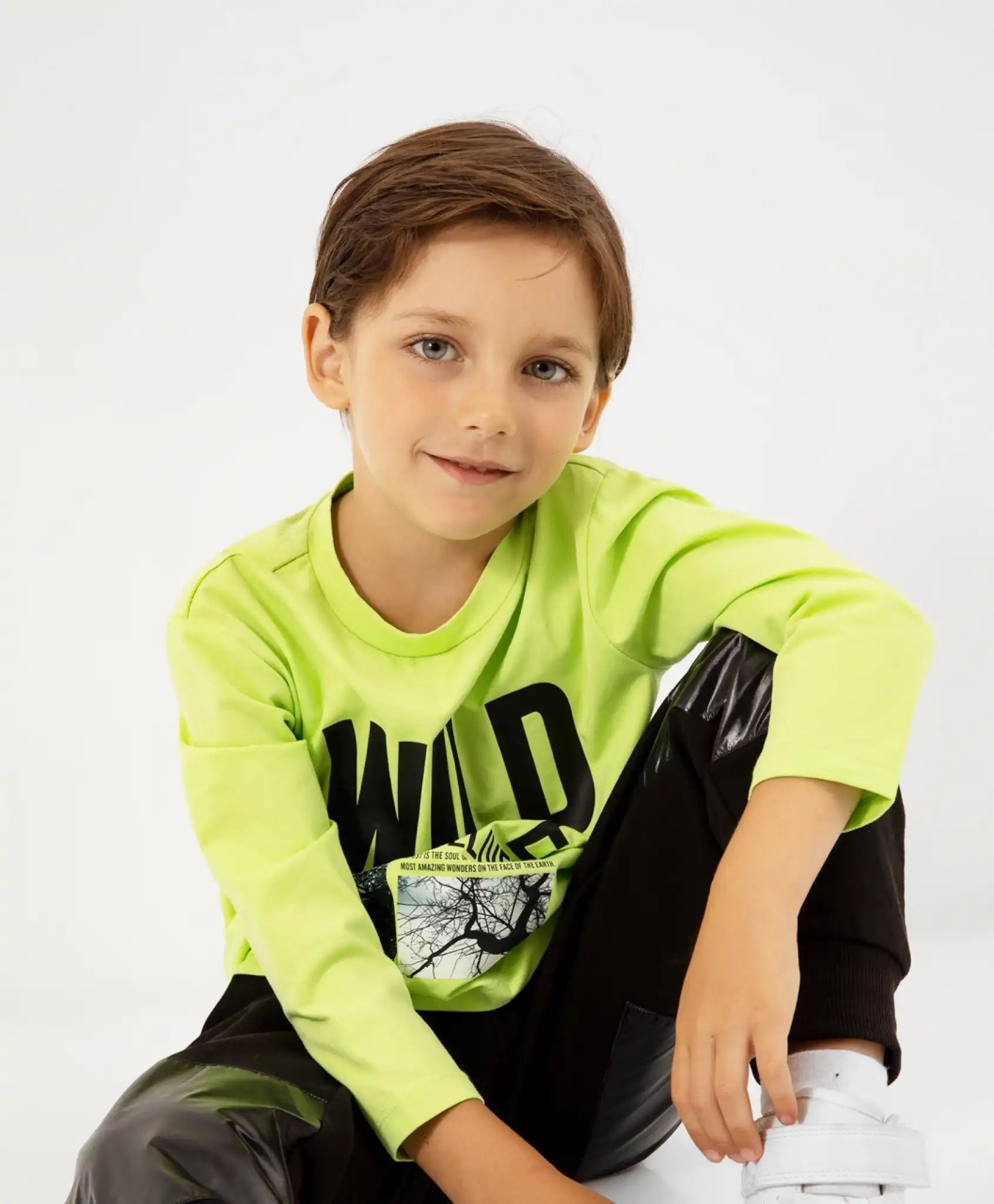 Tricoul modern cu mânecă lungă, într-o nuanță neon, este un element statement în garderoba unui băiat. Designul captivant al modelului, bazat pe grafică tipografică, fotoprinturi și elemente decorative tematice, creează un look stilat și memorabil, care reflectă confort, lejeritate și energie pozitivă.