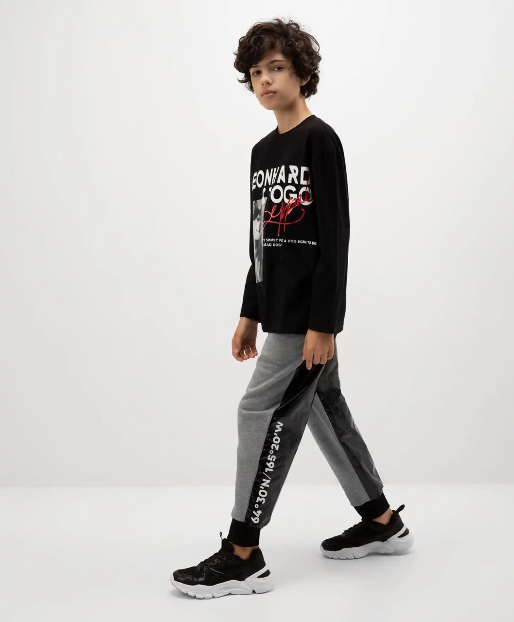 Pantalonii tricot sunt un atribut clasic al ținutelor casual. Modelul este bazat pe o combinație de două texturi: polar monostrat în față și fleece întărit cu un strat suplimentar de material impermeabil lucios pe partea din spate. Datorită combinației contrastante de materiale, pantalonii au un aspect nou, care atrage atenția prin claritatea și prospețimea soluției de design. În plus, sunt foarte practici, ceea ce este important pentru plimbările în zilele ploioase. Pantalonii sunt prevăzuți cu buzunare cu fermoare modelate pentru utilizare ușoară, precum și cu un șnur cu capete din plastic pentru ajustarea taliei. Designul modelului include imprimeuri tipografice.