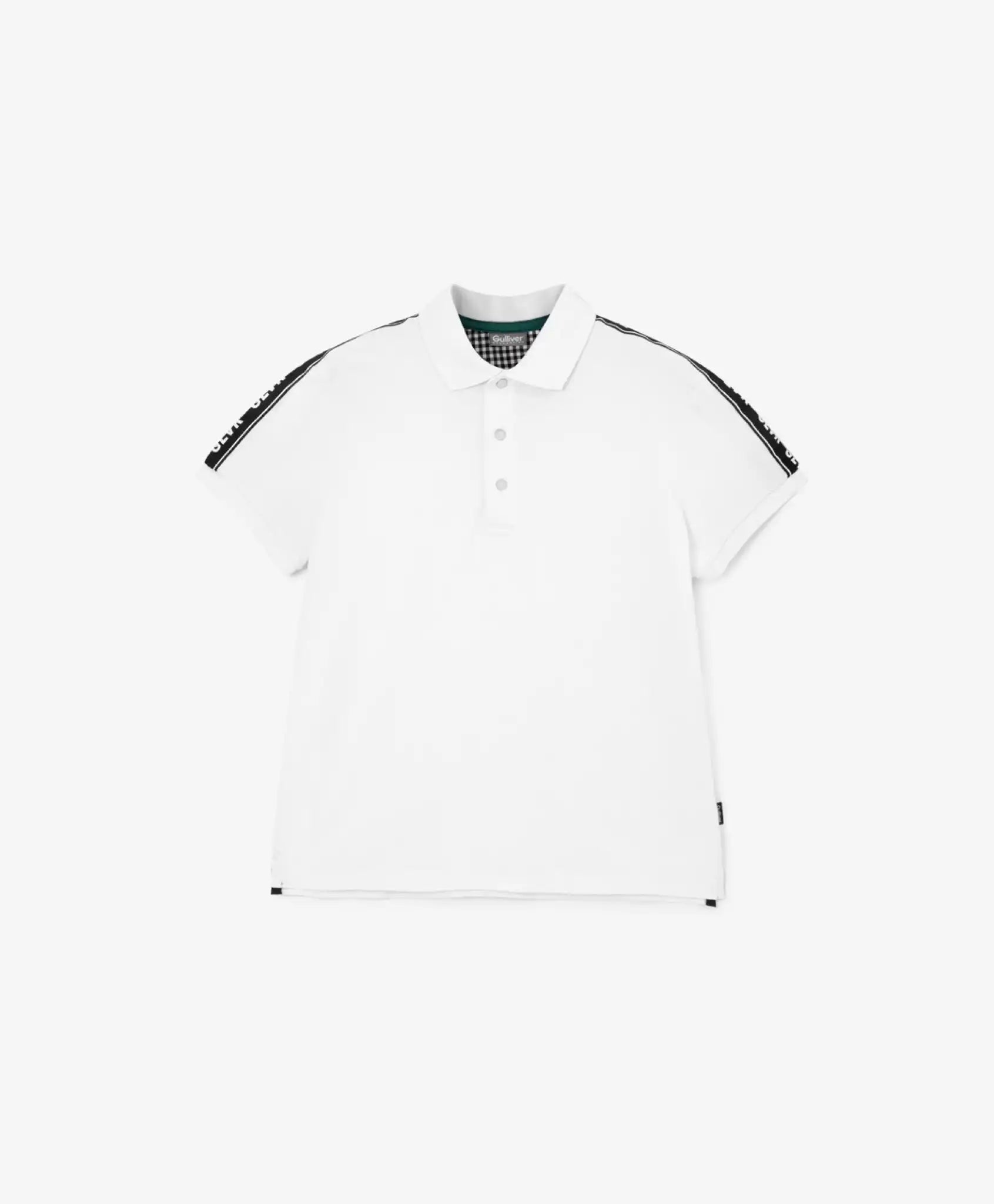 Tricoul alb stil polo cu mânecă scurtă este o alternativă excelentă la o cămașă. Dacă nu sunt evenimente oficiale la școală, un tricou polo alb din pique este o alegere potrivită. Elementele tipografice contrastante și imprimeul de pe spate adaugă un plus de originalitate, conferindu-i un stil sportiv. Asociat cu pantaloni, blugi sau joggeri, acest polo creează un set confortabil pentru purtarea zilnică.