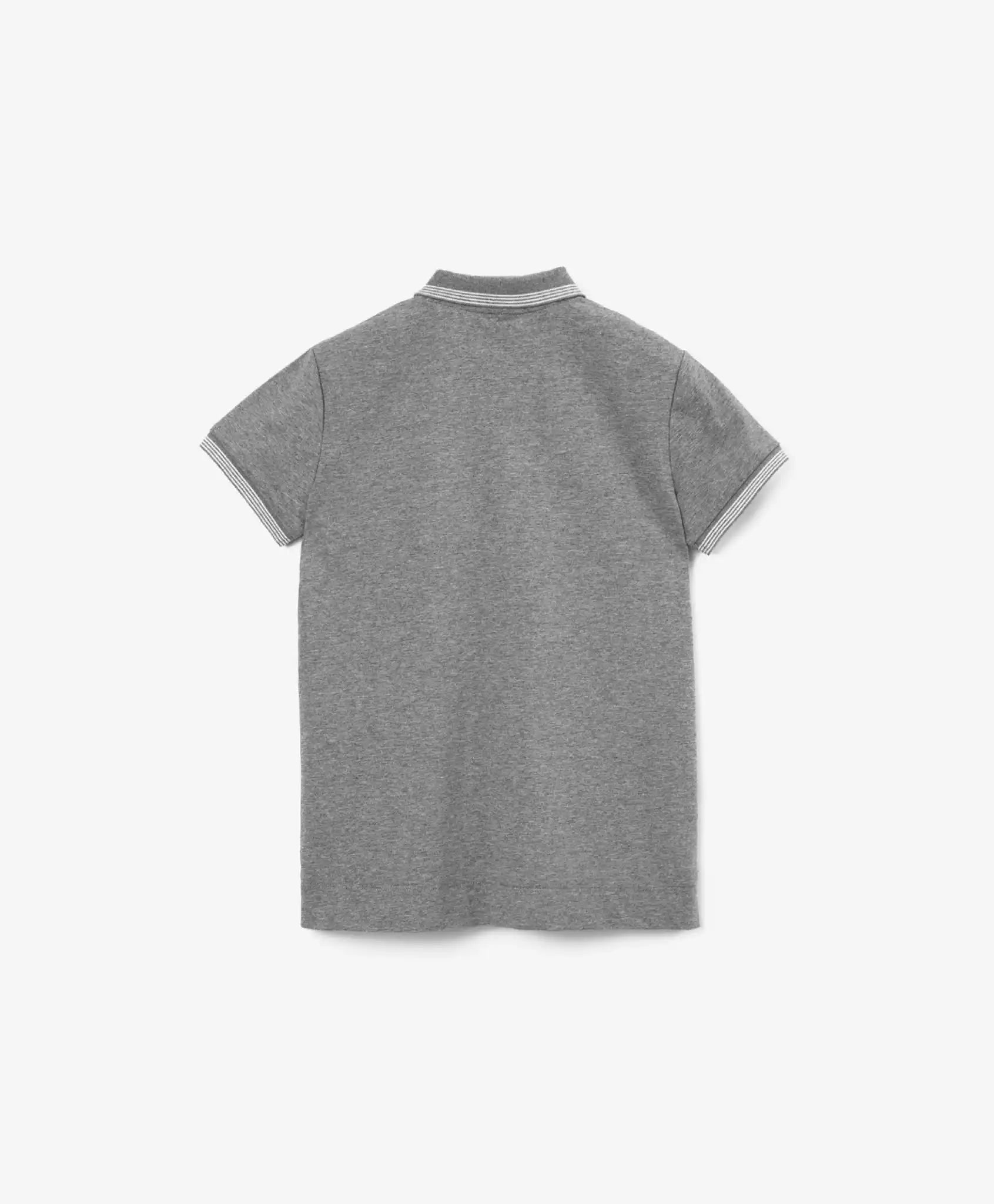 Tricoul gri cu mânecă scurtă este o alternativă elegantă la o cămașă. Când nu sunt evenimente oficiale la școală și un stil confortabil este considerat benefic pentru învățare, tricoul gri din tricot melanj este o opțiune practică și stilată. Imprimeurile tipografice contrastante, gulerul și manșetele din tricot cu dungi fac ca modelul să fie interesant și proaspăt, cu un aer sportiv.