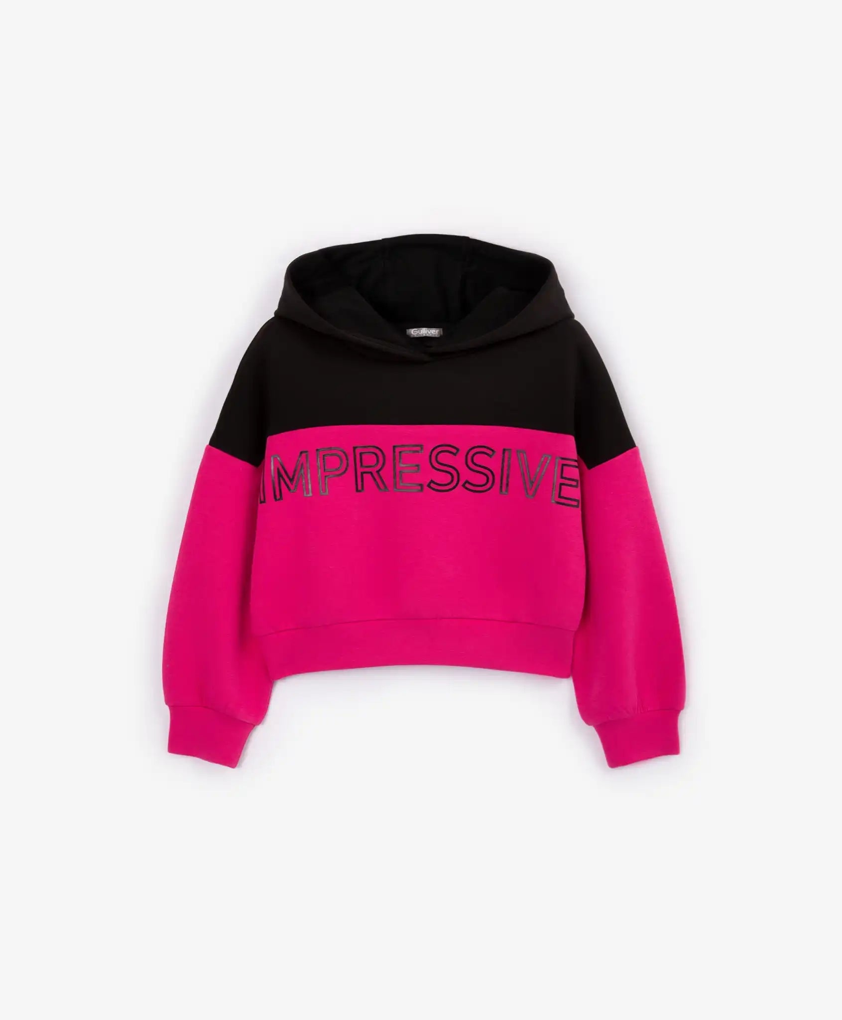 Hanorac scurt tip bomber – o alegere modernă și stilată! Designul modelului este bazat pe tehnica actuală de colorblocking. Hanoracul este confecționat din interlock dens și neted, elastic și formabil. Proporțiile modelului creează o siluetă actuală, transformând hanoracul într-un element statement al unei ținute stratificate. Designul include un imprimeu tipografic mare.