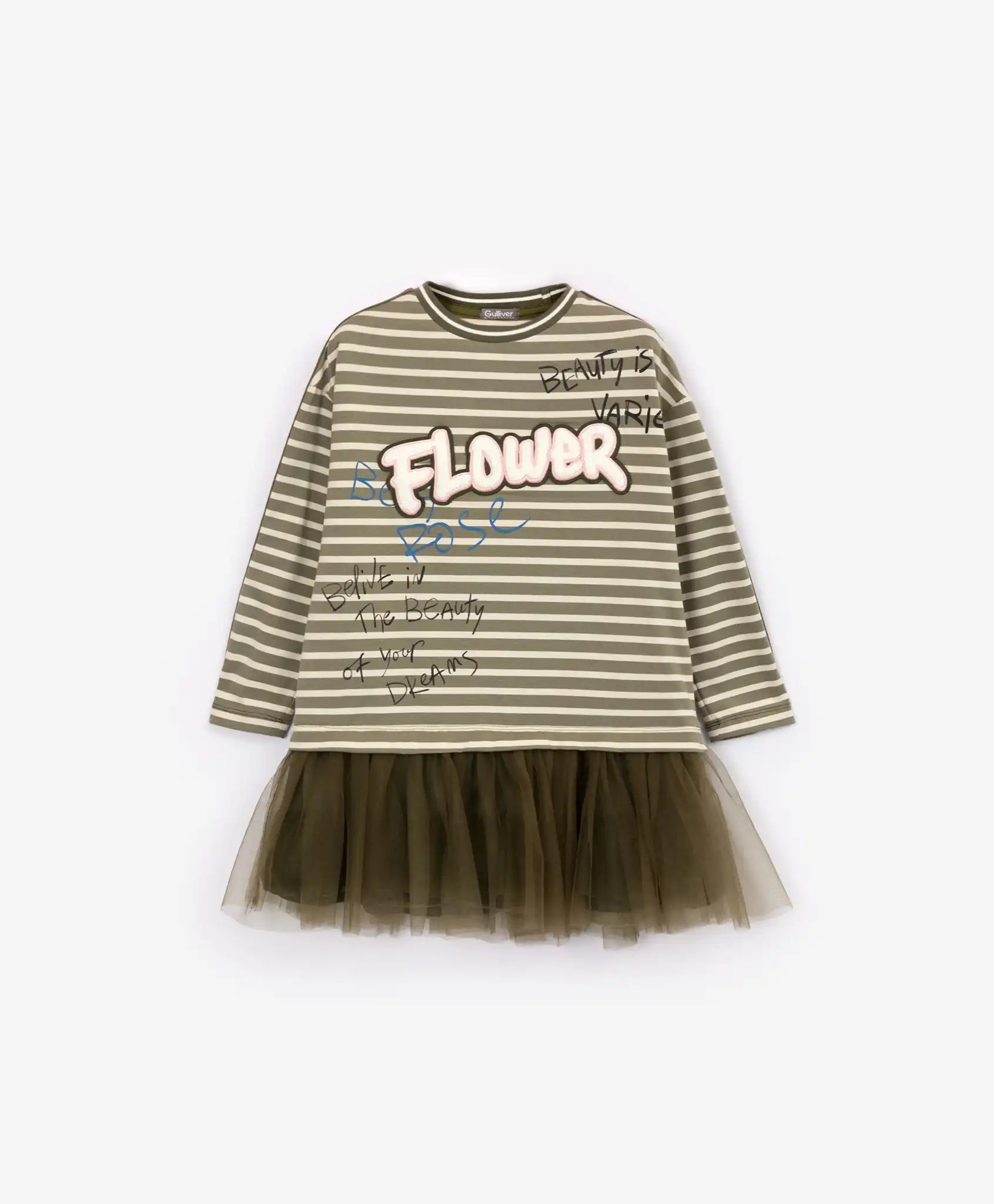 Alegerea rochiilor pentru grădiniță poate fi o provocare pentru mame. Rochia trebuie să fie ușoară, frumoasă, practică, să își mențină forma excelentă pentru o perioadă îndelungată și, cel mai important, să fie pe placul copilului! Exact aceste criterii le îndeplinește rochia tricotată de la Gulliver, care are toate șansele să devină piesa de bază din garderoba zilnică a fetiței. Confecționată dintr-o combinație de dungi dinamice și plasă, rochia arată extrem de stilată, interesantă și proaspătă. Designul modelului imită stratificarea, părând un set compus dintr-un tricou cu mânecă lungă și o fustă. Aspectul romantic al fustei voluminoase din plasă este completat de un top dinamic, accentuând elementele moderne ale designului. Manșetele din tricot dungat, broderia volumetrică tipografiată și imprimeurile oferă rochiei un aspect stilat, original și neconvențional.