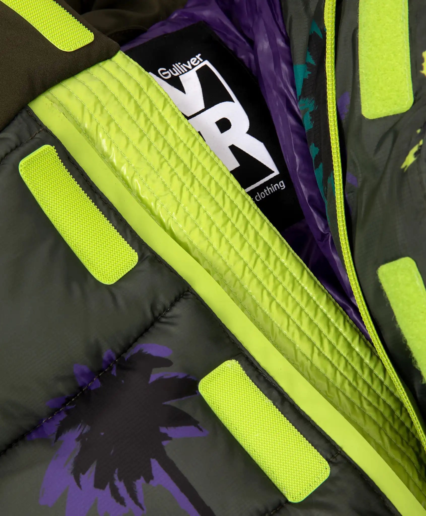 Jacheta de tranziție stilată cu puf artificial este cea mai bună alegere pentru vremurile reci și instabile de toamnă! Designul modelului este bazat pe culori și combinații de texturi. Materialul de culoare khaki masculină cu un imprimeu modern, care are un ușor luciu nobil, materialul mat al glugii, detaliile de finisare și căptușeala colorată se completează reciproc și fac jacheta strălucitoare și interesantă. Jacheta are o formă voluminoasă și liberă. Legăturile din partea de jos permit ajustarea siluetei, protejându-vă de vânt. Mansetele din material elastic de tricot cu deschizături pentru degete protejează mâinile de frig. Buzunarele confortabile se închid cu fermoare rezistente la umezeală. În decorarea jachetei sunt folosite mari imprimeuri de fonturi reflectorizante și un logo din cauciuc. Elementul decorativ de pe spate, din șnur și aplicație din cauciuc, subliniază rafinamentul și neobișnuitul designului și alinierea modelului la tendințele modei.