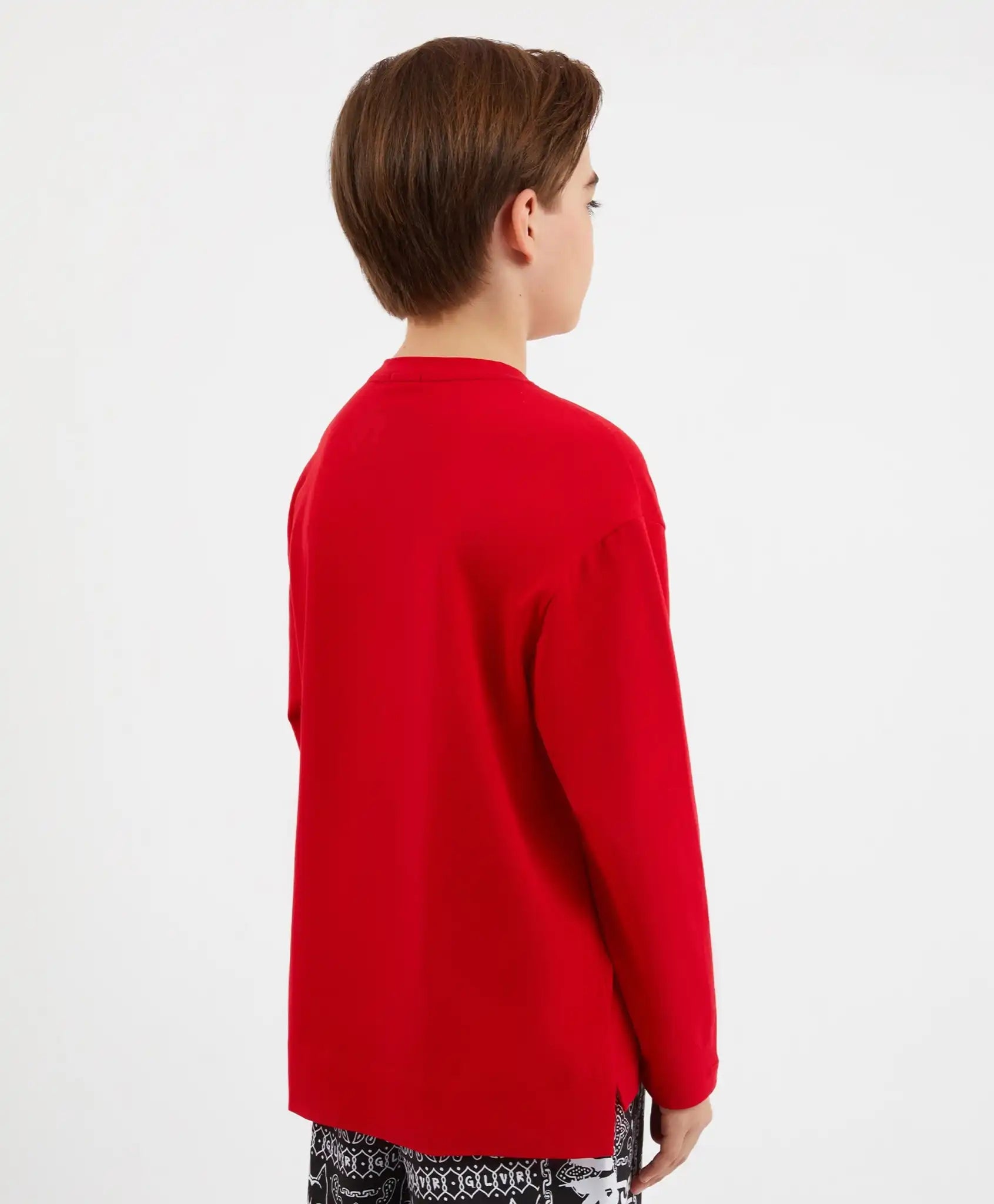 Tricoul roșu deschis cu mânecă lungă este o piesă ce emană energie! Culoarea modernă, designul stilat și croiala amplă, cu umeri lăsați și spate prelungit, îl fac o alegere perfectă pentru garderoba zilnică a unui adolescent. Modelul este decorat cu un imprimeu geometric cu textură fină și o imagine embosată a unui câine de mari dimensiuni, oferindu-i un aer puternic și masculin. De asemenea, tricoul include un mic steag textil cu cod QR care direcționează către site-ul brandului Gulliver.