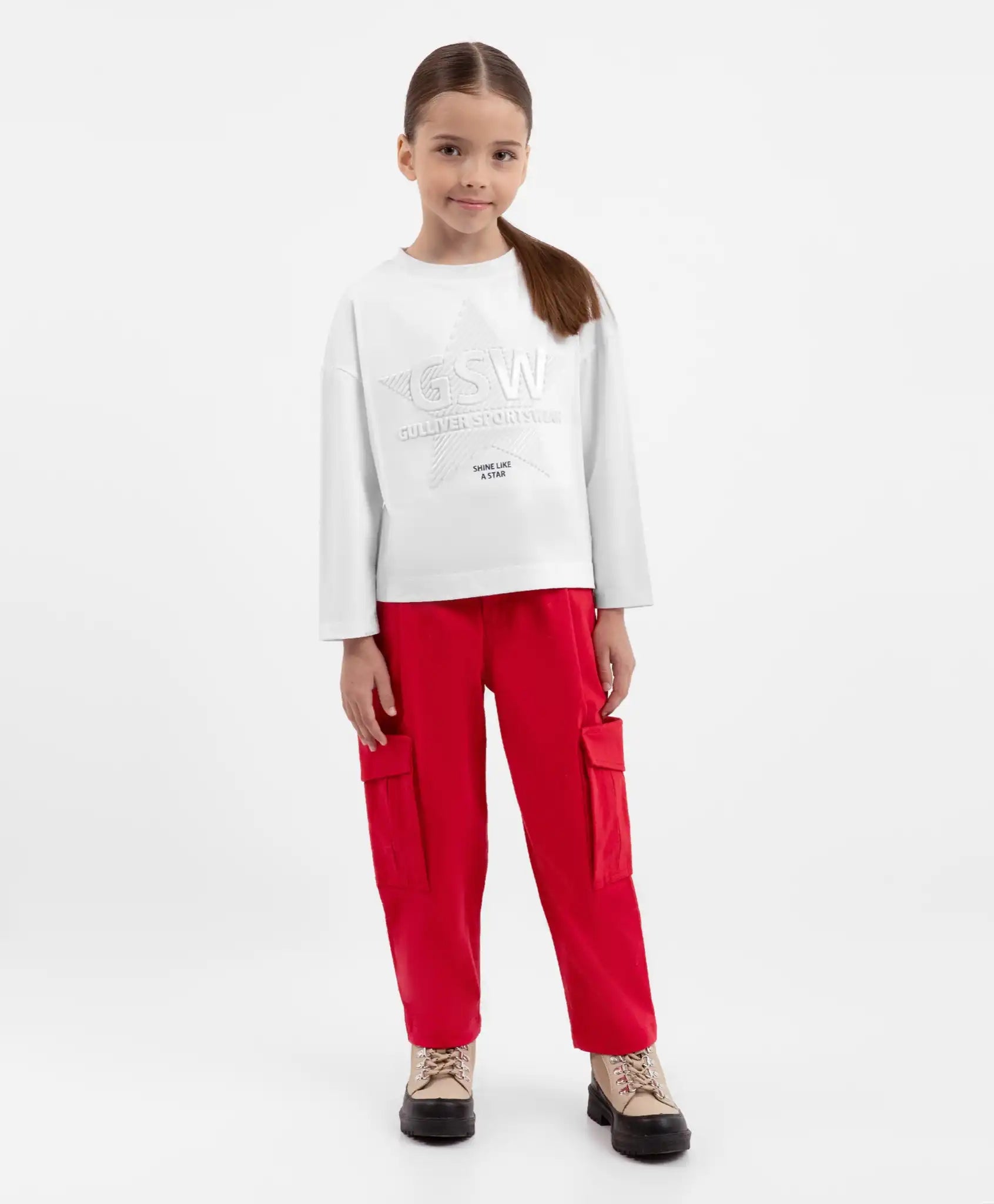 Pantaloni drepți, roșii, cu buzunare cargo, pentru fată, Gulliver
