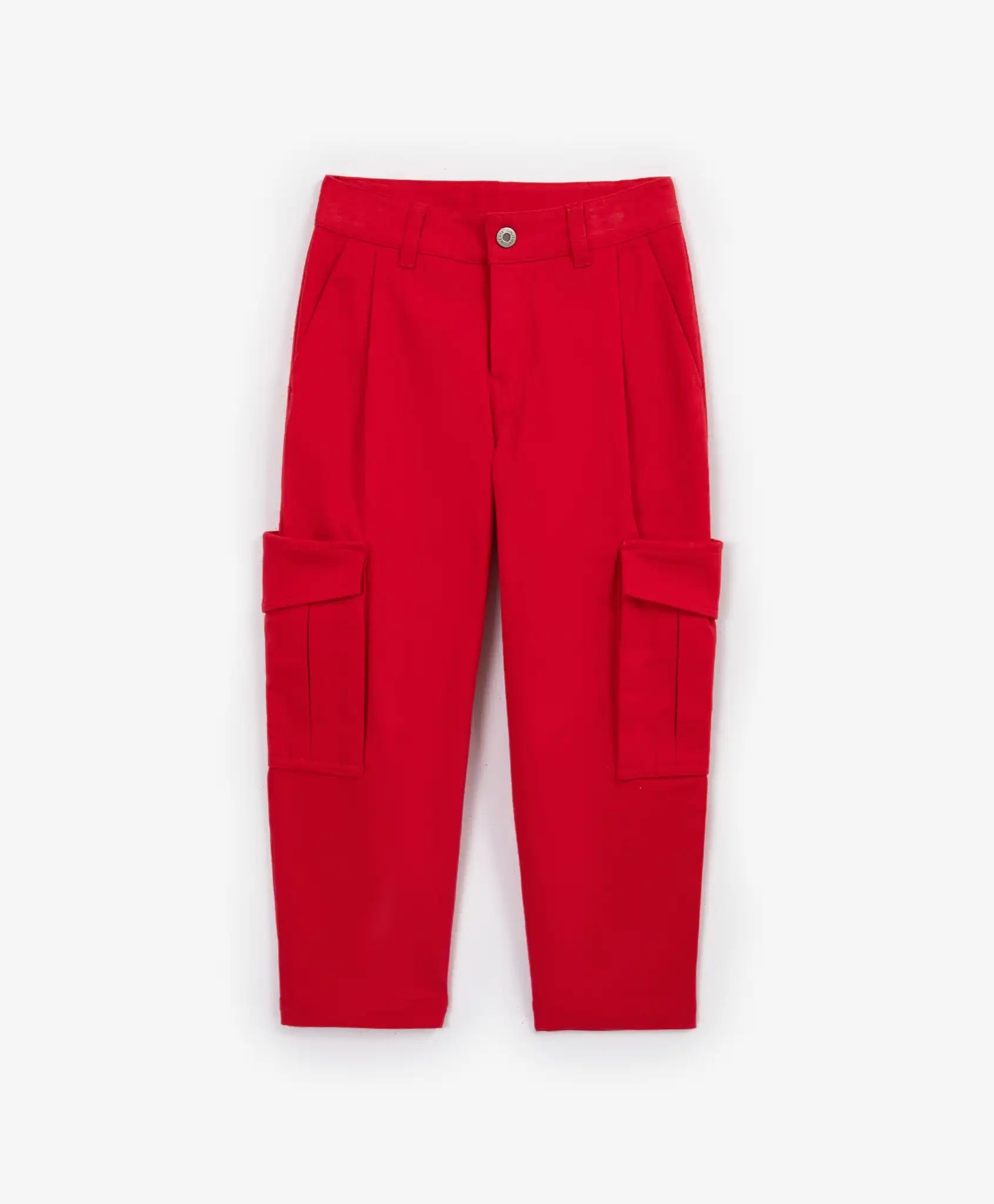 Stilat, expresiv și practic! Pantalonii roșii drepți, cu buzunare cargo, vor adăuga culoare garderobei unei fete! Confecționați din twill dens, pantalonii își mențin forma și oferă căldură. Datorită unui mic procent de elastan, sunt flexibili și confortabili pentru mișcare. Pe lângă buzunarele cargo spațioase, modelul include buzunare laterale înclinate pentru un plus de funcționalitate. Găicile pentru curea permit adăugarea unui accesoriu stilat.