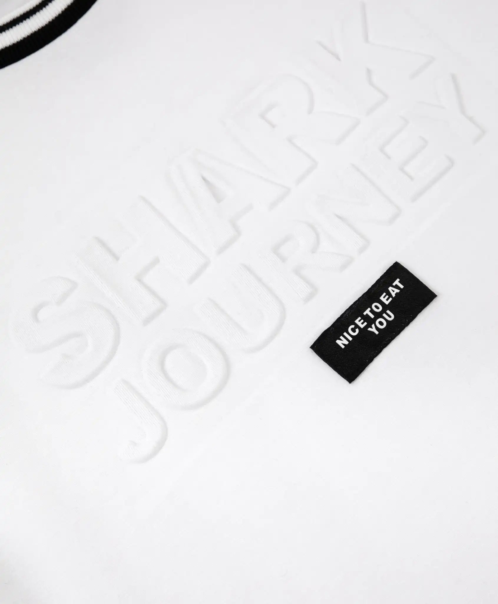 Longsleeve alb, cu aceleași caracteristici, este o altă piesă de bază în garderobă! Confecționat din tricot moale din bumbac, modelul este completat de un imprimeu reliefat și o etichetă jacquard cu elemente tipografice.