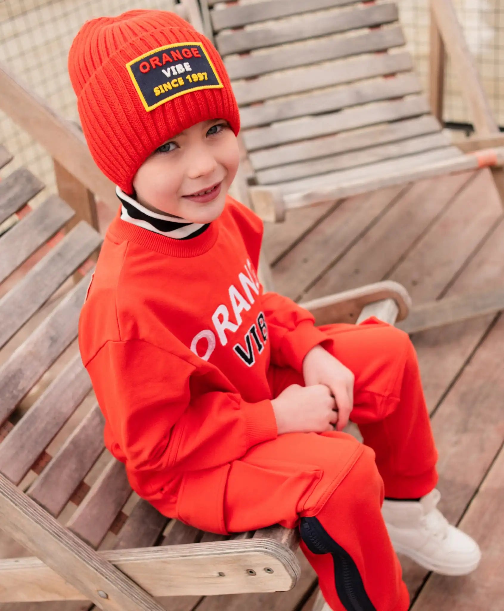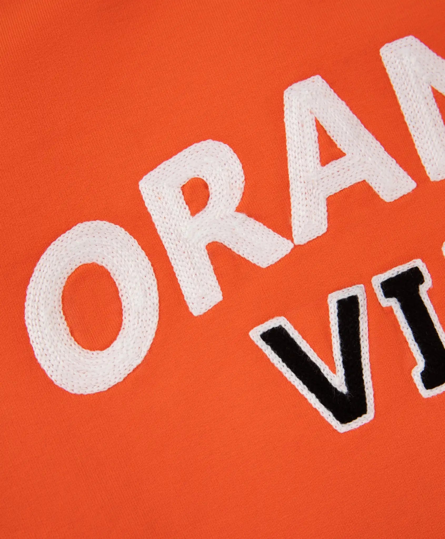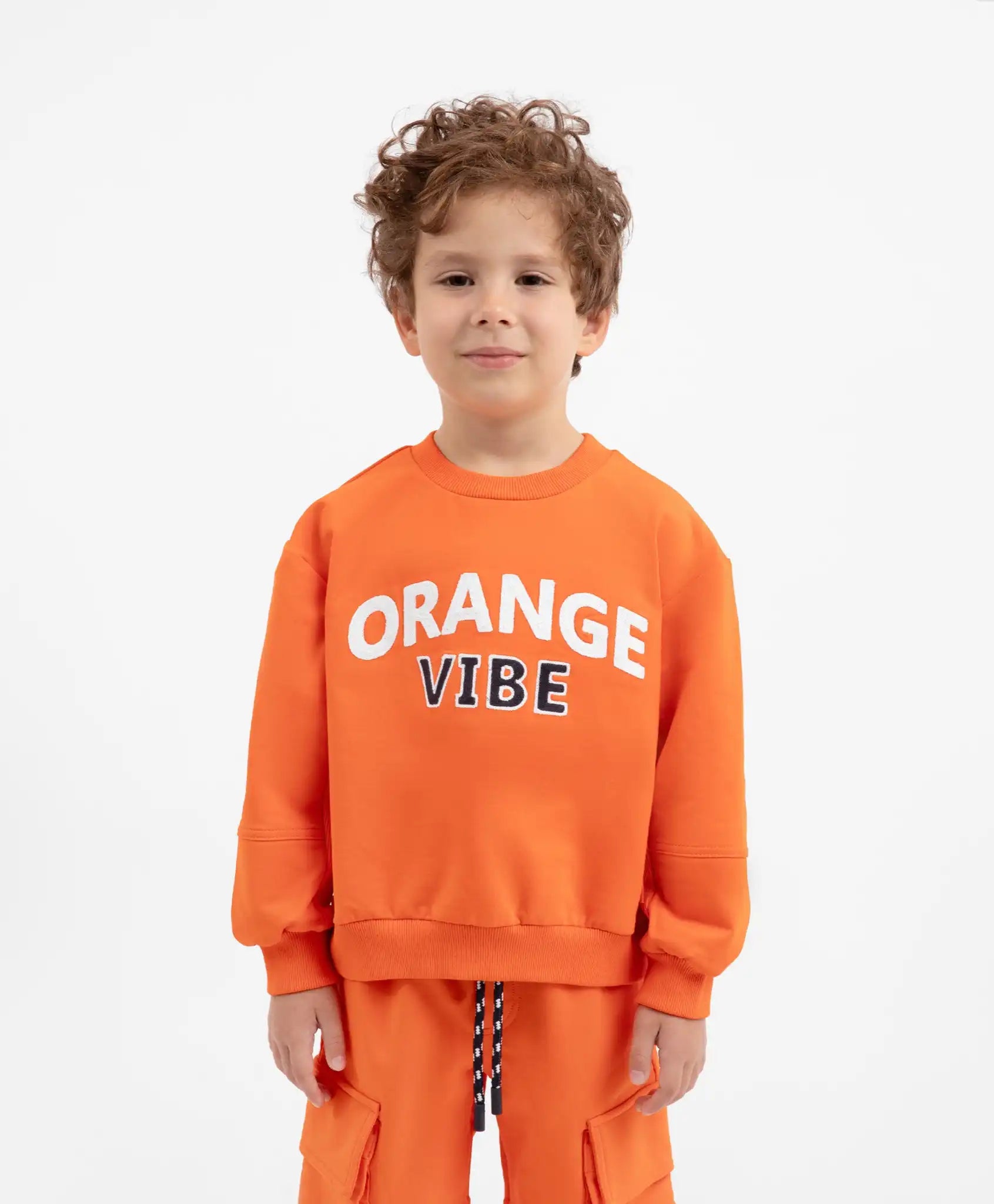 Hanoracul voluminos portocaliu este un must-have în garderoba băiatului pentru a adăuga culoare într-o zi mohorâtă de toamnă! Modelul cu umeri căzuți este realizat din French Terry moale și plăcut la atingere, având o structură unică: suprafață netedă la exterior și interior pufos cu bucle fine. Decorul frontal include o broderie mare tipografică. Pe spate se află aplicații retro. Hanoracul va crea un set sportiv vibrant și stilat împreună cu pantalonii portocalii din fleece 22405BMC5602.