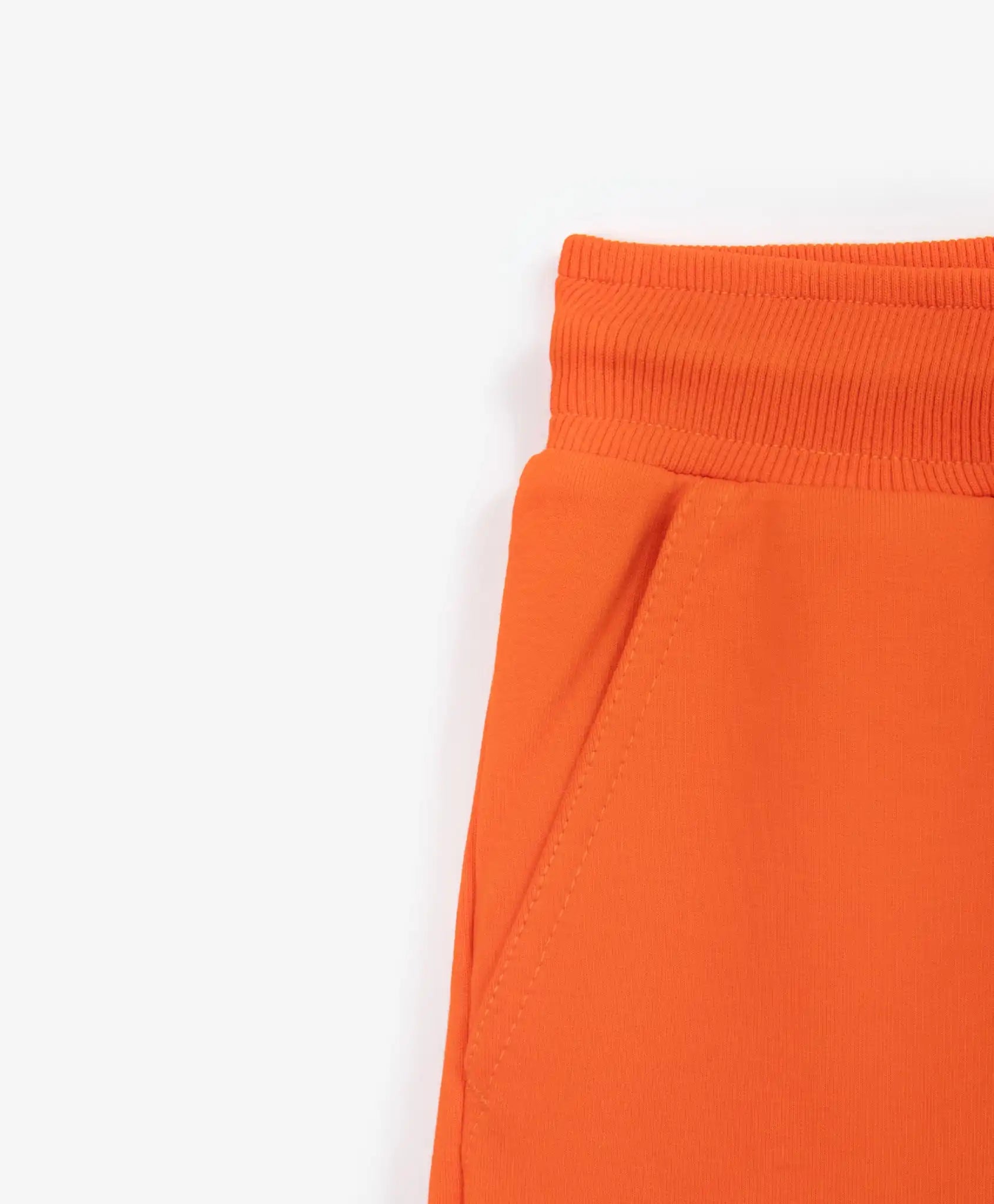 Joggerii portocalii sunt esențiali în garderoba unui băiat pentru a adăuga energie și culoare zilelor mohorâte de toamnă! Confecționați dintr-un material French Terry moale și plăcut la atingere, acești pantaloni au o structură unică: o suprafață exterioară netedă și un interior pufos. Modelul dispune de buzunare cargo pentru funcționalitate sporită, buzunare laterale tăiate, betelie elastică cu șnururi și manșete. Pe unul dintre buzunarele cargo este aplicat un imprimeu tipografic, iar pe spate un print minimalist. Joggerii vor forma un set sportiv expresiv alături de hanoracul portocaliu din fleece 22405BMC1601.
