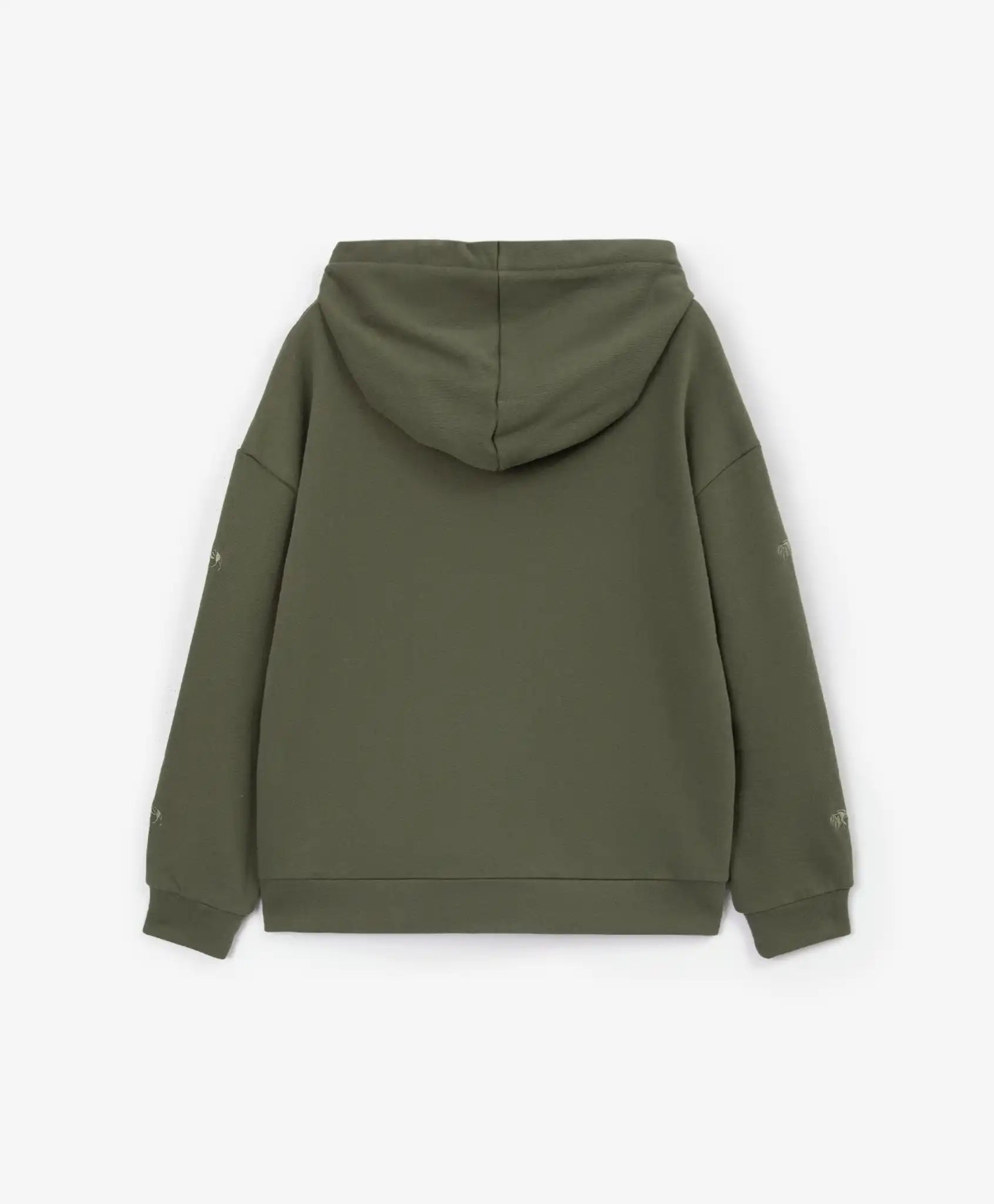Hoodie oversized din material fleece cu broderii în culoare kaki pentru băieți Gulliver