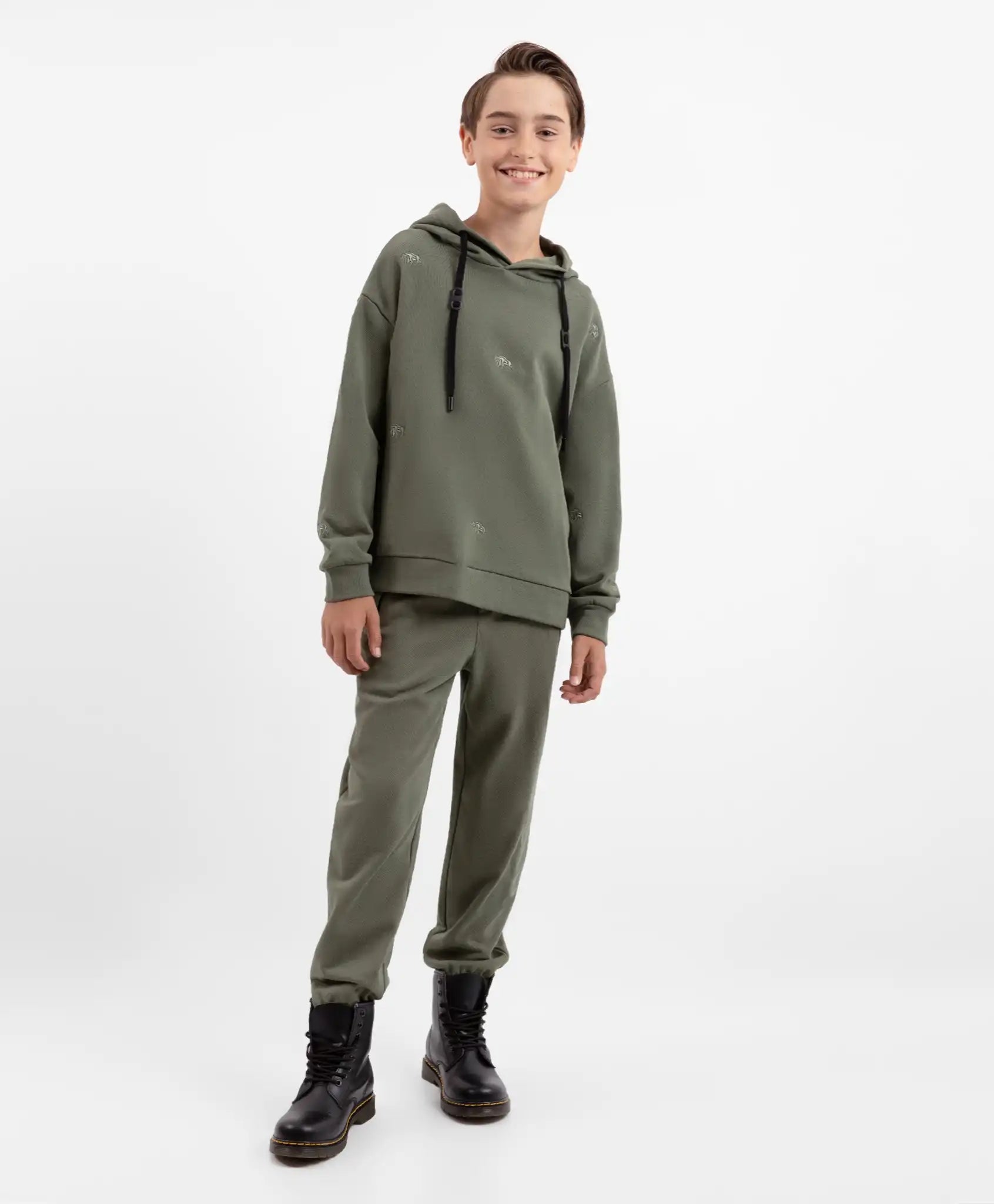 O alegere stilată și practică pentru plimbări, sport sau momente de relaxare acasă – joggerii în nuanța kaki. Modelul este confecționat dintr-un French Terry respirabil, cu un conținut ridicat de bumbac. Materialul este moale la atingere, rezistent la deformare și ușor de întreținut. Pantalonii dispun de betelie elastică cu șnur, manșete și buzunare funcționale cu fermoar. Aceștia vor forma un set complet în nuanța kaki alături de hanoracul tricotat 22411BJC1607 din colecția „Bizon” și alte hanorace sau bluze.