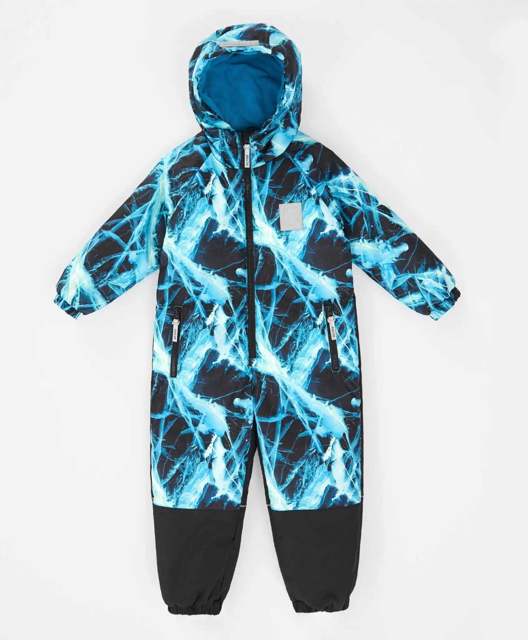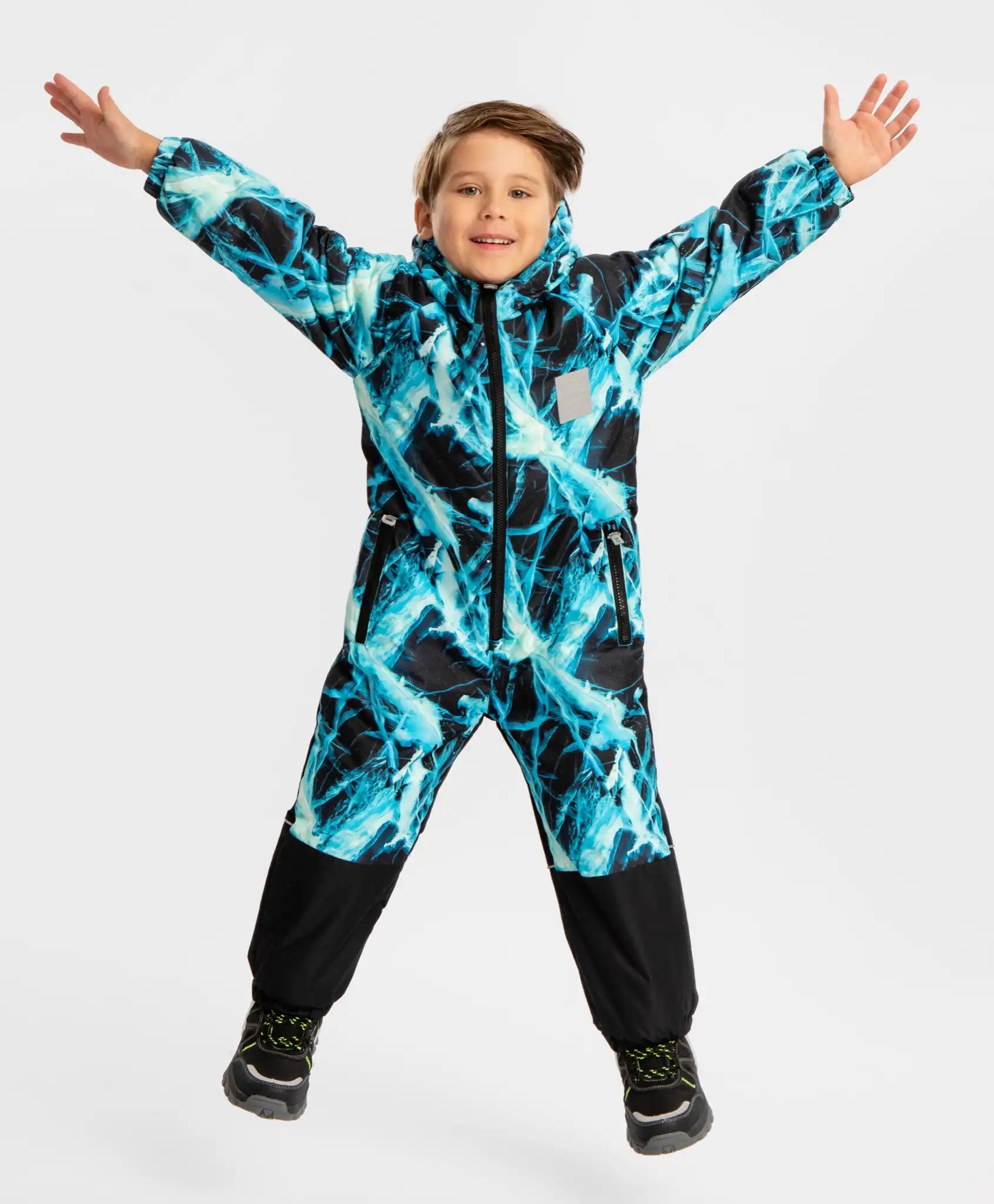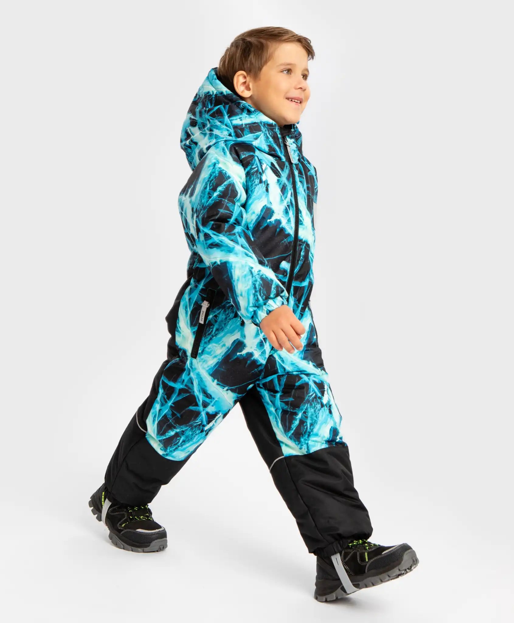 Salopeta de tranziție cu glugă și bretele integrate pentru băiat de la Button Blue este realizată cu un imprimeu pe fundal negru. Căptușeala este din fleece moale, delicat și călduros. Partea superioară a modelului din linia Active este confecționată dintr-o membrană dublă cu proprietăți hidrofuge. Această salopetă protejează împotriva ploii, vântului și zăpezii. Materialul poate rezista la o coloană de apă de până la 5000 mm și poate evacua până la 5000 g de apă pe zi de pe un corp fierbinte. Salopeta este destinată temperaturilor de până la -10 grade, dar, combinată cu lenjerie termică, este confortabilă și la temperaturi mai scăzute. Izolația este din sintepon Silk Touch cu o greutate de 100 g/m². Modelul are o glugă adâncă fixă cu căptușeală din fleece și șnururi elastice pentru ajustare. Se închide cu fermoar cu protecție pentru bărbie și clapetă interioară. Mânecile raglan au manșete elastice pentru a menține căldura, iar pantalonii sunt prevăzuți cu benzi elastice. De asemenea, dispune de curele din silicon pentru fixarea pe încălțăminte.