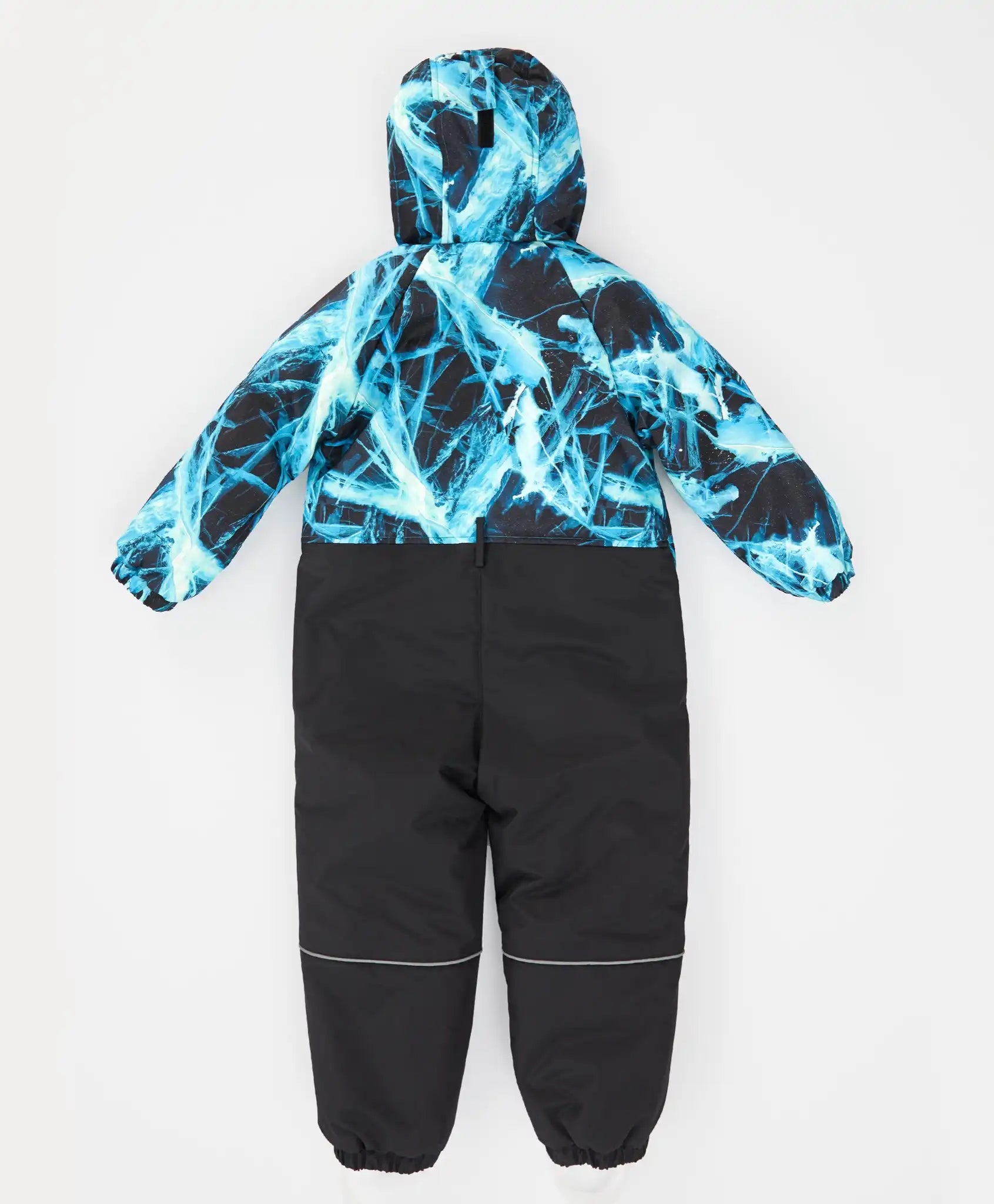 Salopetă impermeabilă de sezon intermediar cu glugă, bretele cusute și imprimeu multicolor, pentru băiat, Button Blue