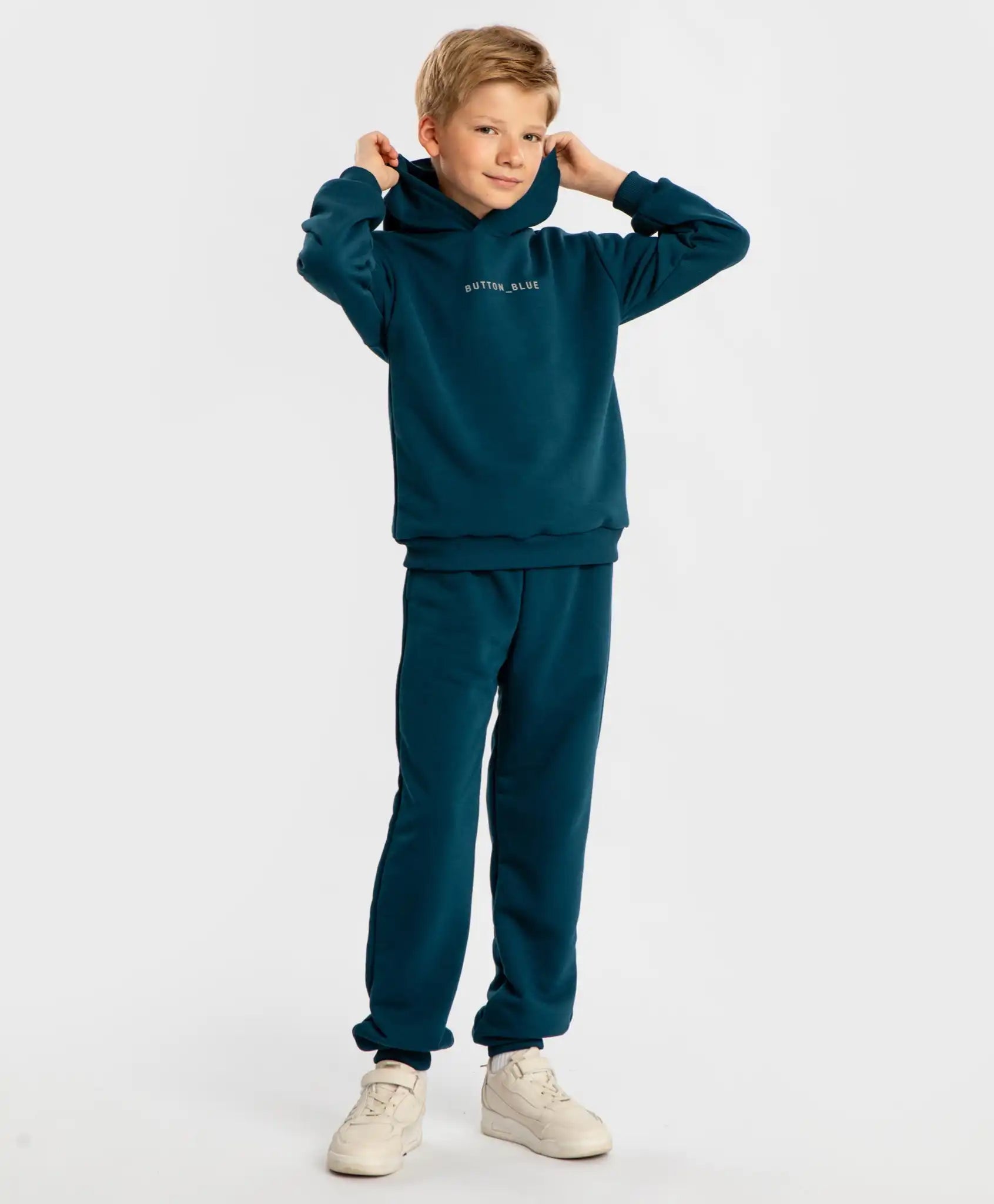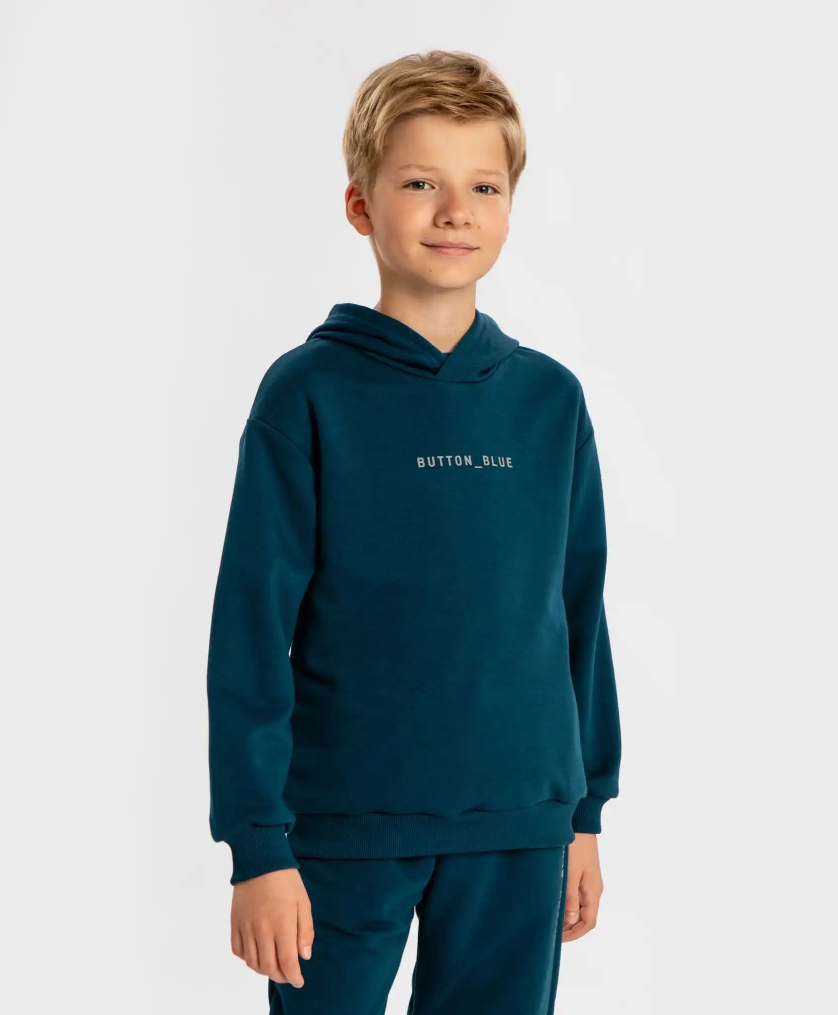 Hanorac pentru copii cu glugă și imprimeu în nuanță bleumarin închis. Model de bază de la Button Blue, fabricat din material dens, dar neted și plăcut la atingere. Gluga protejează capul de vânt. Acest hanorac va deveni rapid preferatul celor mici. Manșetele și tivul sunt finisate cu material ripsat. Croiala lejeră, fără strângere, și linia umerilor căzuți oferă confort pentru copii cu orice tip de siluetă. Hanoracul voluminos este potrivit pentru plimbări, vizite sau purtare în aer liber. Hanoracul poate fi purtat singur sau în combinații stratificate. Imprimeul de pe piept completează modelul. Un alt avantaj al acestui hanorac este că este potrivit atât pentru băieți, cât și pentru fete. Urmați recomandările de îngrijire indicate pe eticheta internă.