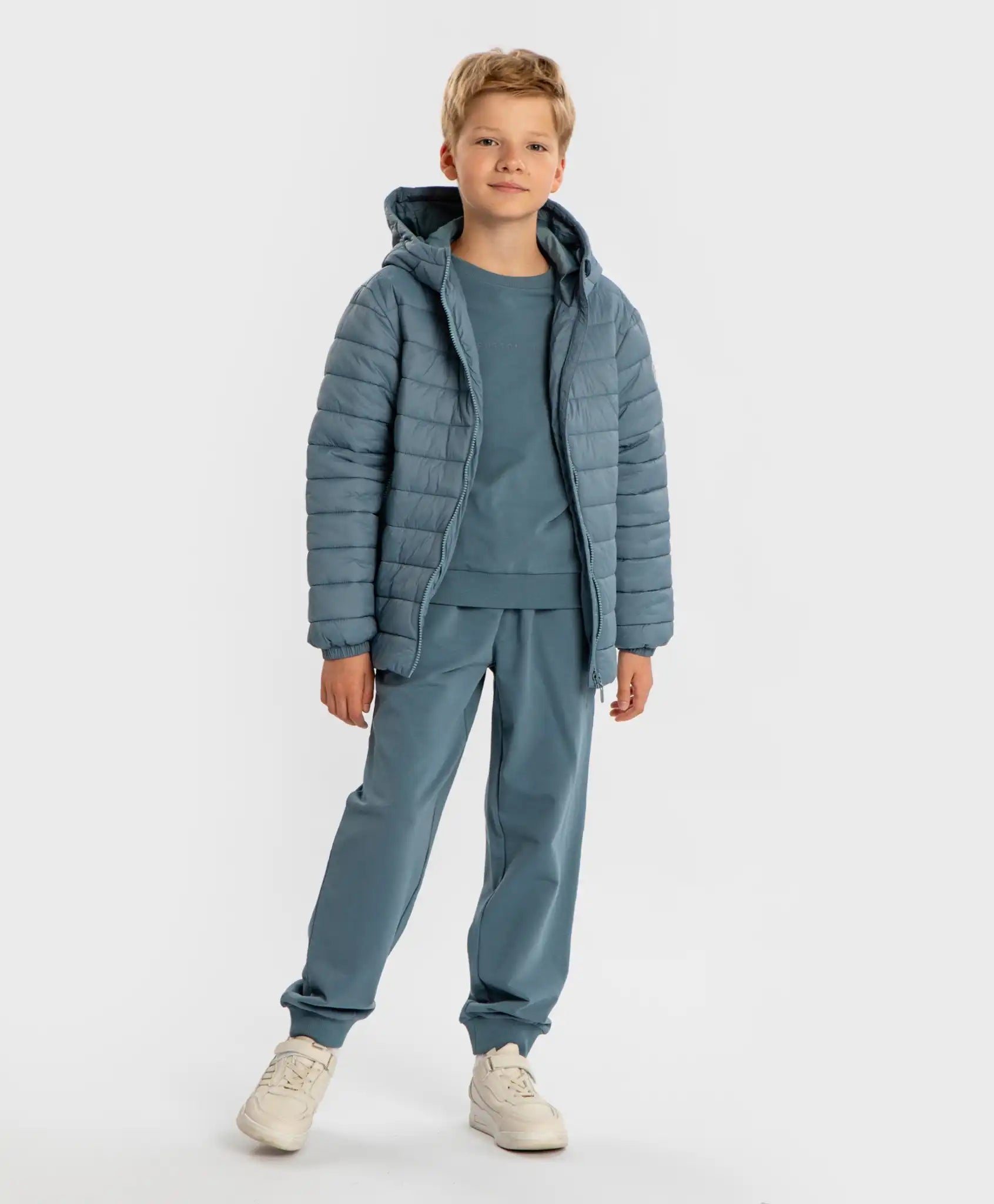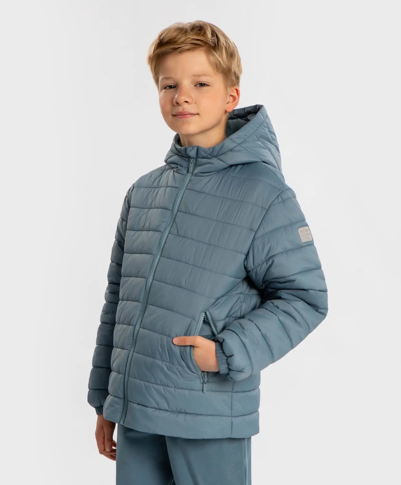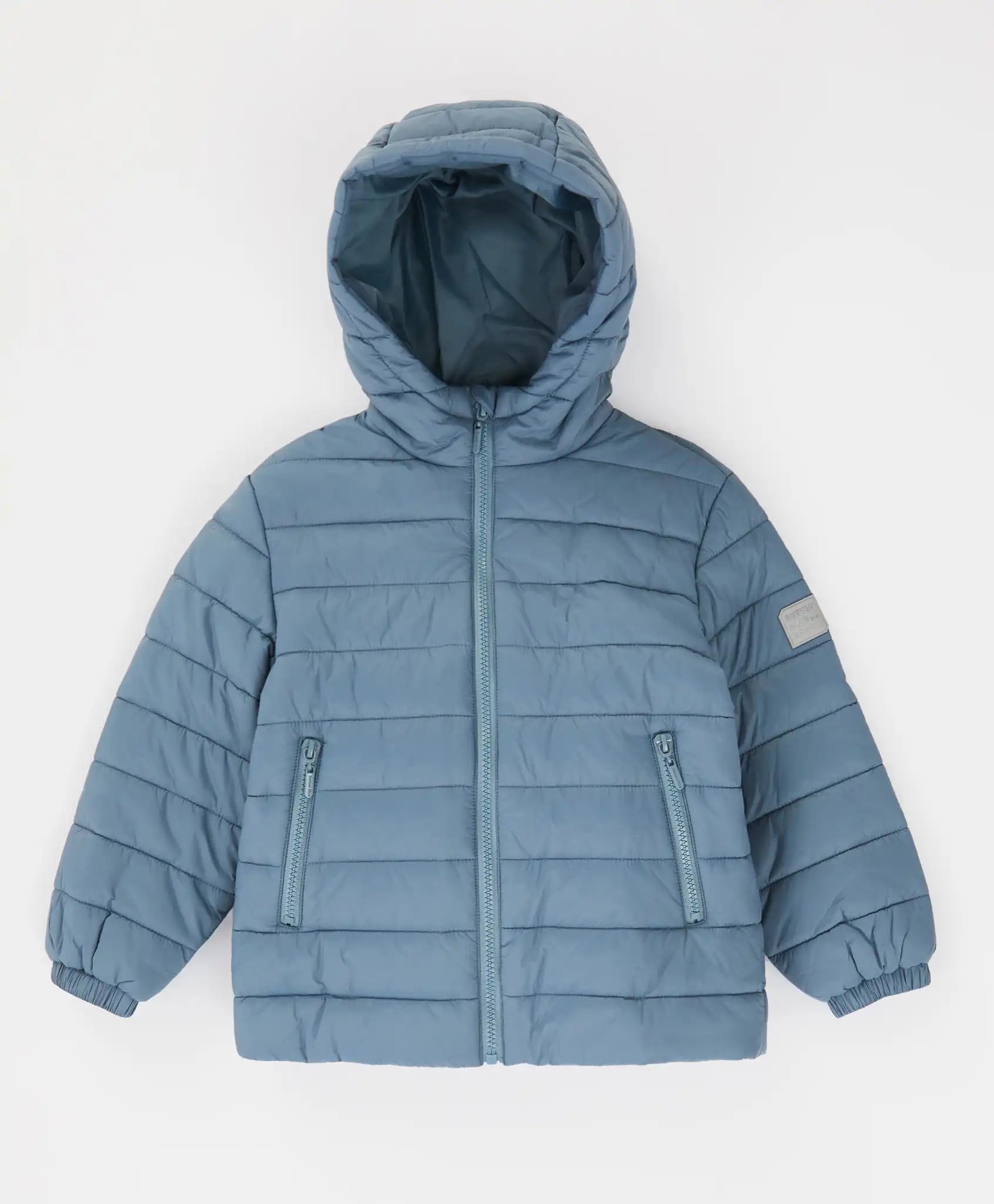 Geacă de sezon intermediar cu glugă, matlasată, albastră, pentru copii, Button Blue