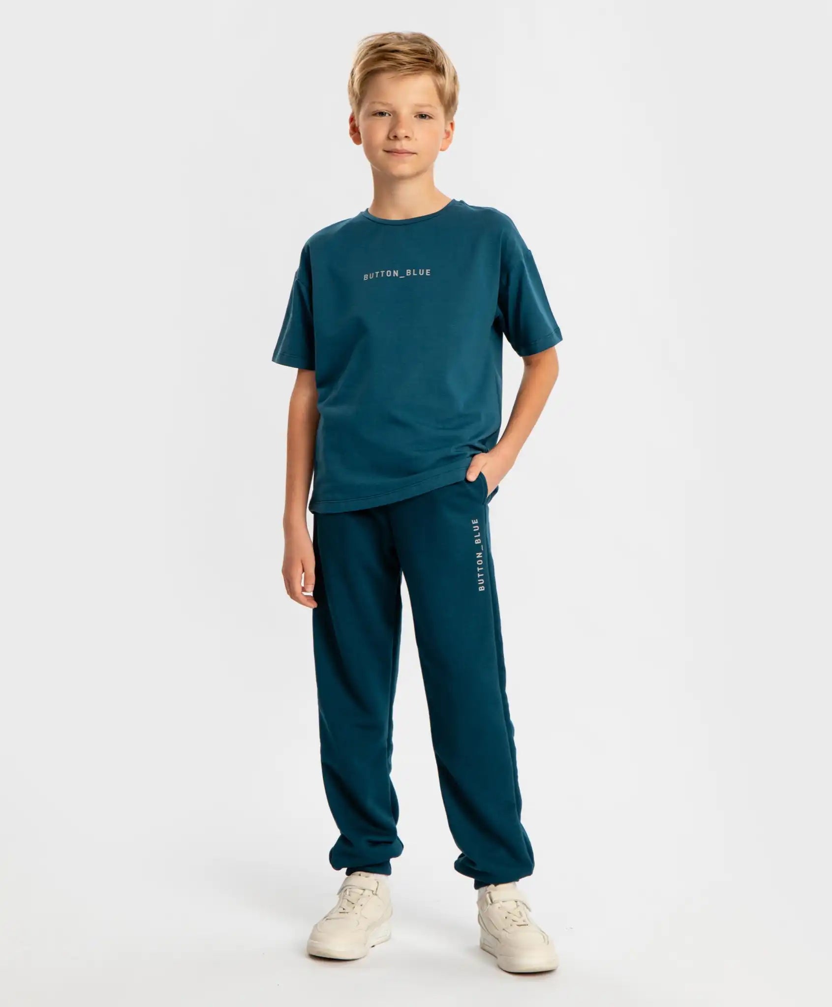 Joggeri cu talie elastică, albaștri, pentru copii, Button Blue