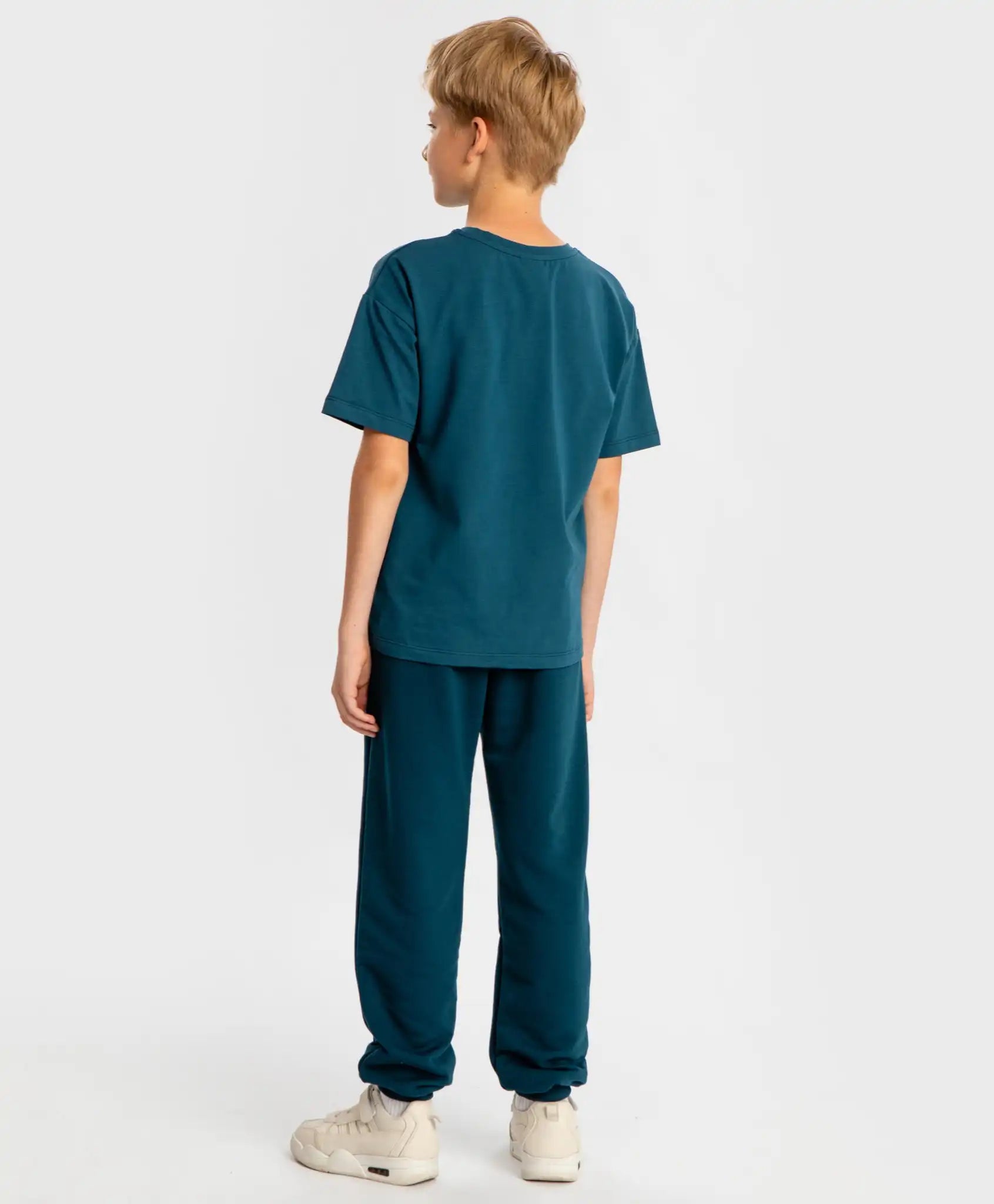 Joggeri pentru copii, cu talie elastică și imprimeu, în albastru închis. Modelul de la Button Blue este realizat din French Terry buclat. Materialul este dens, neted și plăcut la atingere, ușor de întreținut. Potriviți pentru băieți și fete cu diverse conformații. Betelia elastică cu șnur oferă o potrivire perfectă. Modelul este lejer, confortabil și nu limitează mișcarea. Manșetele și talia sunt realizate din rib elastic, care se mulează perfect fără a strânge, permițând ajustarea lungimii. Cele două buzunare laterale sunt practice pentru depozitarea obiectelor mici. Acești pantaloni pot fi integrați cu ușurință în garderoba zilnică sau sportivă. Modelul este monocrom, ceea ce facilitează combinarea cu alte articole vestimentare. Elementul decorativ constă într-un imprimeu discret din cauciuc cu elemente tipografice. Un alt avantaj al modelului este versatilitatea sa, fiind potrivit atât pentru băieți, cât și pentru fete. Urmați instrucțiunile de întreținere indicate pe etichetă.