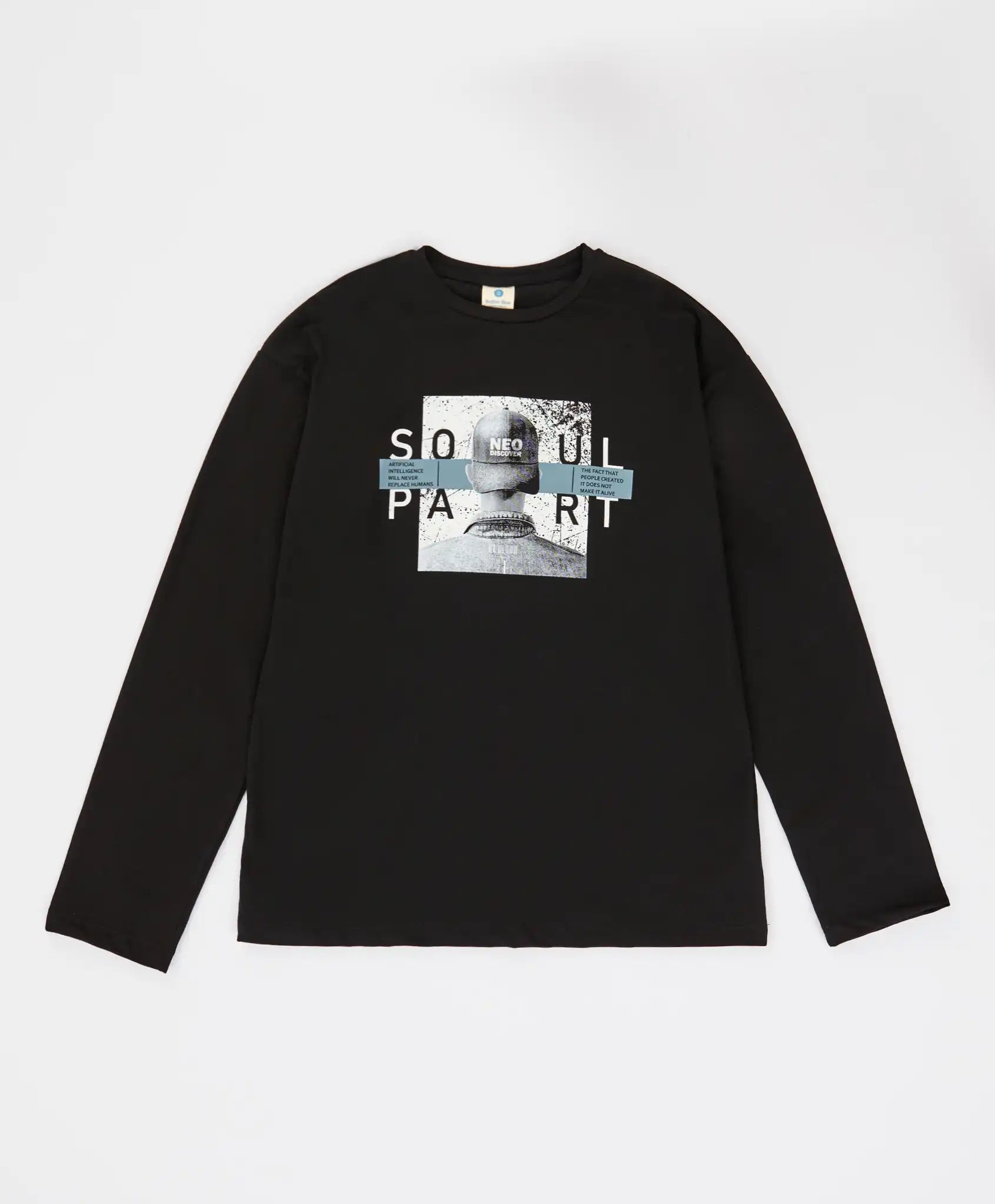 Longsleeve cu imprimeu, negru, pentru băiat, Button Blue