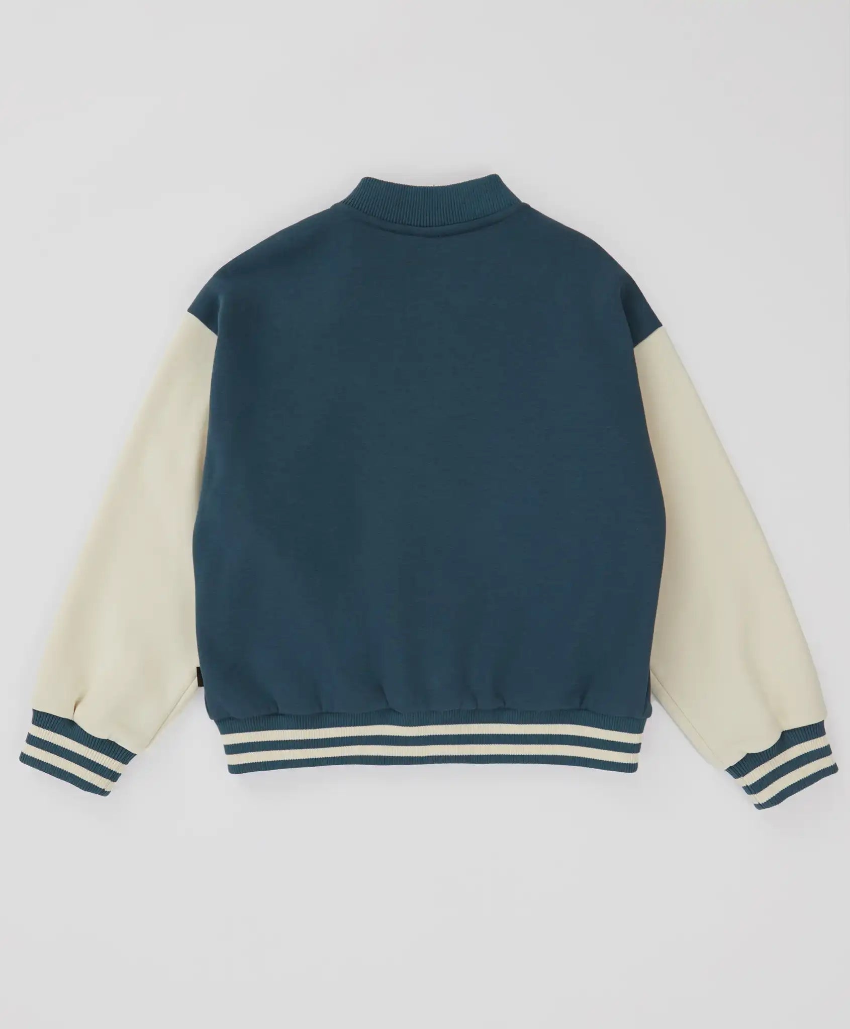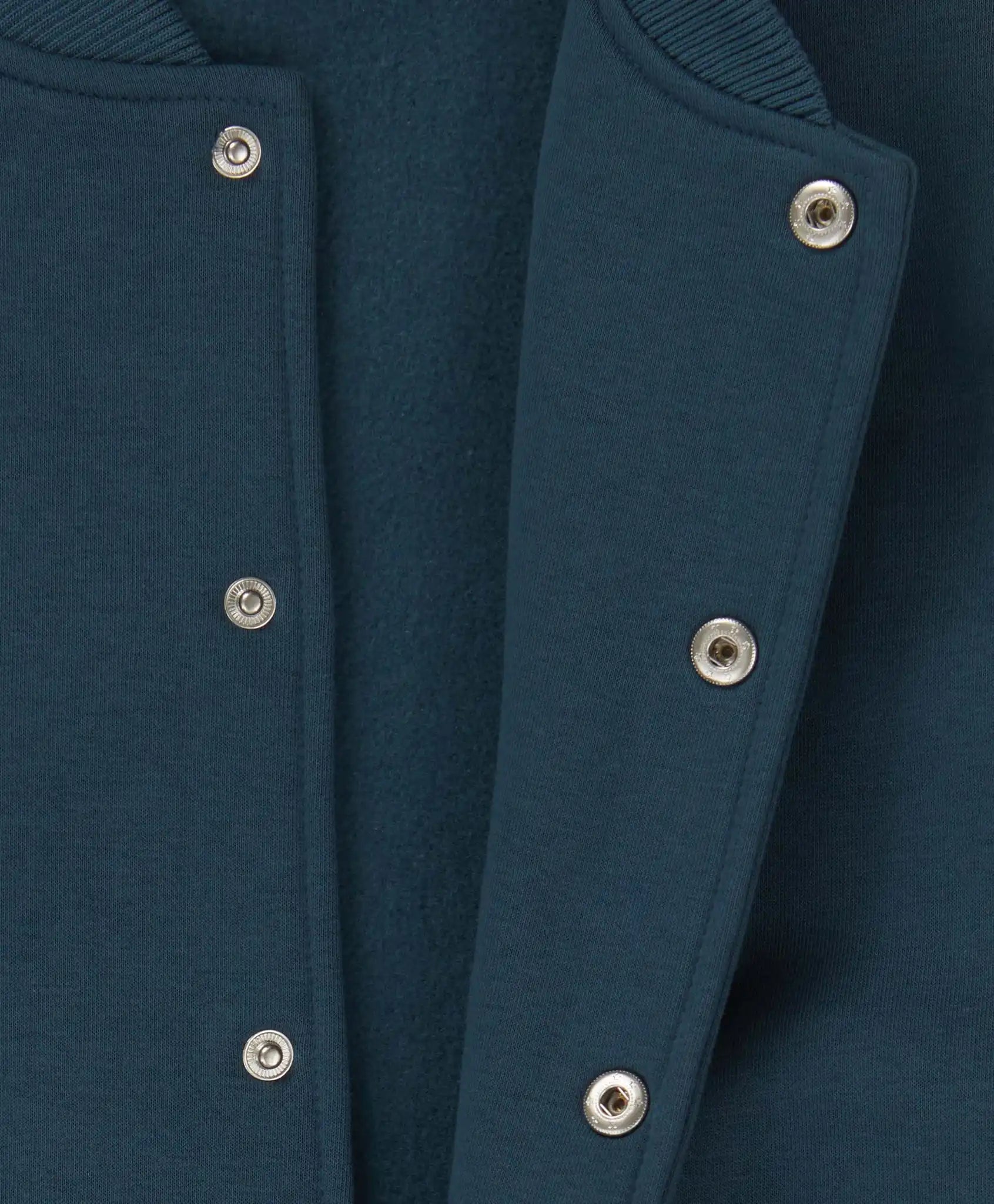 Jachetă bomber căptușită cu nasturi pentru băieți și fete, într-o combinație de albastru închis și crem. Fabricată din fleece cu interior pufos, este moale, plăcută la atingere, netedă și călduroasă, ușor de întreținut. Bluza căptușită cu nasturi de la Button Blue este potrivită pentru copii cu orice tip de siluetă, având o croială lejeră și umeri lăsați. Se îmbracă și se dezbracă ușor datorită nasturilor. Manșetele, decolteul și tivul sunt realizate din material elastic ripsat. Dispune de două buzunare practice pentru mâini sau obiecte mici. Datorită culorilor calme, se va combina ușor cu alte articole vestimentare. Urmați recomandările de îngrijire indicate pe eticheta internă.