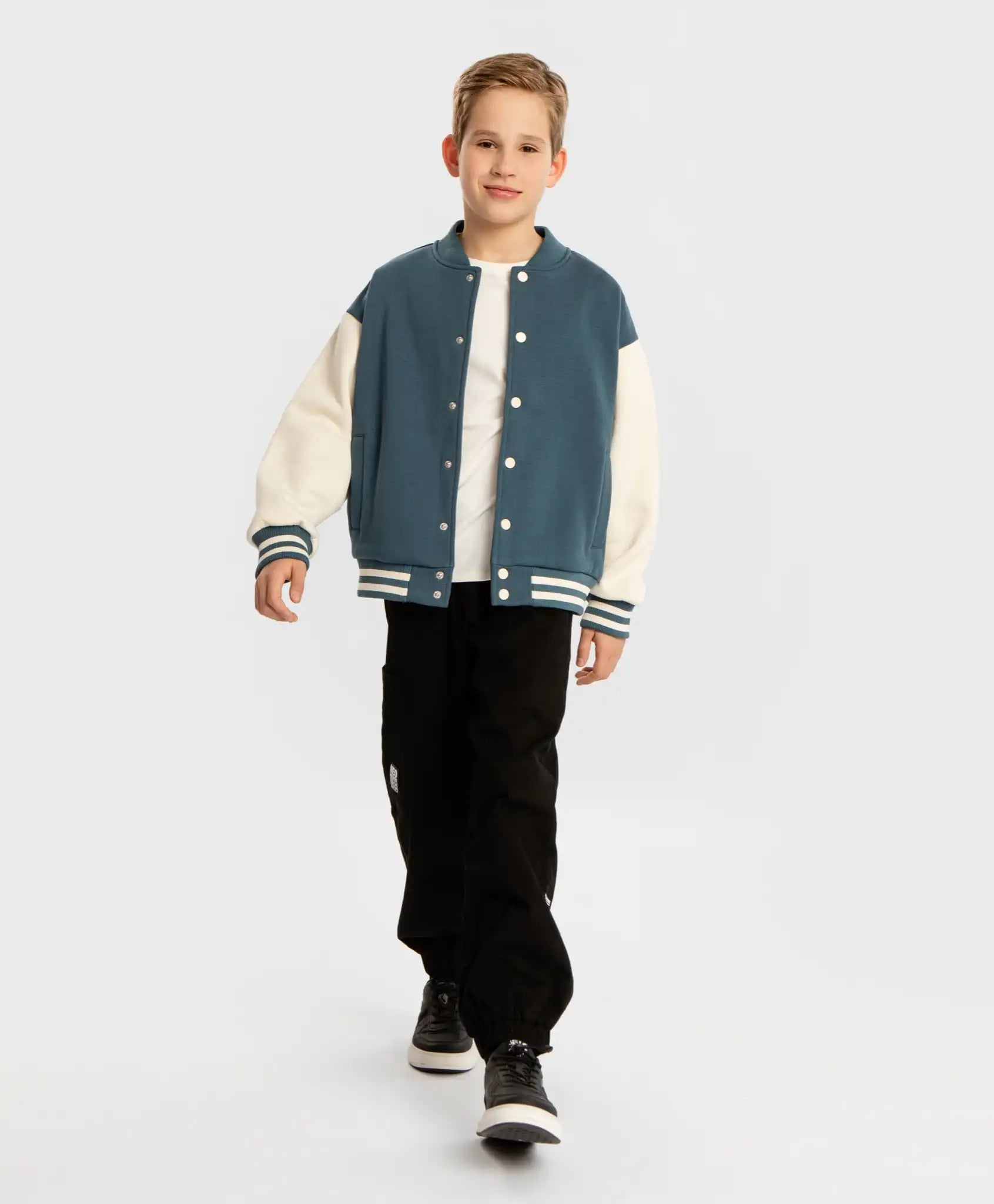 Jachetă bomber căptușită cu nasturi albastru deschis pentru copii Button Blue