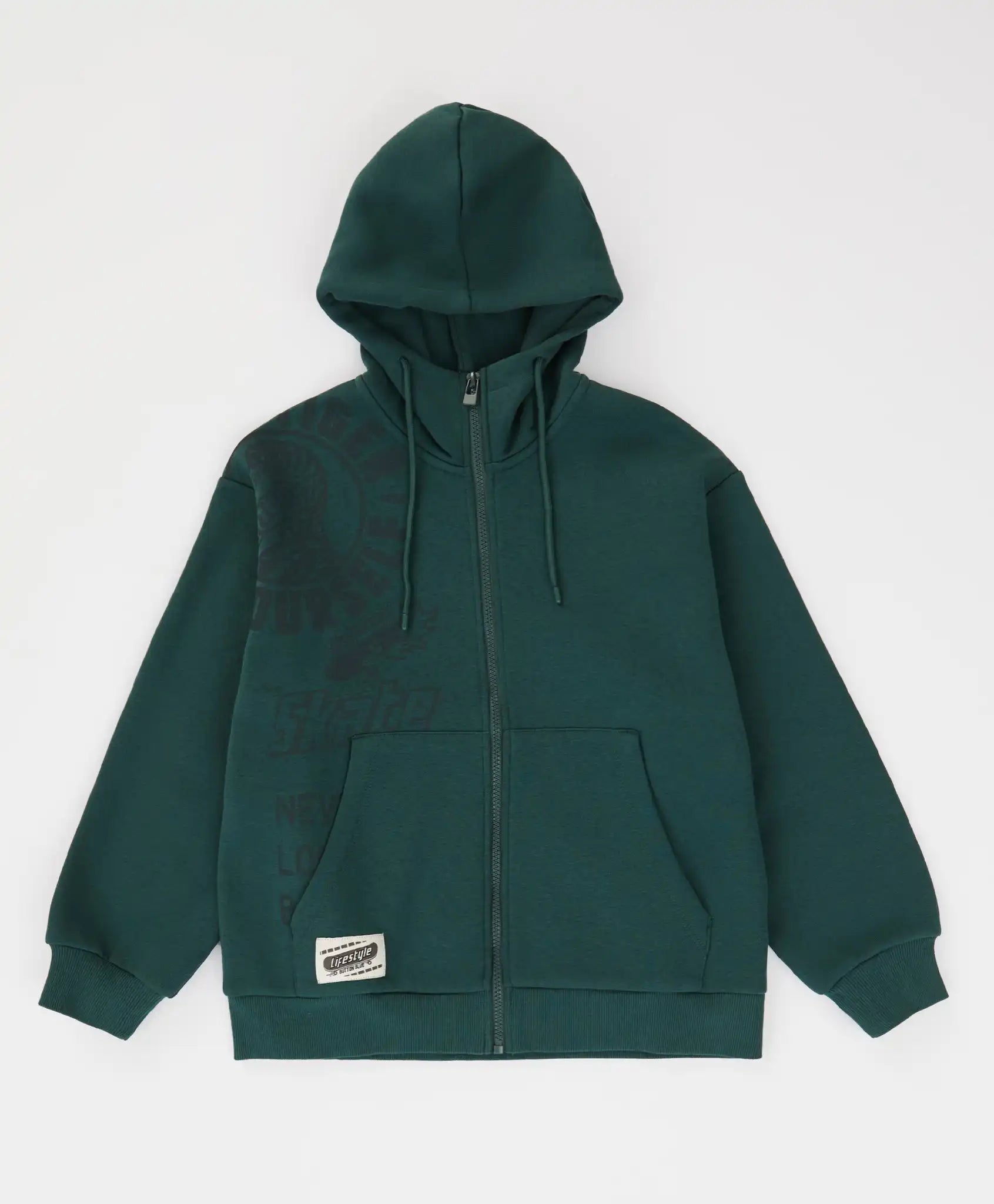 Hoodie căptușit cu fermoar, glugă și imprimeu verde pentru băieți Button Blue