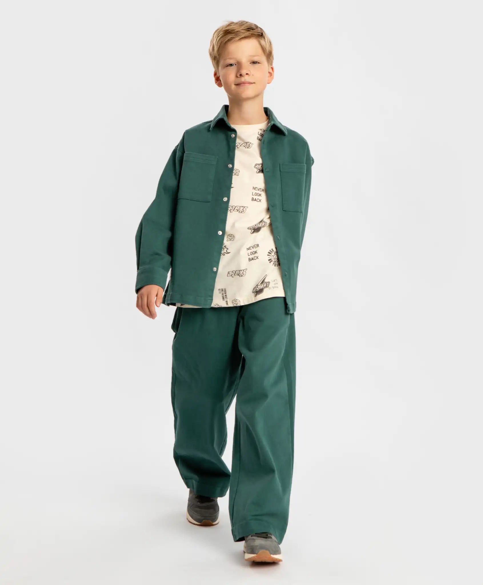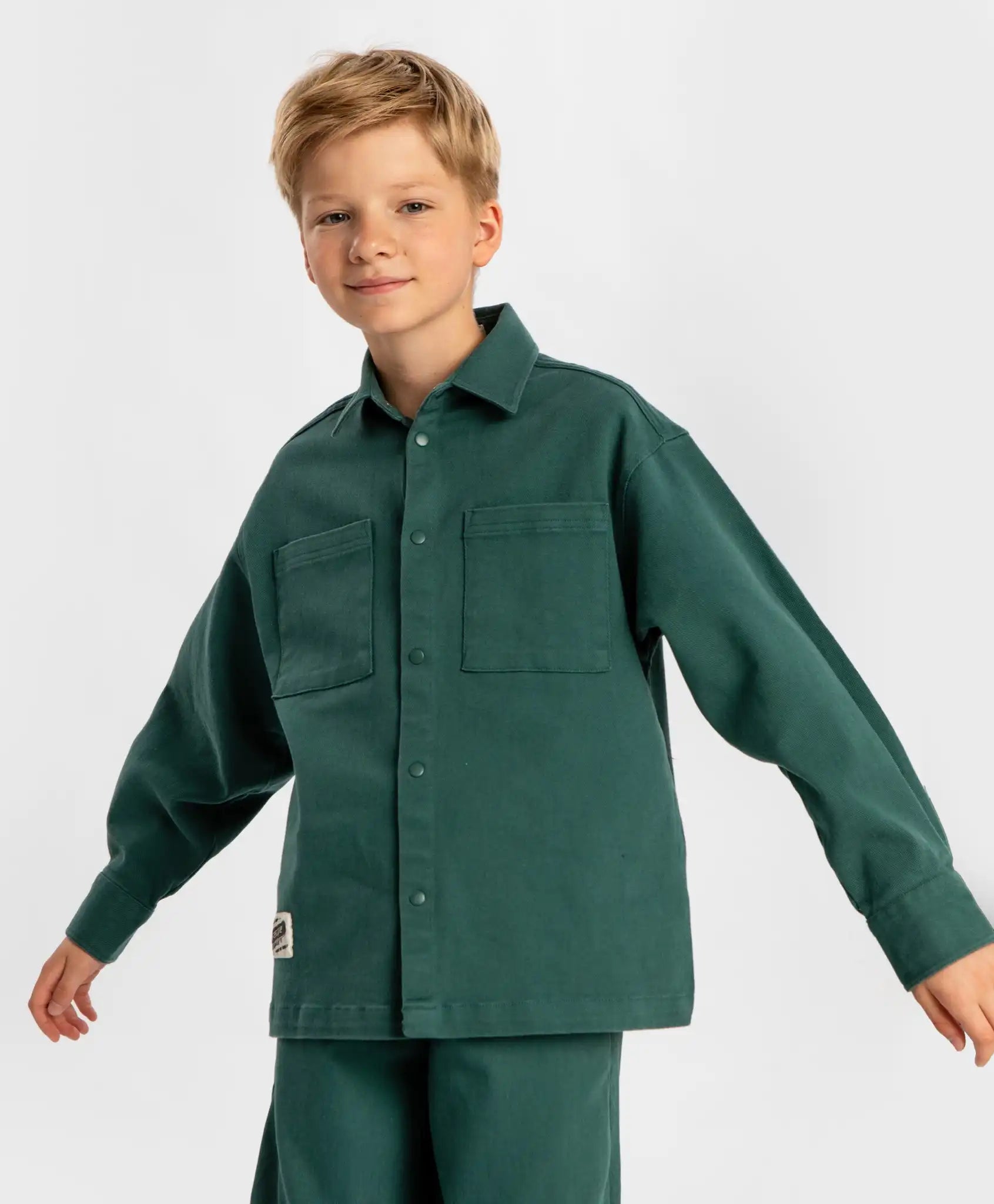 Cămașă cu nasturi pentru băiat și fată, în culoare verde, confecționată din twill cu elastan. Se consideră că acest material oferă o croială ideală și o bună elasticitate. În același timp, este deosebit de rezistent și călduros. Modelul de la Button Blue are un guler întors, care adaugă un plus de eleganță ținutei. Cămașa, precum și manșetele, se închid cu nasturi, ceea ce este foarte convenabil. Umerii lăsați și croiala lejeră asigură confort maxim. Această cămașă se va potrivi excelent copiilor cu orice tip de corp. Mânecile lungi vor oferi căldură pe vreme rece, iar tivul rotunjit permite crearea de ținute atât cu cămașa băgată în pantaloni, cât și purtată lejer. Pentru decorare, există buzunare frontale fără clapetă și un mic patch. Nuanța smarald intens, în tendințe, adaugă un accent modern. Urmați recomandările de îngrijire indicate pe eticheta interioară.