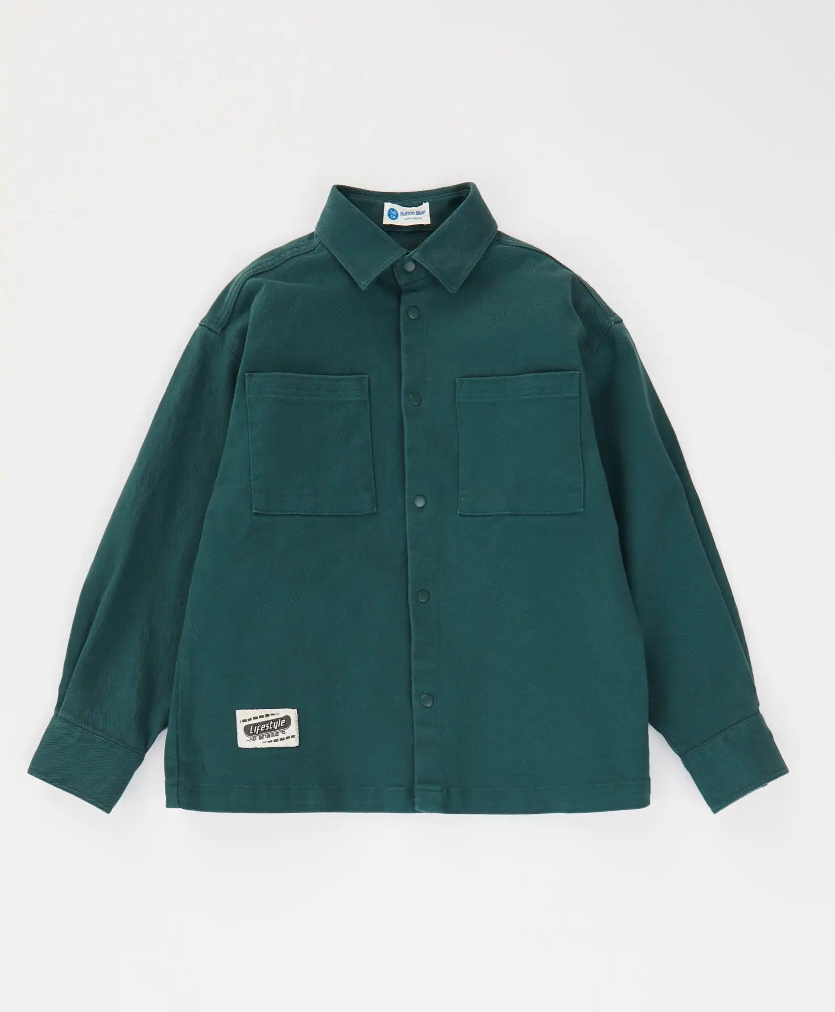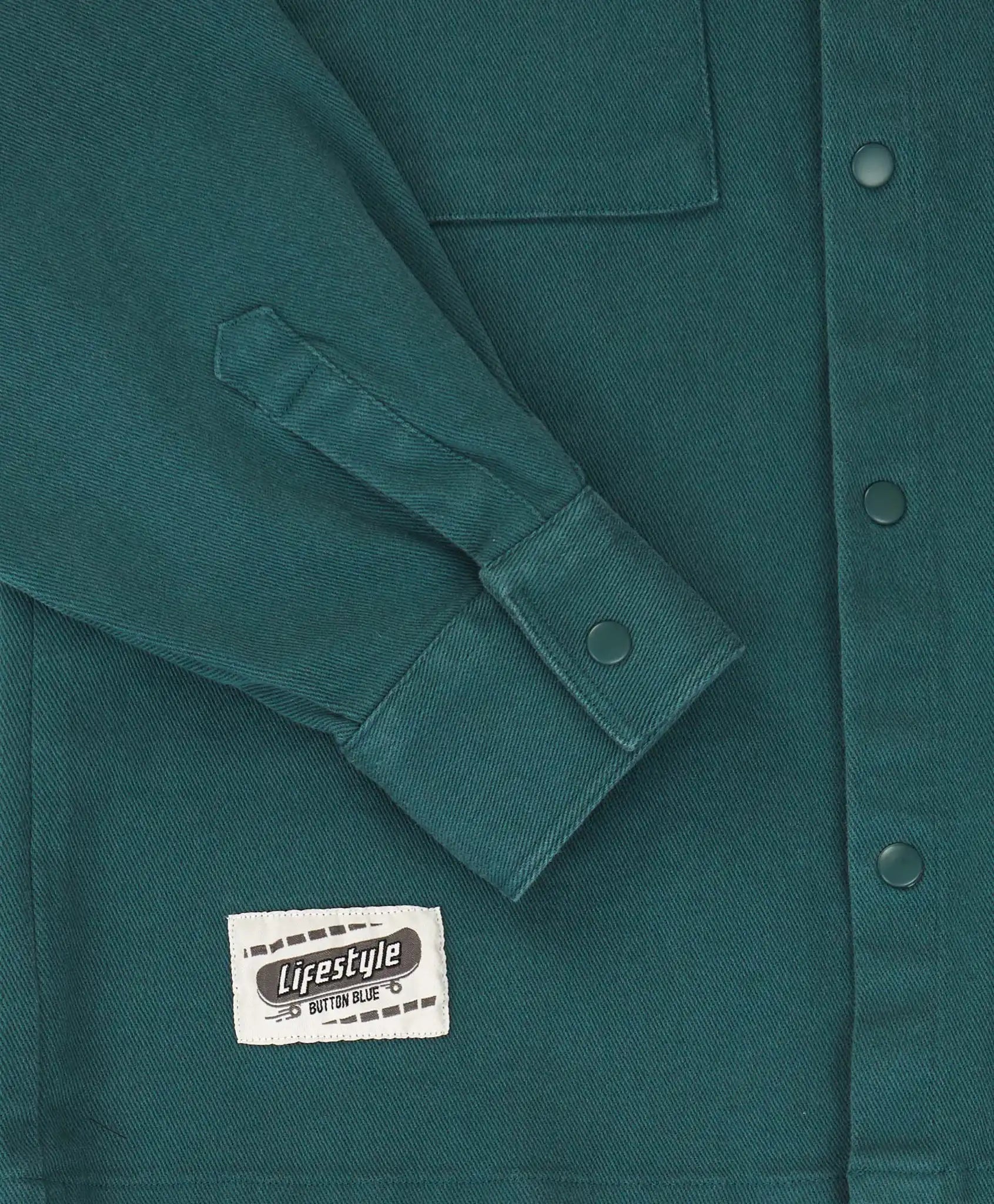 Cămașă cu nasturi, călduroasă, cu mâneci lungi și buzunare verzi pentru copii Button Blue